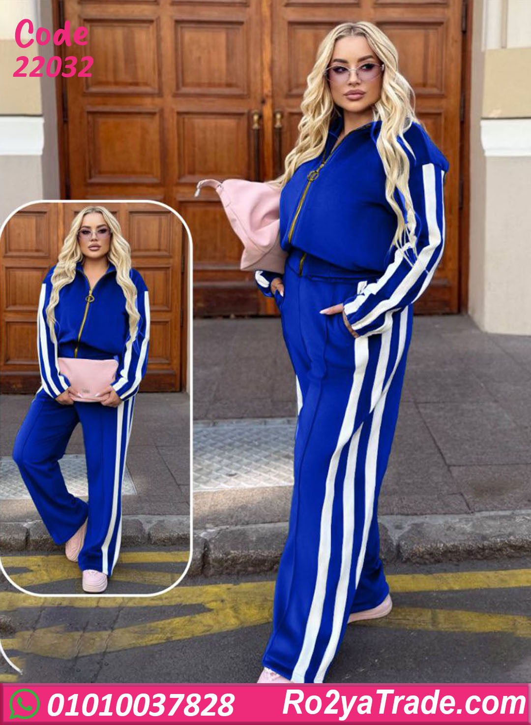 الطقم مكوّن من جاكيت بسوستة وبنطلون بخطوط جانبية بتبرز القوام بشكل جميل. خامته ناعمة ومريحة على الجسم ومناسبة لأجواء الشتاء والخريف،