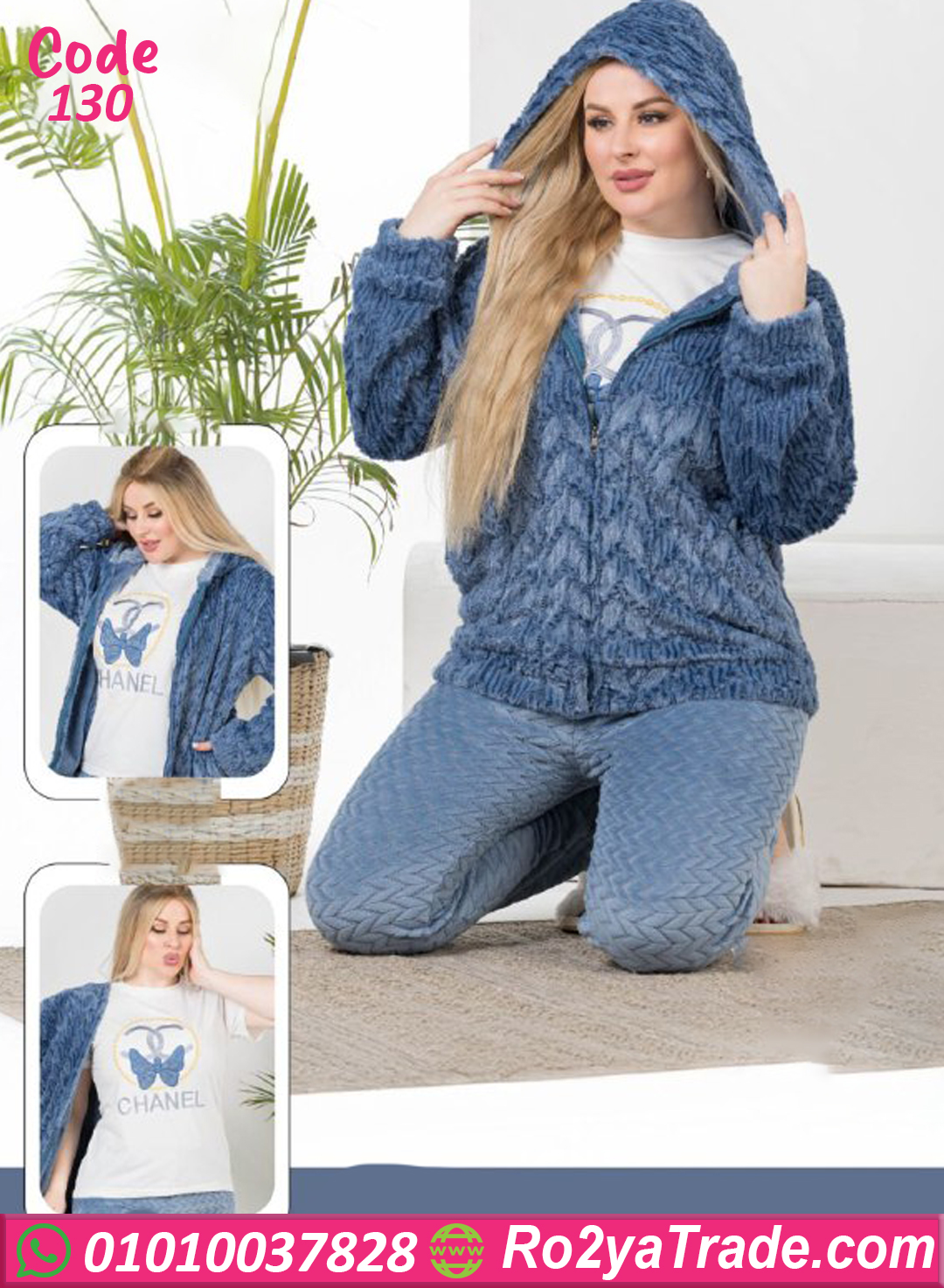 ترنج شتوي فرو ناعم بلمسة دفا وأناقة، خامة مخملية تقيلة، مكون من جاكيت بسوستة وبنطلون مريح،
