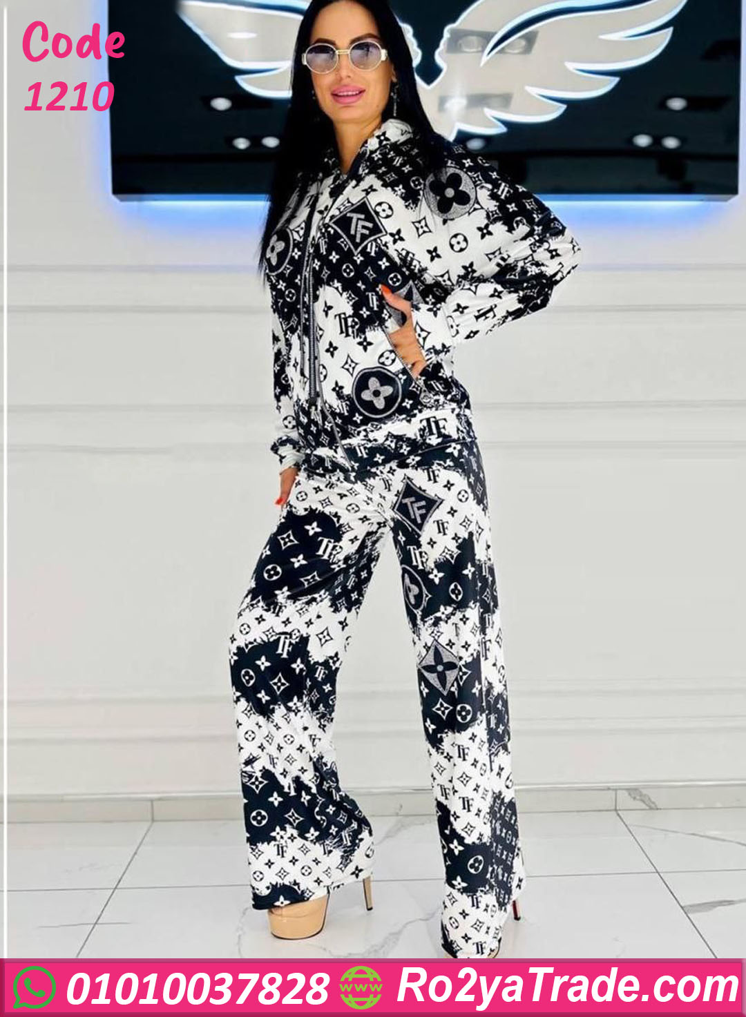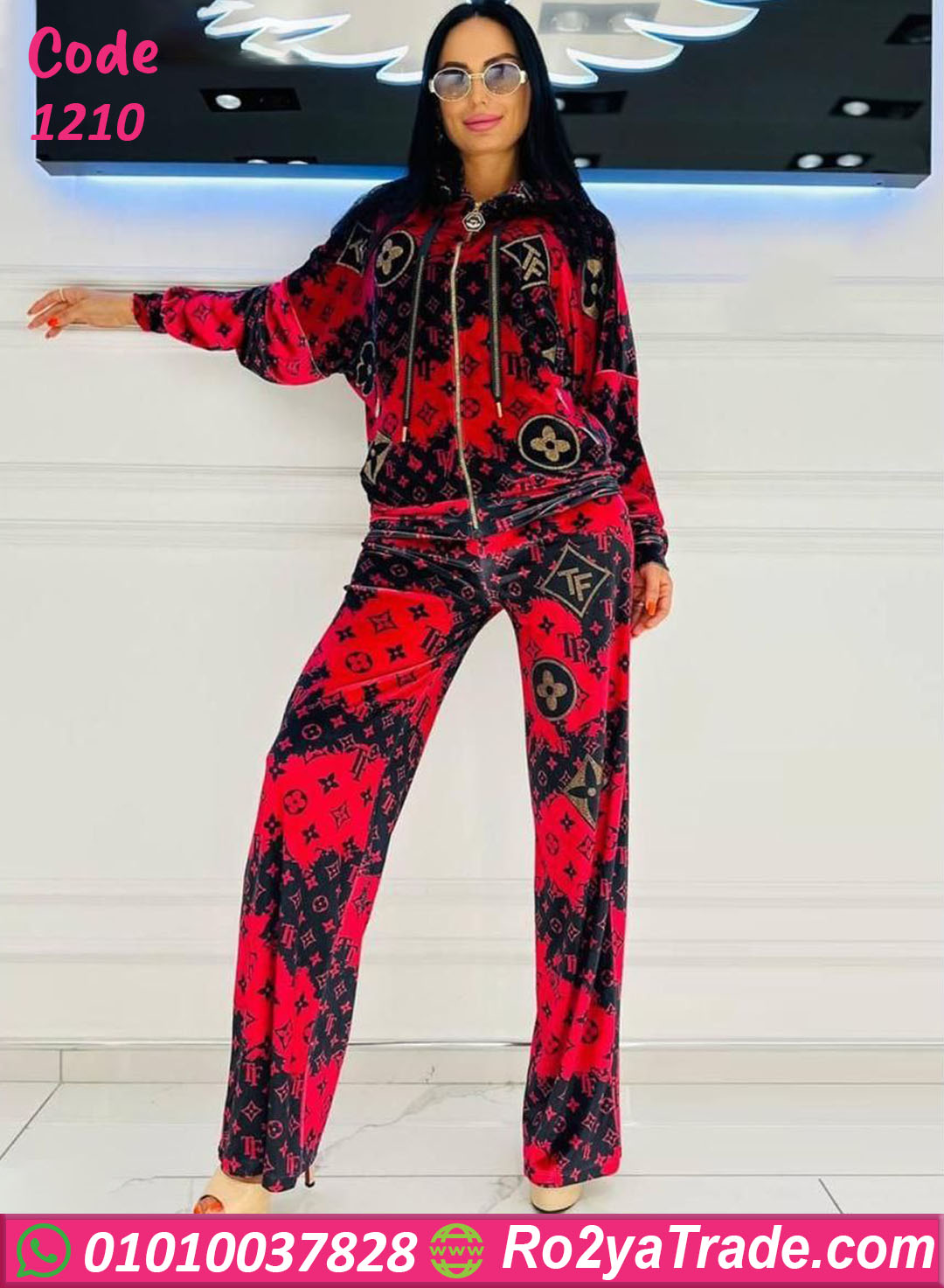 بيجامة شتوي فخمة بخامة قطيفة ناعمة ولامعة بتصميم عصري مطبوع بالنقوش الفاخرة، فيها جاكيت بسوستة وسروال واسع مريح جدًا مناسب للبيت أو الخروجات الكاجوال الشتوية 👌