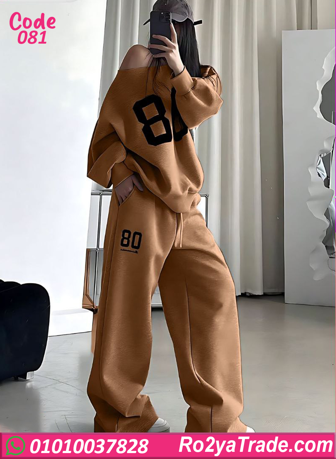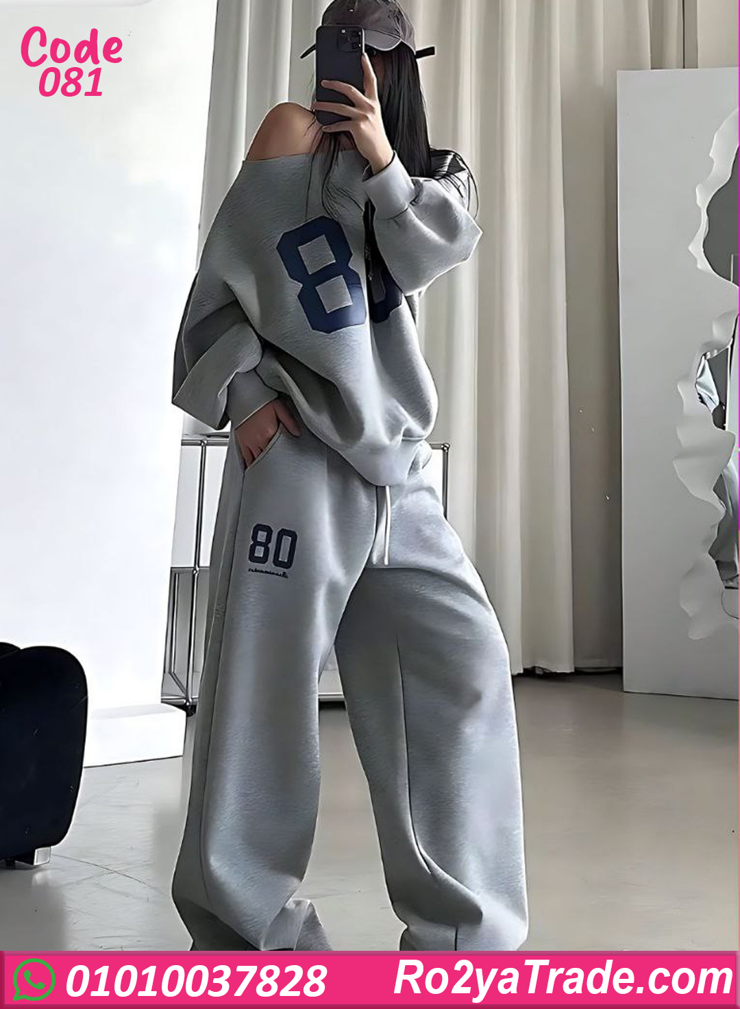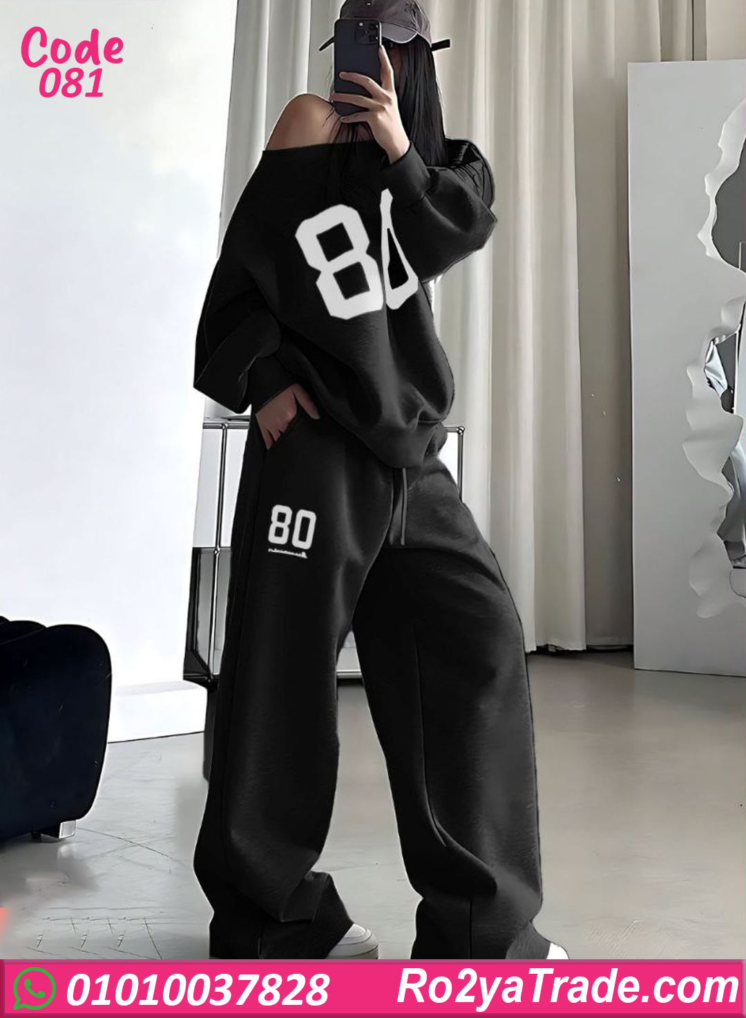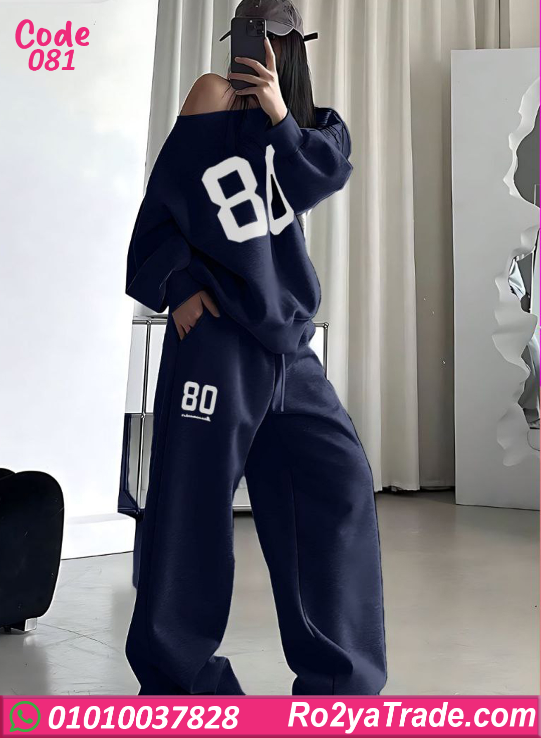 والتصميم الواسع بيسمح بحرية حركة طول اليوم. الموديل مطبوع برقم 80 بشكل أنيق، مناسب للبيت والمشاوير اليومية، وبيجمع بين الراحة والشكل العصري في قطعة واحدة.