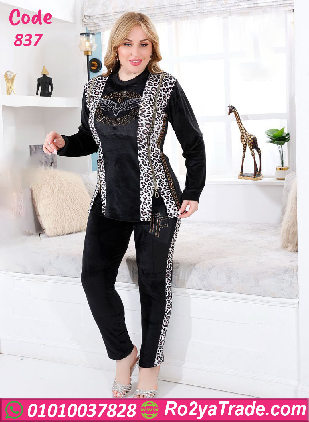 التصميم فيه لمسة ليوبارد ستايل عصري على الجوانب والأكمام، بيضيف جمال وأنوثة لستايلك سواء في البيت أو لو رايحة مشوار خفيف.