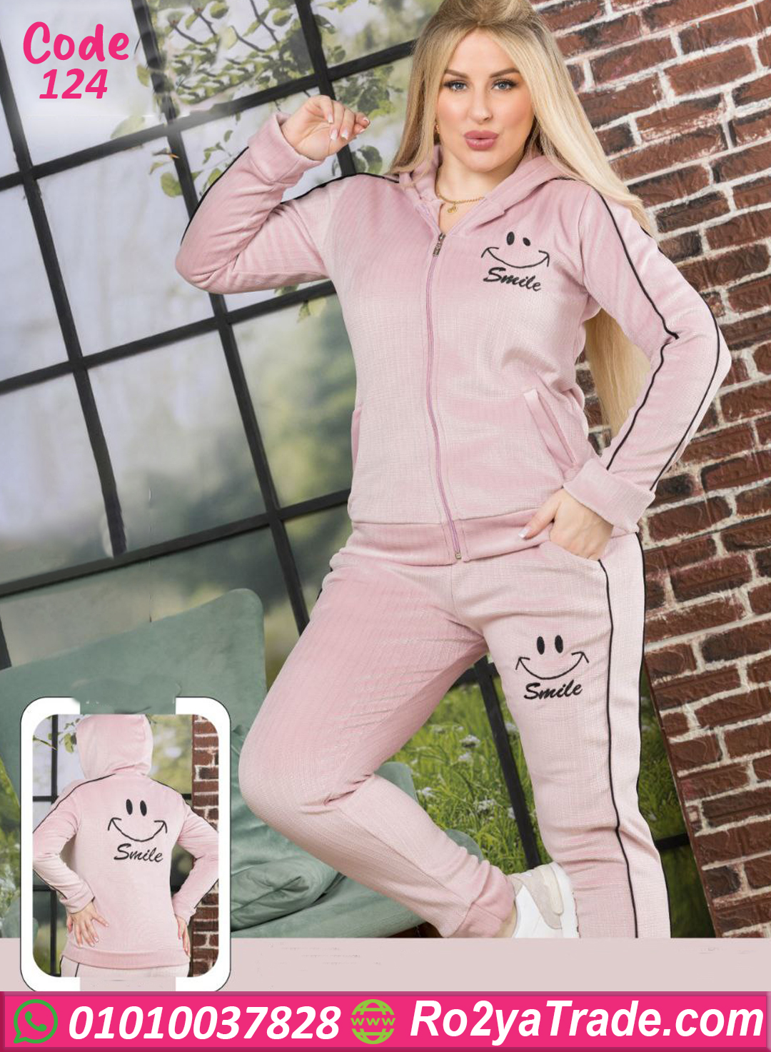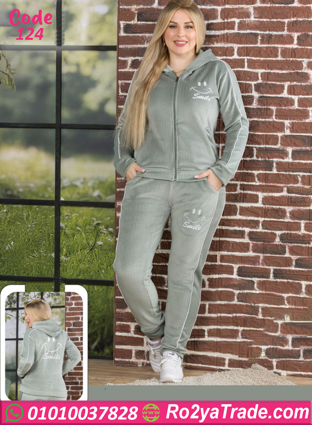 الجاكيت بسوستة كاملة وسهل اللبس، والبنطلون بنفس الخامة المريحة مع استيك في الوسط علشان يناسب الجسم.