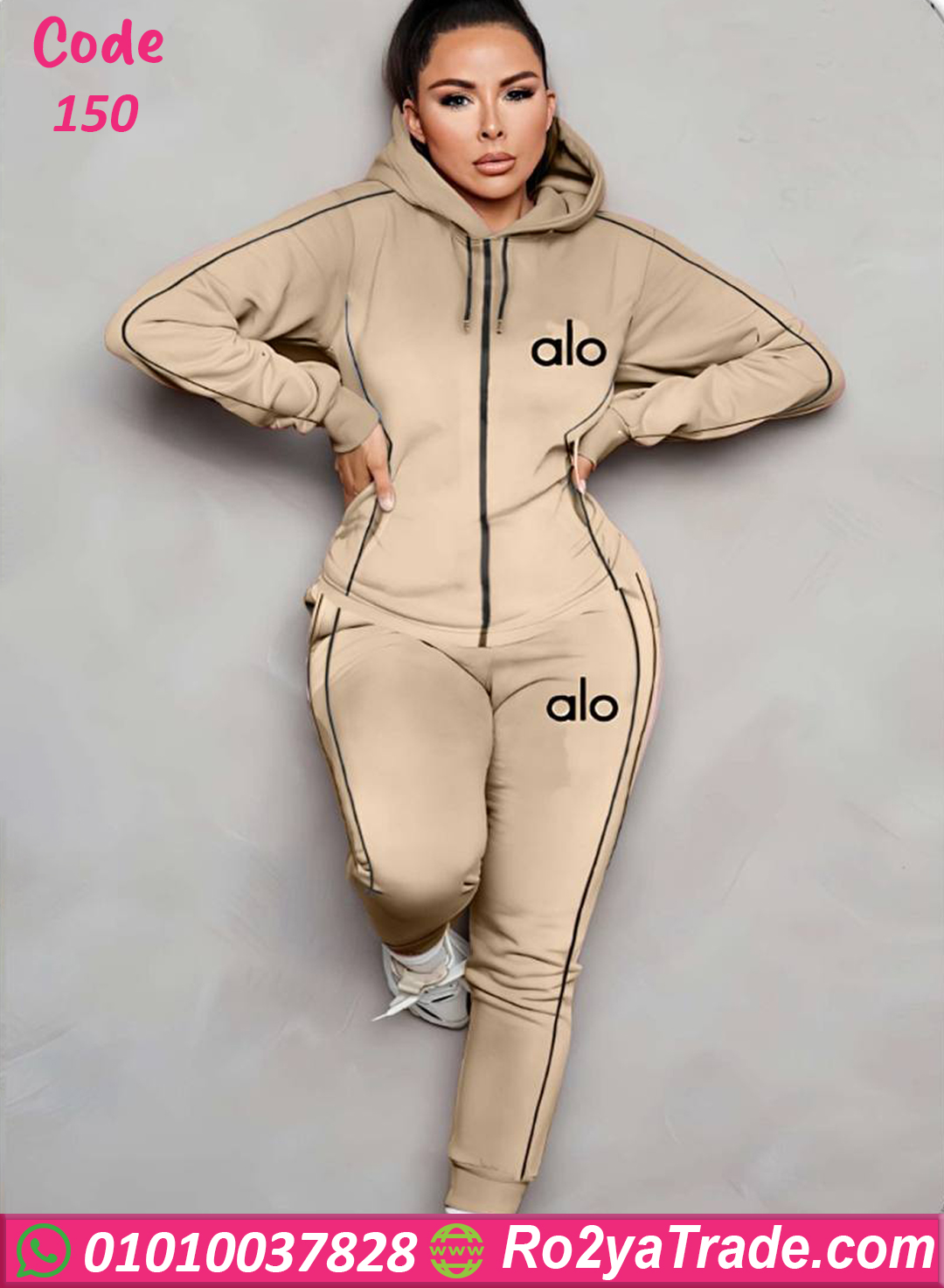 دلّعي نفسك بترينج ALO الشتوي اللي هيكمّل ستايلك بخامة تقيلة وملمس ناعم يديكِ راحة طول اليوم. الموديل جاي بتصميم رياضي عصري يناسب الخروج والتمارين والبيت، مع بنطلون هاي ويست يشد الجسم وبلوزة هودي بكابيشو شيك. الترينج مناسب للشتا وعملي في اللبس والغسيل، ومتاح بألوان جذابة تناسب كل الأذواق.