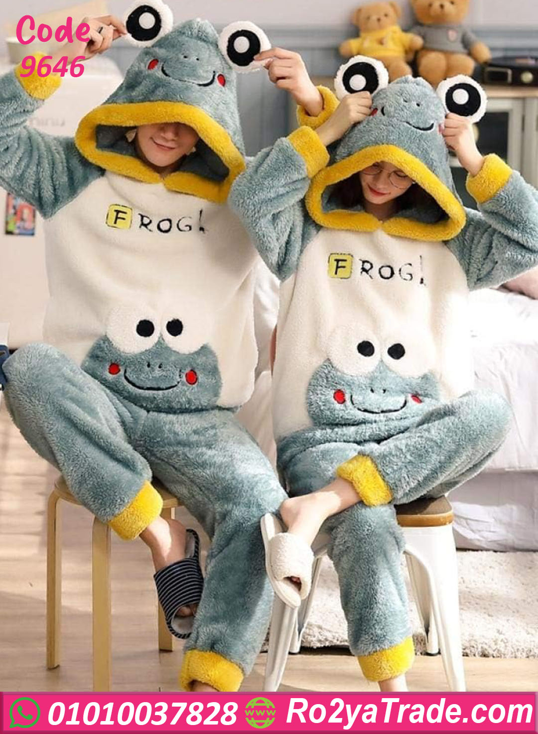 جمبسوت حريمي شتوي بخامة قطيفة هاي كواليتي ناعمة ودافئة، بتصميم ضفدع كيوت بخوذة بعيون بارزة ولمسة مرحة.