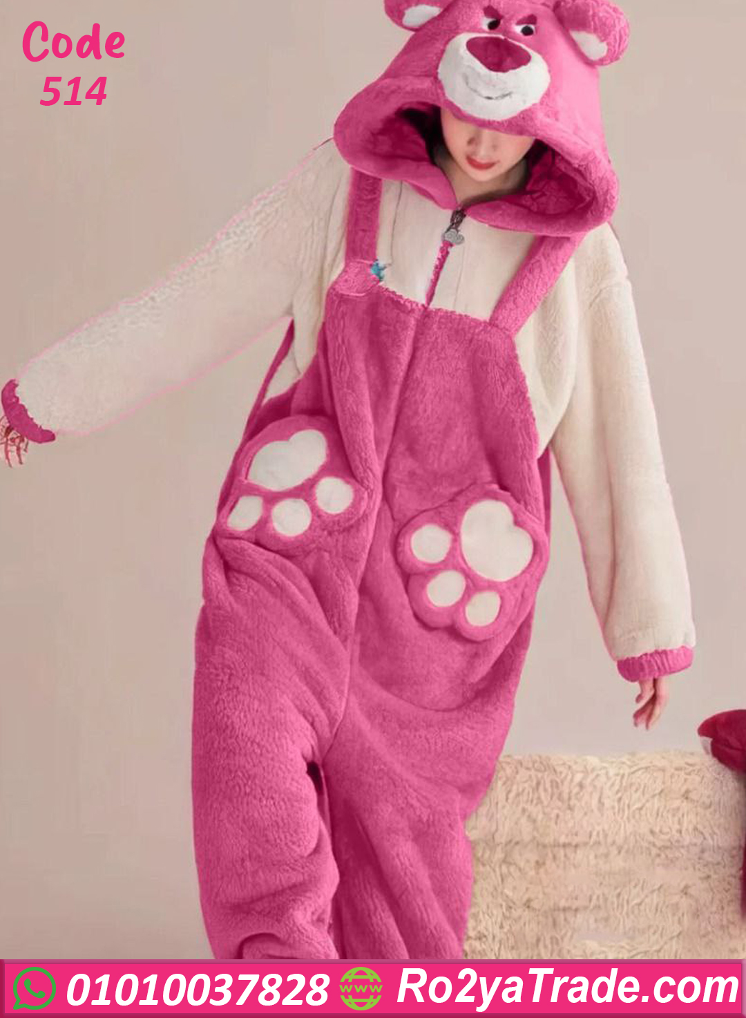 الجمبسوت لونه بينك مشرق مع تفاصيل دبدوب لطيفة جدًا بتديكي مظهر طفولي جذاب ومبهج 💕