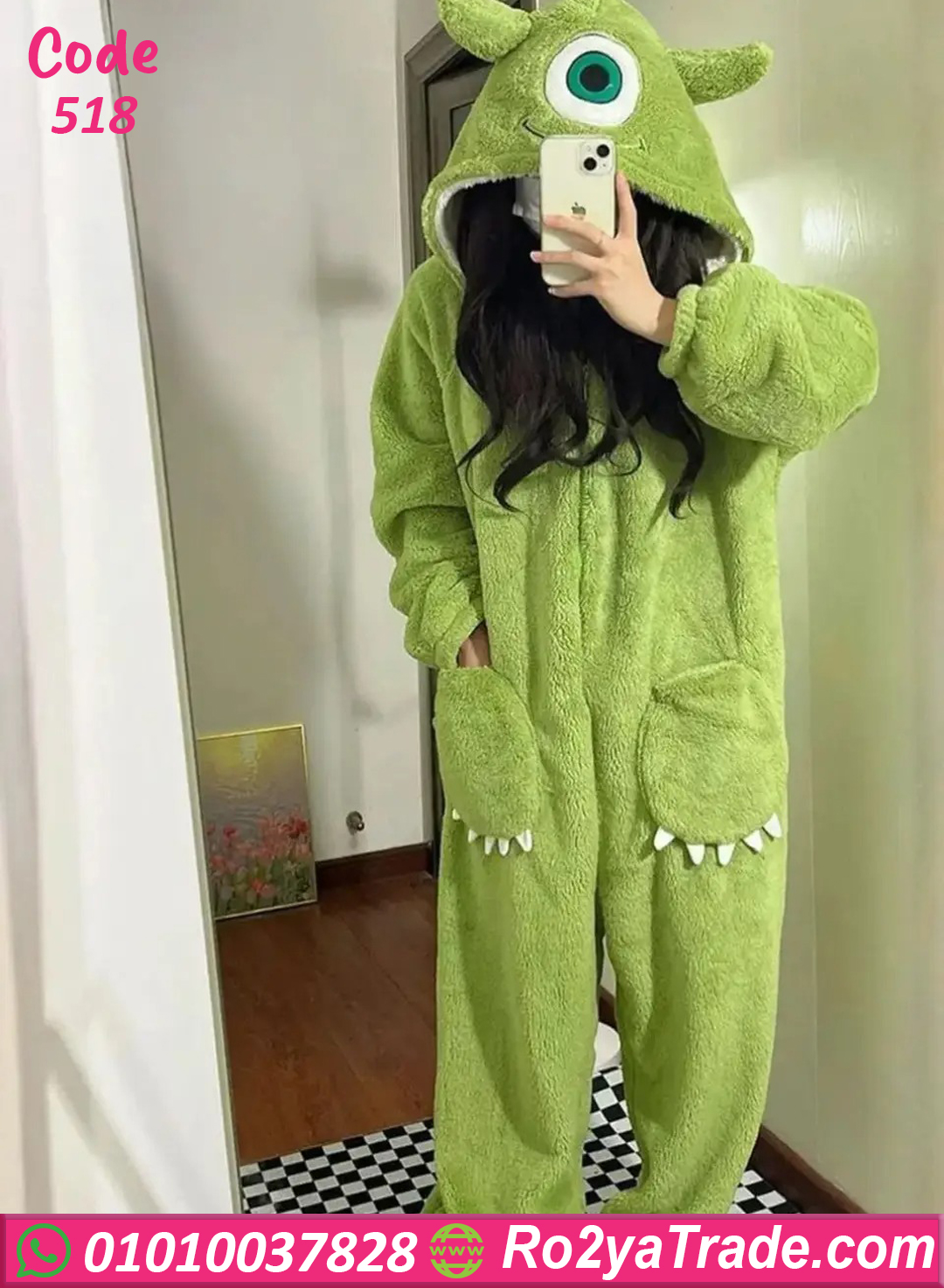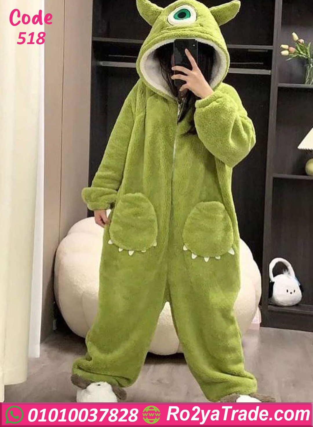 جمبسوت شتوي قطيفة ناعمة جدًا، تصميم كيوت على شكل شخصية كرتونية بلون أخضر مميز 💚، بيدّيك إحساس بالدفا والراحة طول اليوم.