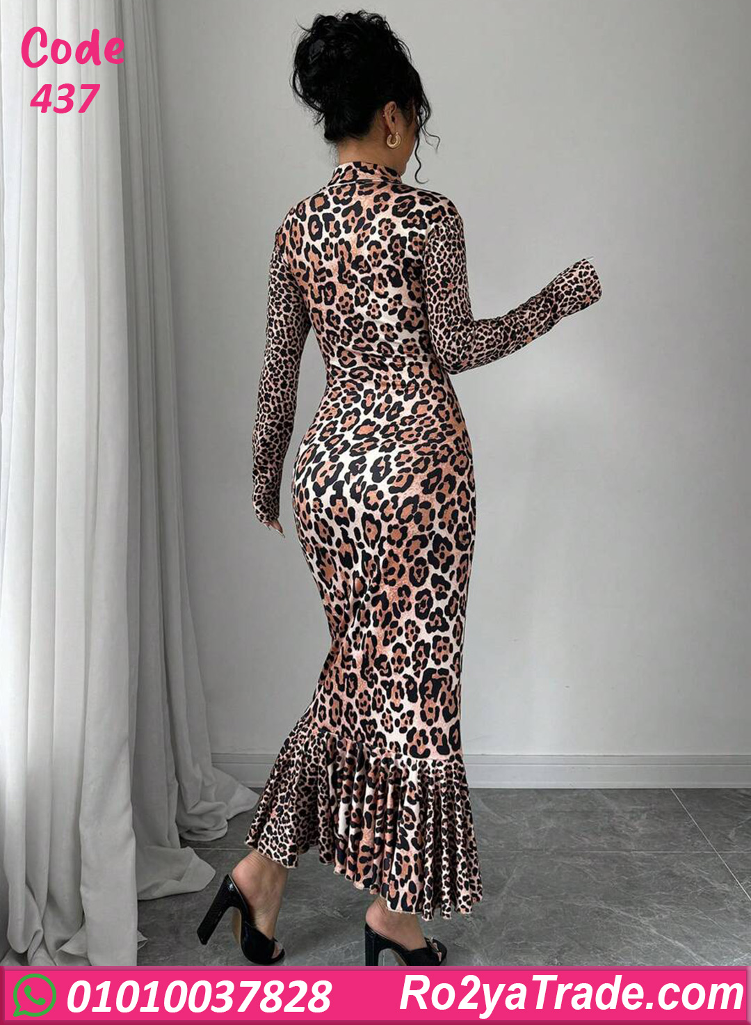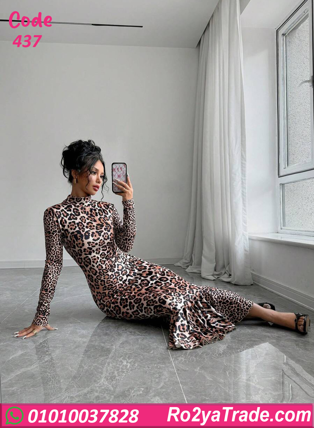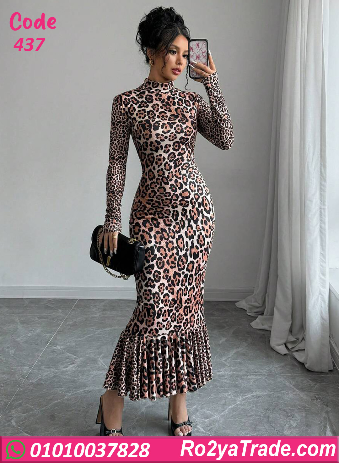 دريس صيفي طويل بنقشة التايجر شيك ومثير، خامته مطاط ناعمة على الجسم بتحدد القوام وتدي شكل أنثوي جذاب. مناسب للخروج والسهرات والمناسبات، تصميمه بقصة ضيقة مع كشكشة من تحت بتدي لمسة فخامة.