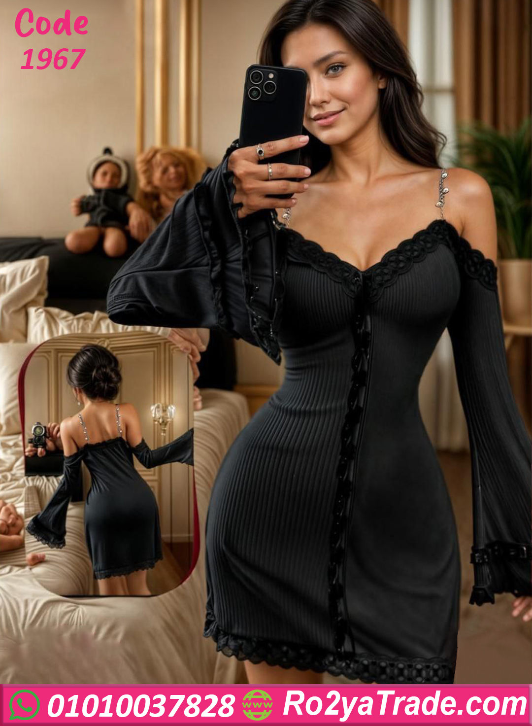 دريس حريمي كود 1967 من ماركة rogina بتصميم أنيق يجمع بين الجاذبية والنعومة في قطعة واحدة مميزة. يتميز الفستان بتفاصيل دانتيل أنيقة تضيف لمسة أنثوية جذابة.