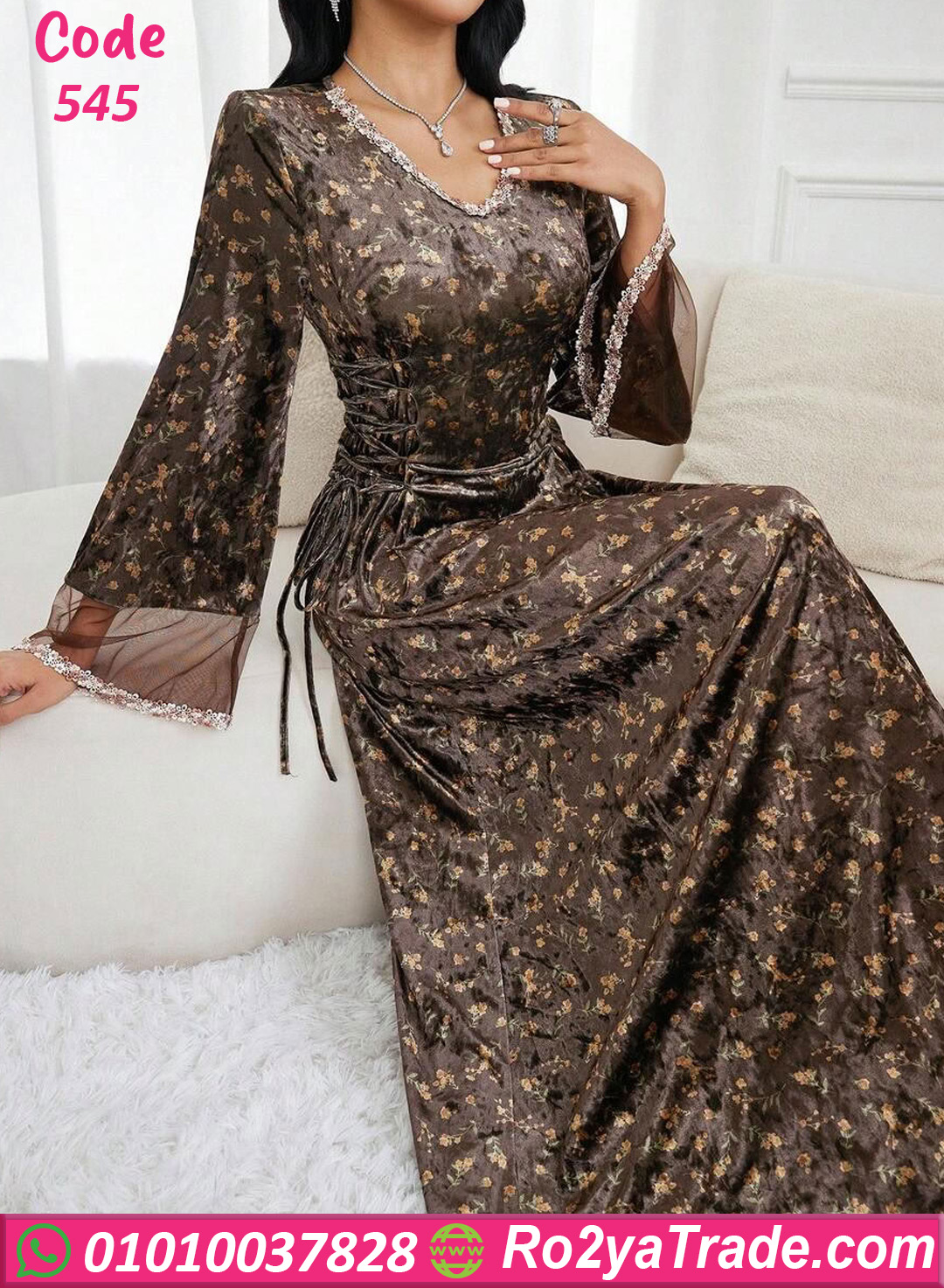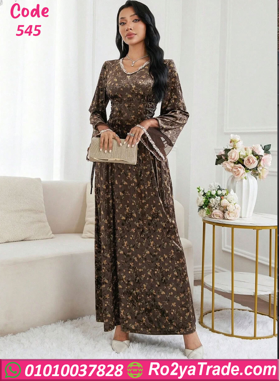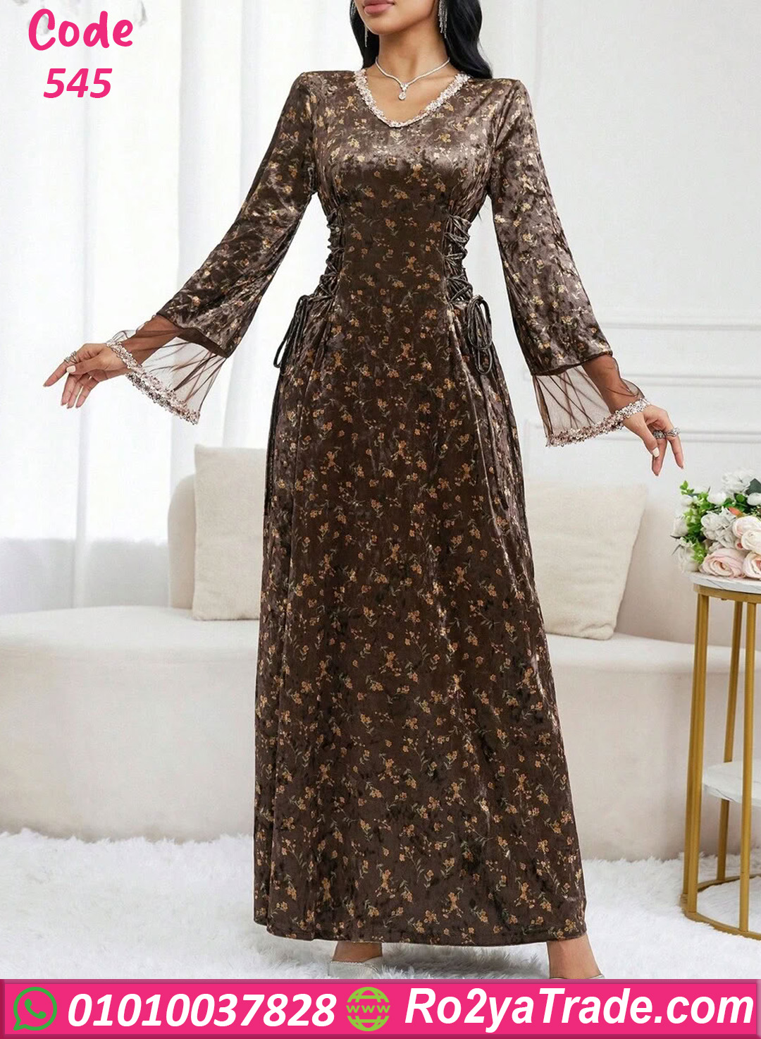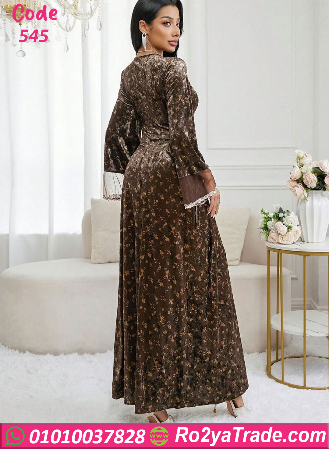اطلبي الآن دريس شتوي طويل ورد بني كود 545 بأفضل سعر