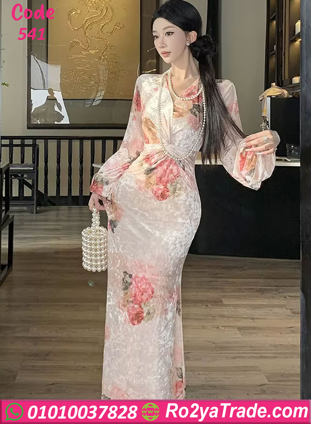 اطلبي الآن دريس شتوي طويل ورد كود 541 بأفضل سعر