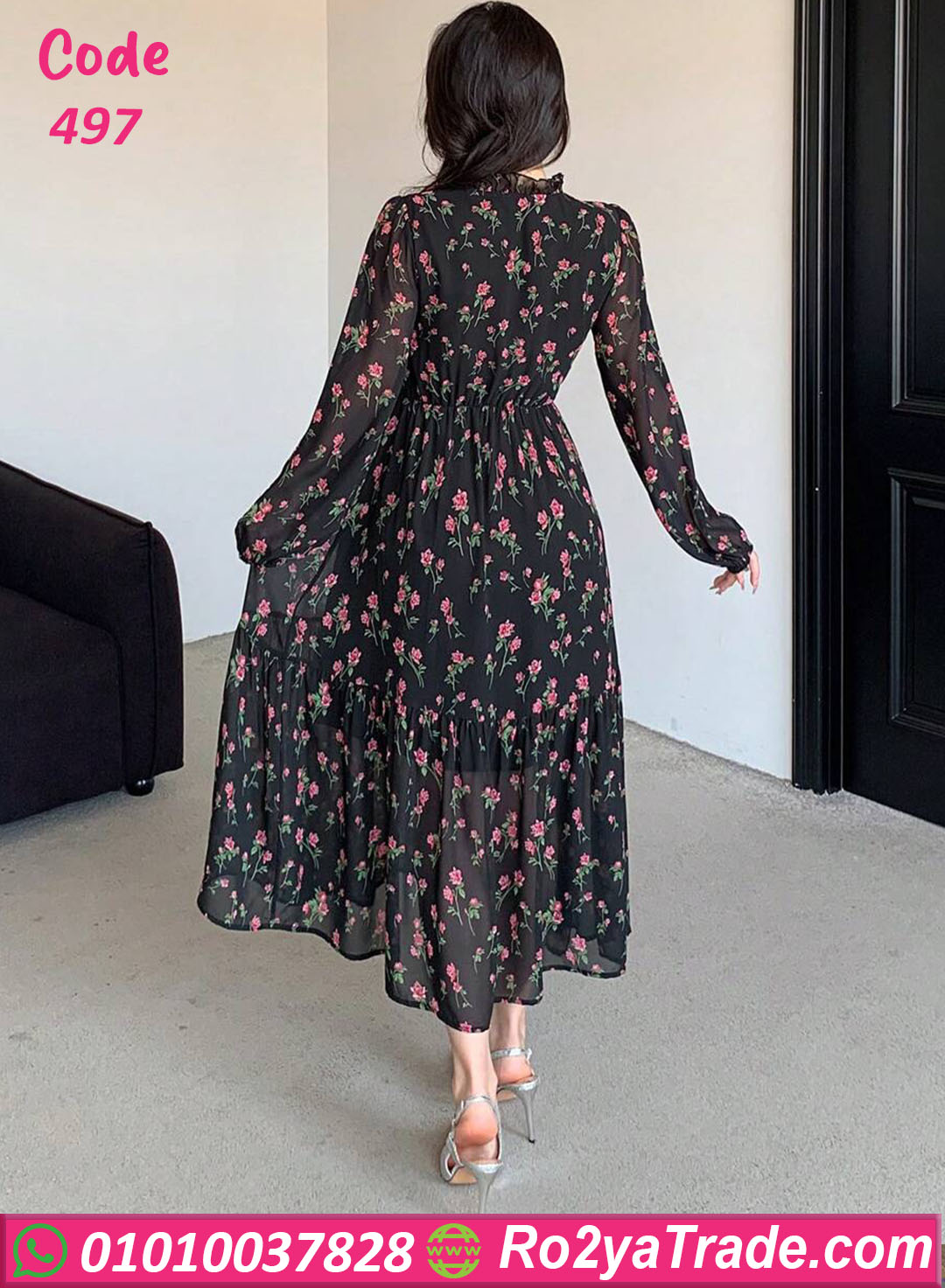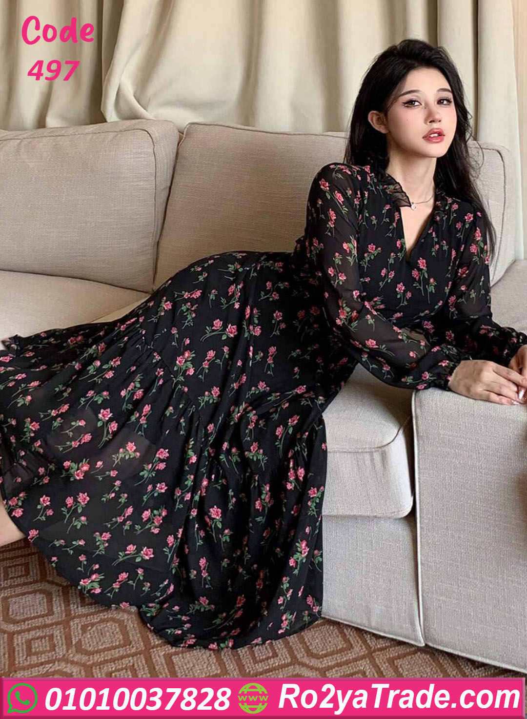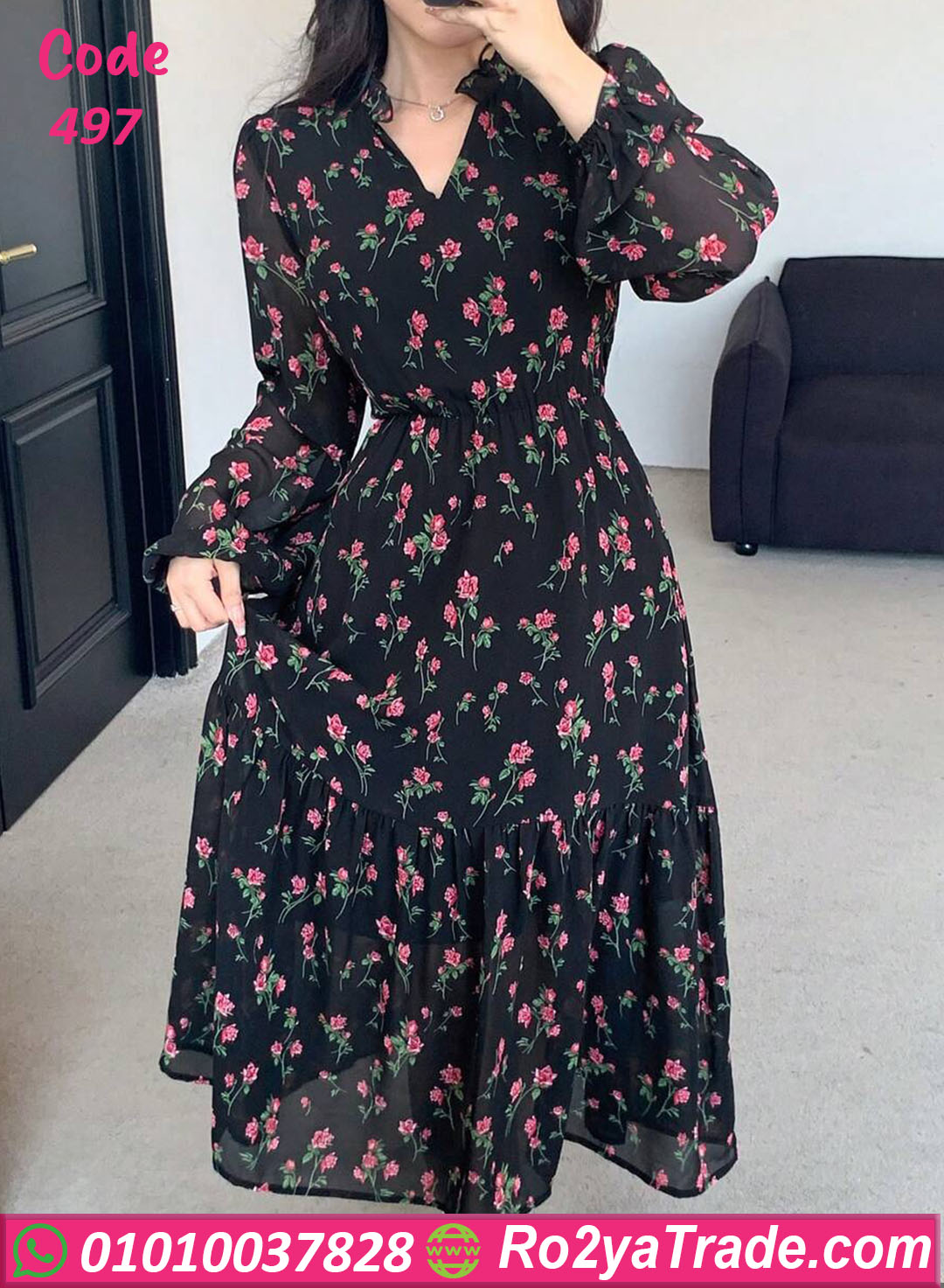 دريس كود 497 هو قطعة مثالية لكل البنات اللي بتحب الأناقة البسيطة 🌸 الخامة شيفون ناعم بنقشة ورد ناعمة على خلفية سودة أنيقة بتدي شكل أنثوي راقي جدًا. تصميمه واسع ومريح مع خصر مطّاط بيبرز القوام بشكل أنثوي من غير ما يضايقك. ينفع تلبسيه في الخروجات الصباحية، أو المناسبات الهادية، أو حتى خروجة رومانسية 😍 الفستان خفيف على الجسم ومناسب جدًا لفصل الصيف، وبيجمع بين الشياكة والراحة في نفس الوقت.