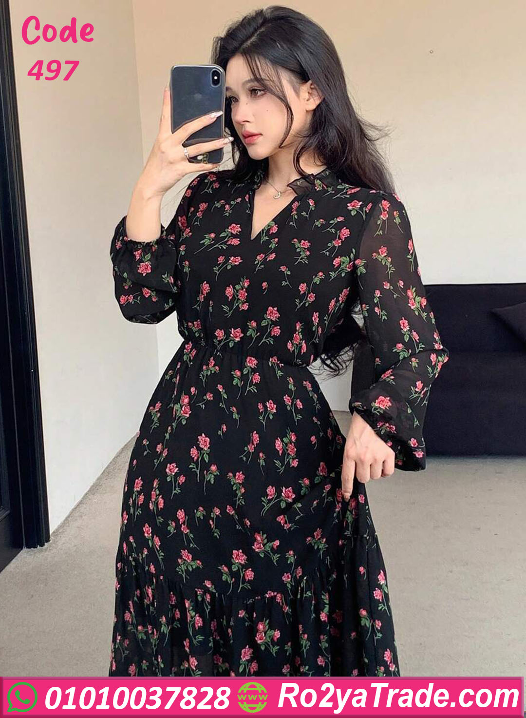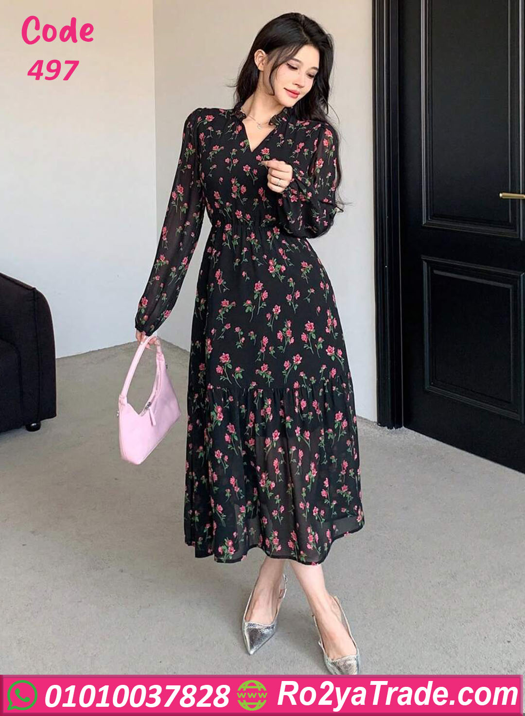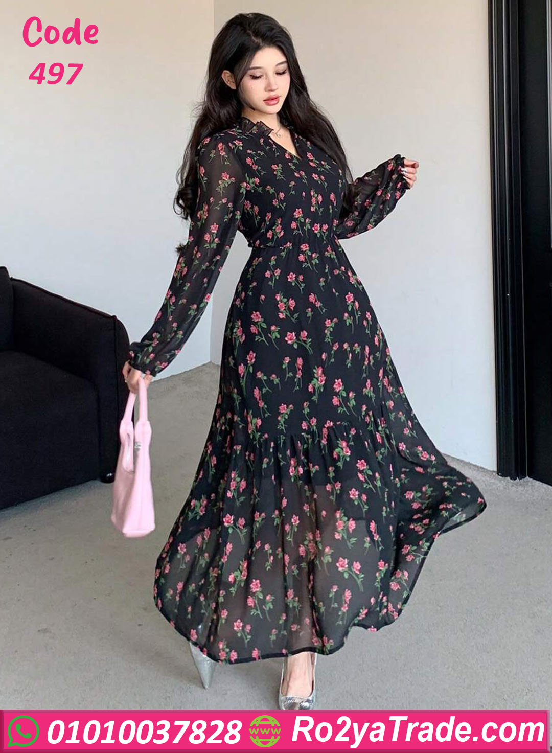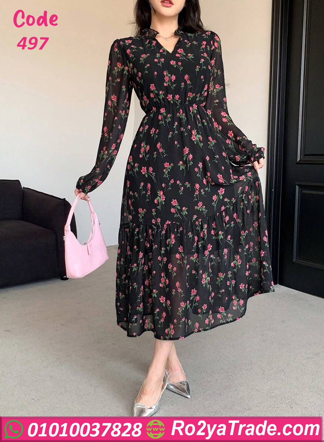 دريس كود 497 هو قطعة مثالية لكل البنات اللي بتحب الأناقة البسيطة 🌸 الخامة شيفون ناعم بنقشة ورد ناعمة على خلفية سودة أنيقة بتدي شكل أنثوي راقي جدًا. تصميمه واسع ومريح مع خصر مطّاط بيبرز القوام بشكل أنثوي من غير ما يضايقك. ينفع تلبسيه في الخروجات الصباحية، أو المناسبات الهادية، أو حتى خروجة رومانسية 😍 الفستان خفيف على الجسم ومناسب جدًا لفصل الصيف، وبيجمع بين الشياكة والراحة في نفس الوقت.