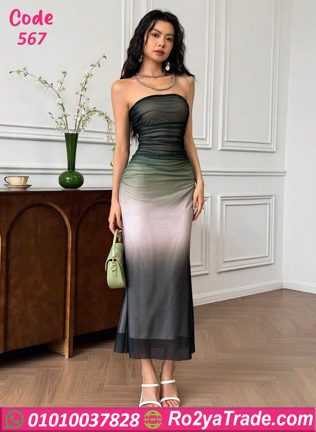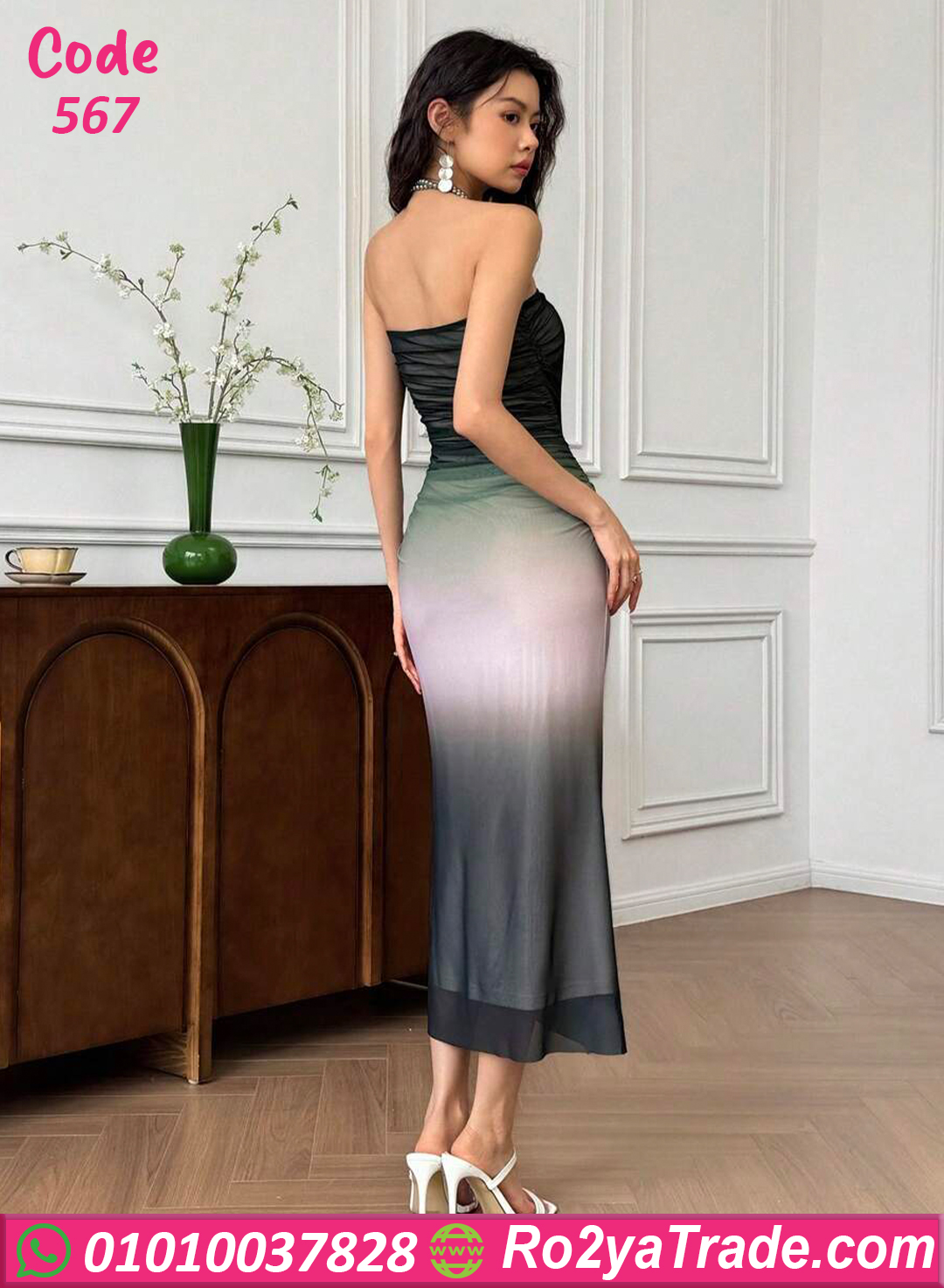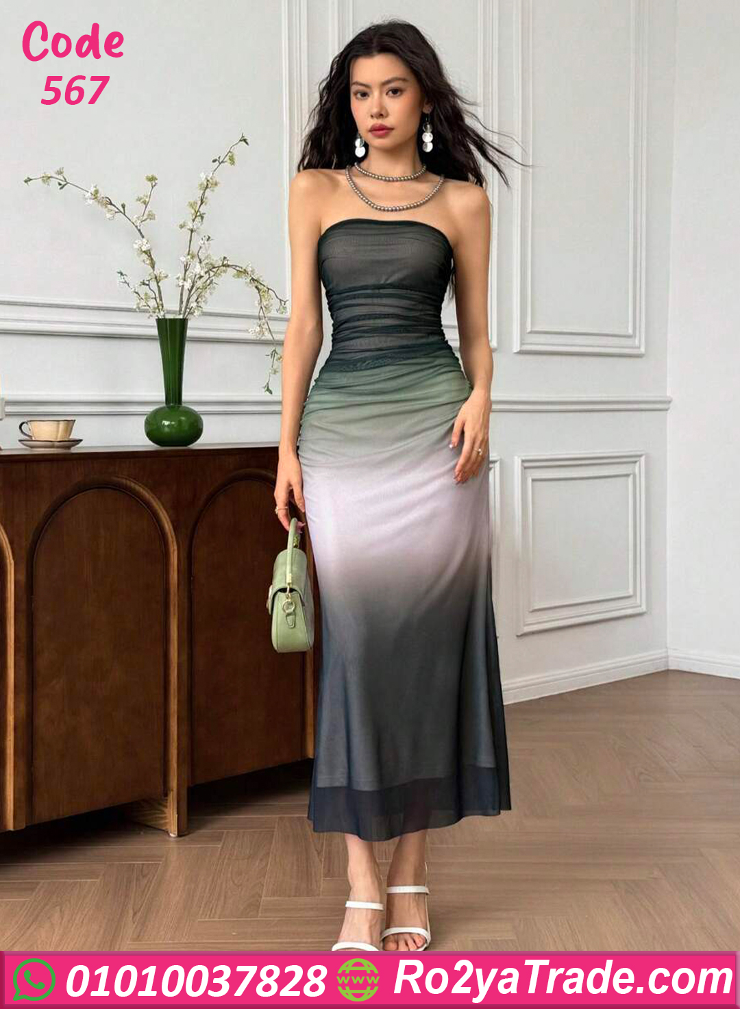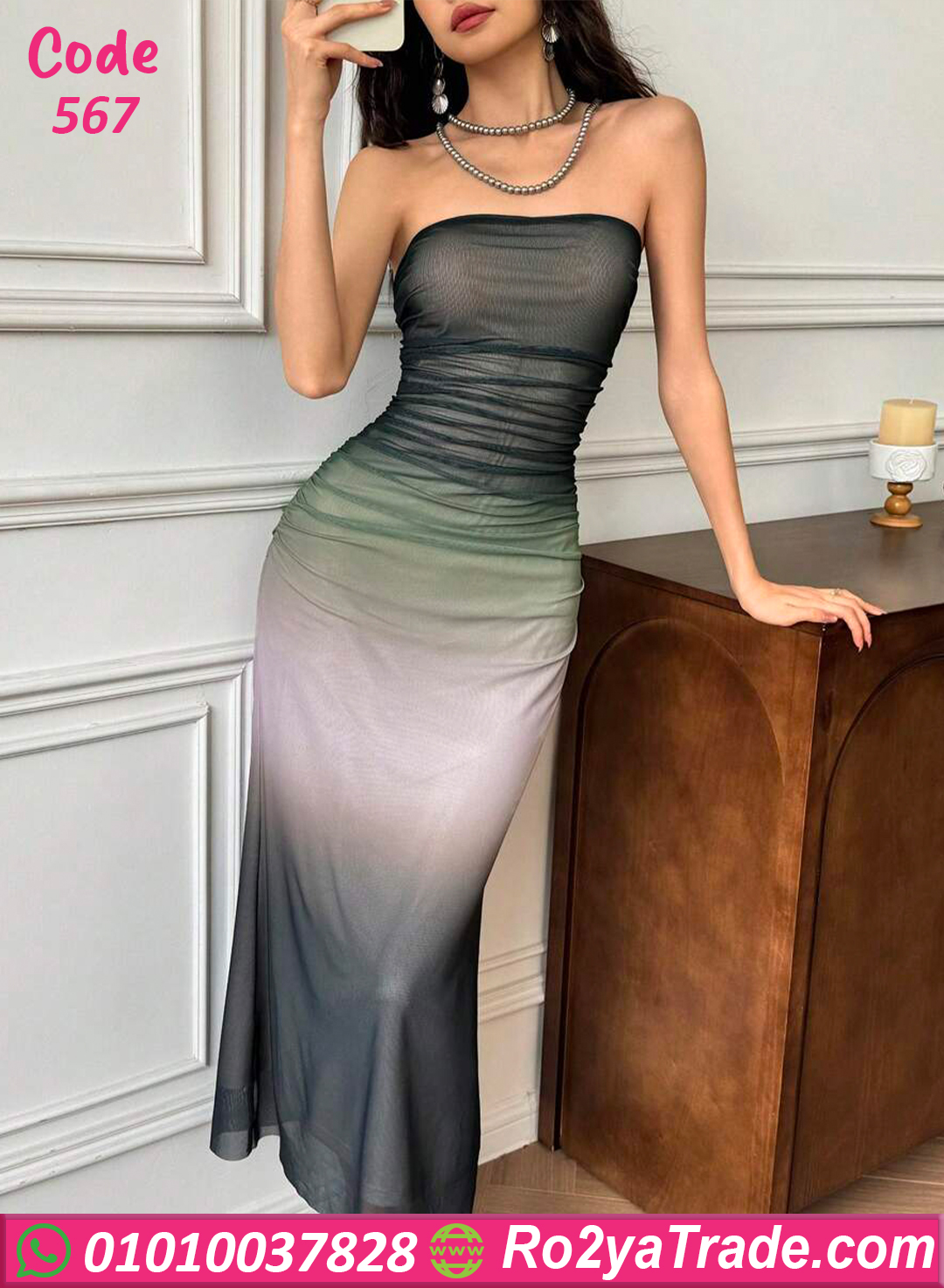 لو بتحبي الإطلالة الهادية والأنثوية، فدريس كود 567 هو اختيارك المثالي 💃 الخامة لايكرا مرنة ومريحة على الجسم، بتدي إحساس بالراحة وأناقة في نفس الوقت. اللون الأومبريه المتدرّج بين الرمادي الفاتح والأخضر المينت بيدي لمسة رقي مختلفة، وبيخلي الدريس شكله فخم جدًا سواء في خروجات النهار أو السهرات الصيفية. القَصّة ضيقة بتبرز القوام بطريقة شيك مش مبالغ فيها، مع منطقة الخصر المشدودة اللي بتدي شكل أنثوي جذاب. تقدري تلبسيه على كعب بسيط أو صندل مفتوح وهيكون الإطلالة كلها كلاس وأنيقة 😍 مناسب للبنات اللي بتحب اللبس البسيط بس ملفت في نفس الوقت، وهيخليكي تحسي إنك متألقة في كل مناسبة 💖