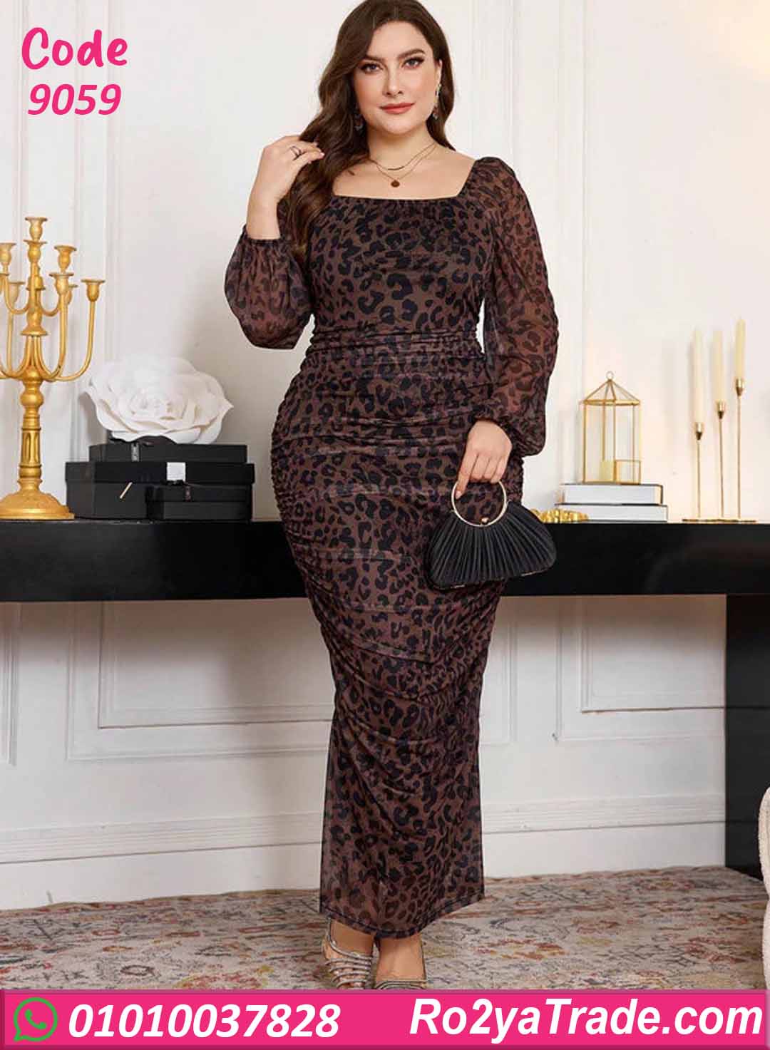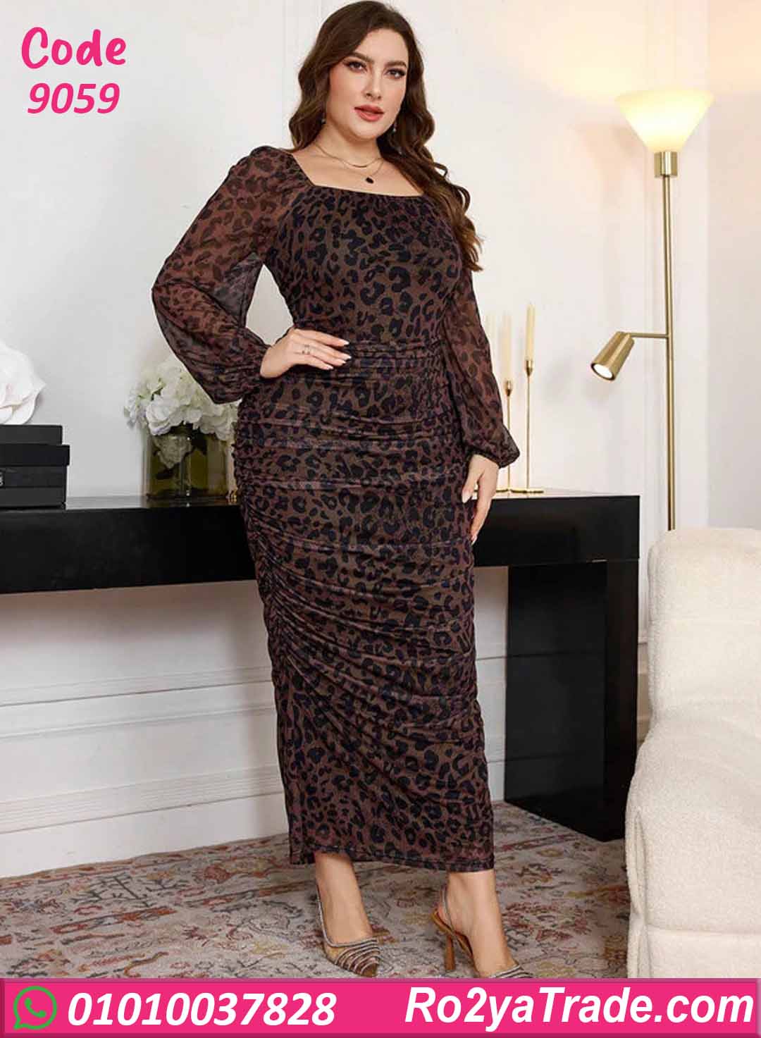 دريس كود 9059 بتصميم صيفي طويل وقصّة مريحة بتبرز القوام بشكل أنيق، مع أكمام طويلة خفيفة وخامة ناعمة على الجسم.