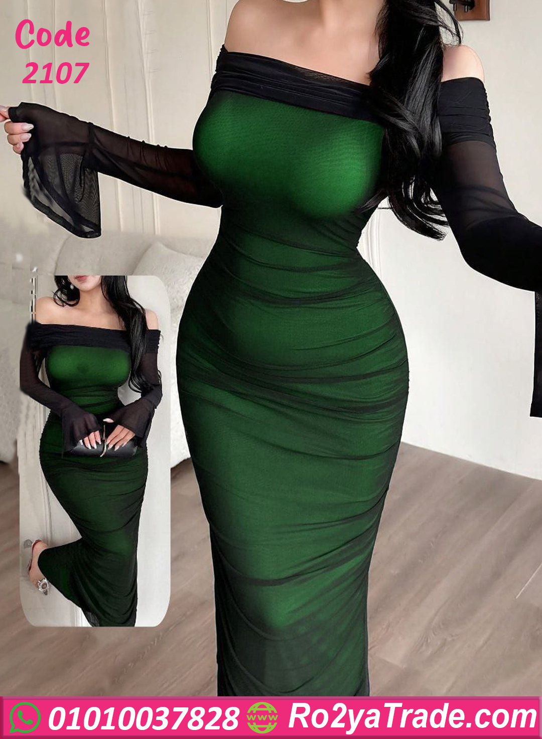 دريس صيفي طويل 2107 تصميمه بيجمع بين الجاذبية والفخامة، خامة ستريتش عالية الجودة بتبرز شكل الجسم بشكل مثالي، مع طبقة شيفون خارجية بتدي لمسة نعومة وأناقة. الأكتاف الأوف شولدر بتركّز على منطقة الرقبة والصدر وبتدي لوك أنثوي مميز. مناسب للسهرات والخروجات المميزة وبيمنحك إطلالة متناسقة وجذابة من أول لحظة. لو عايزة دريس يملى حضورك ثقة وأنوثة… 2107 اختيار مضمون وجذاب 💚🔥