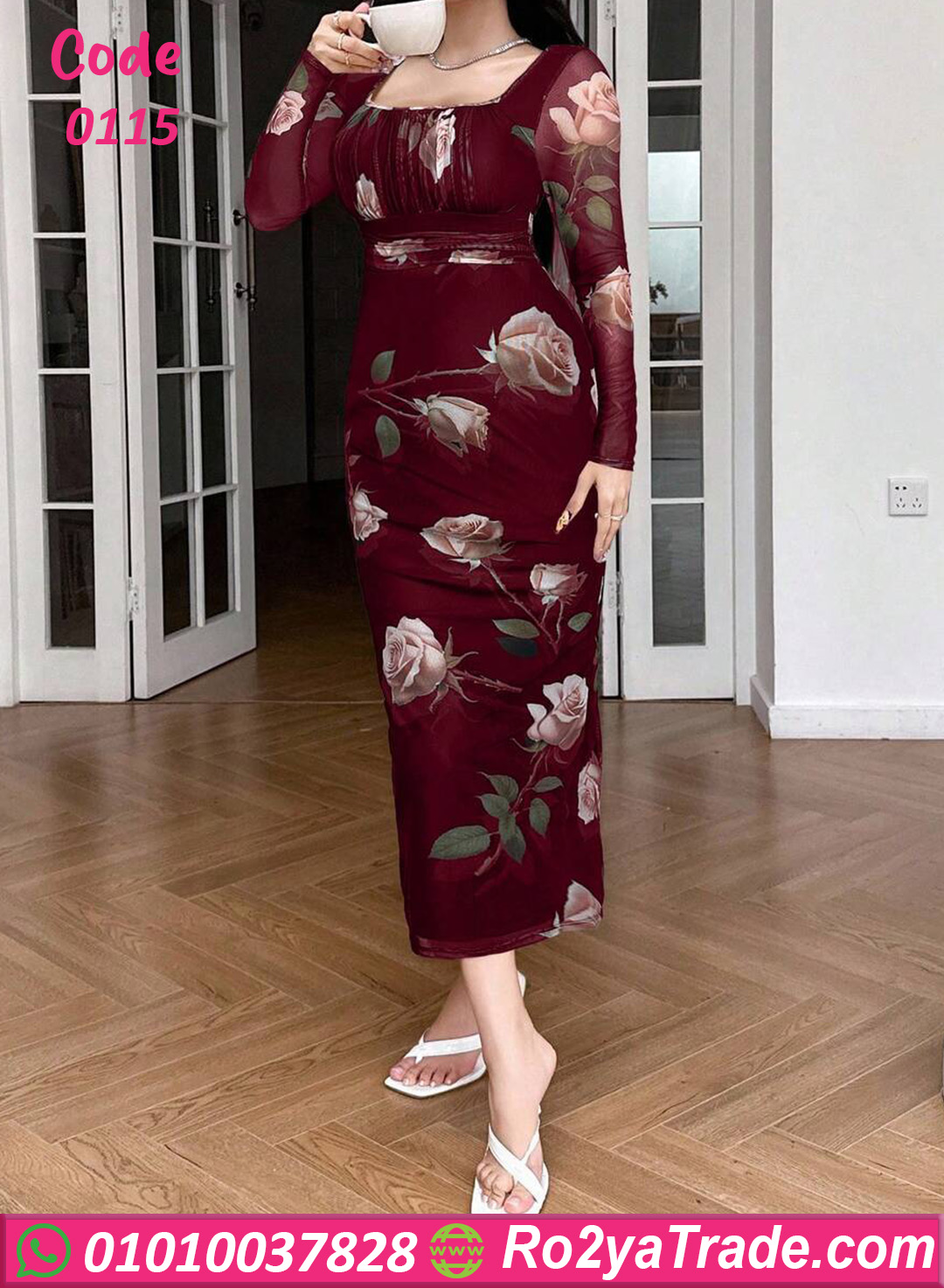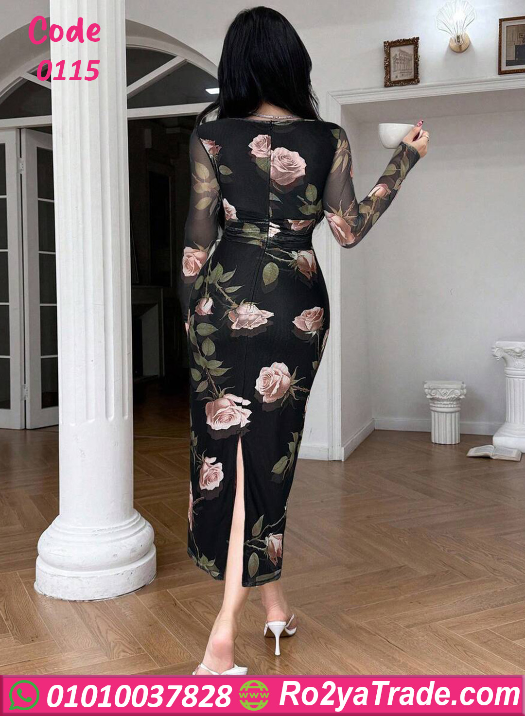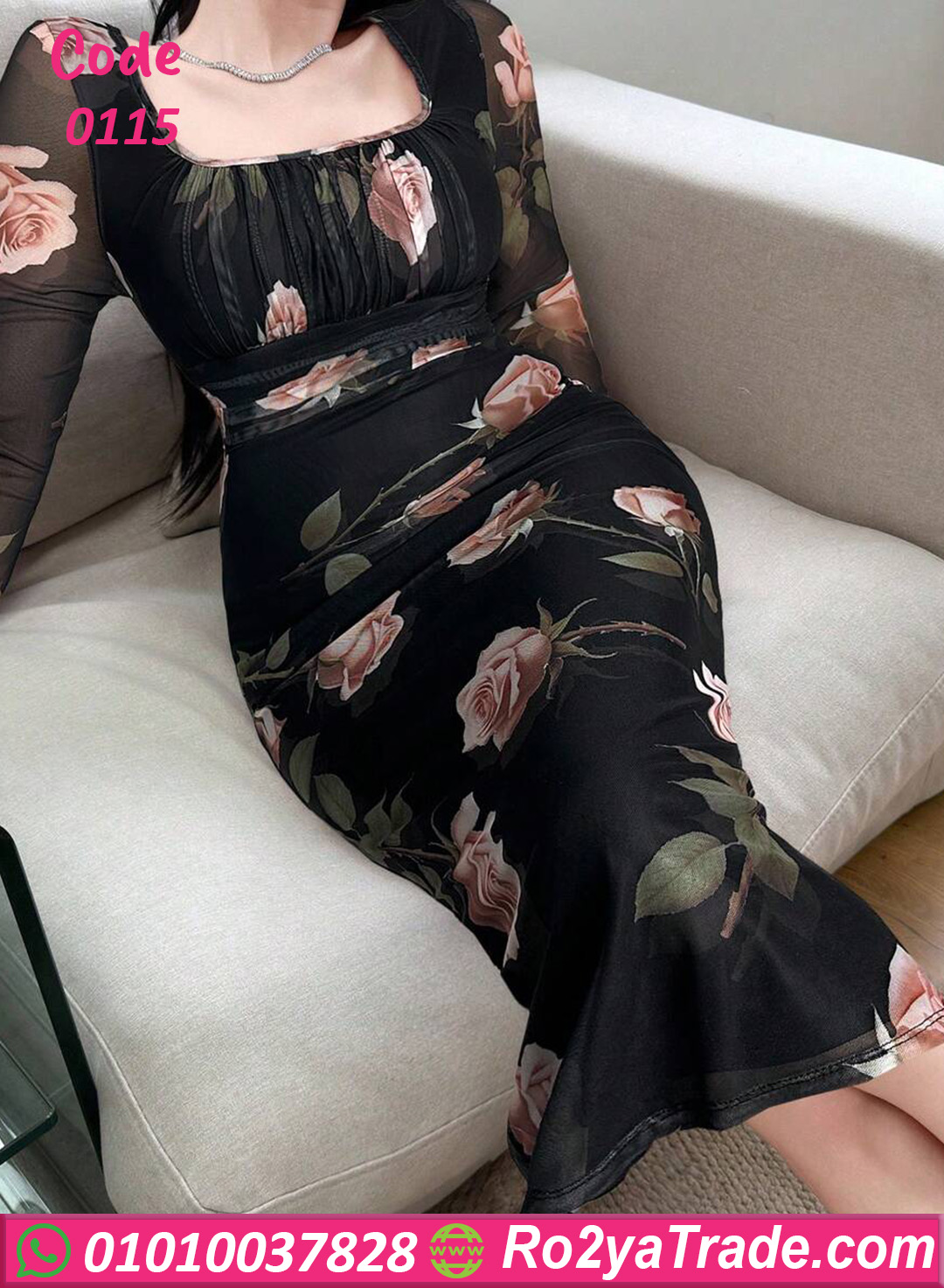 دريس صيفي طويل مشجر ورود بتصميم أنثوي ناعم يبرز القوام ويمنحك إطلالة رقيقة ومميزة طوال اليوم.