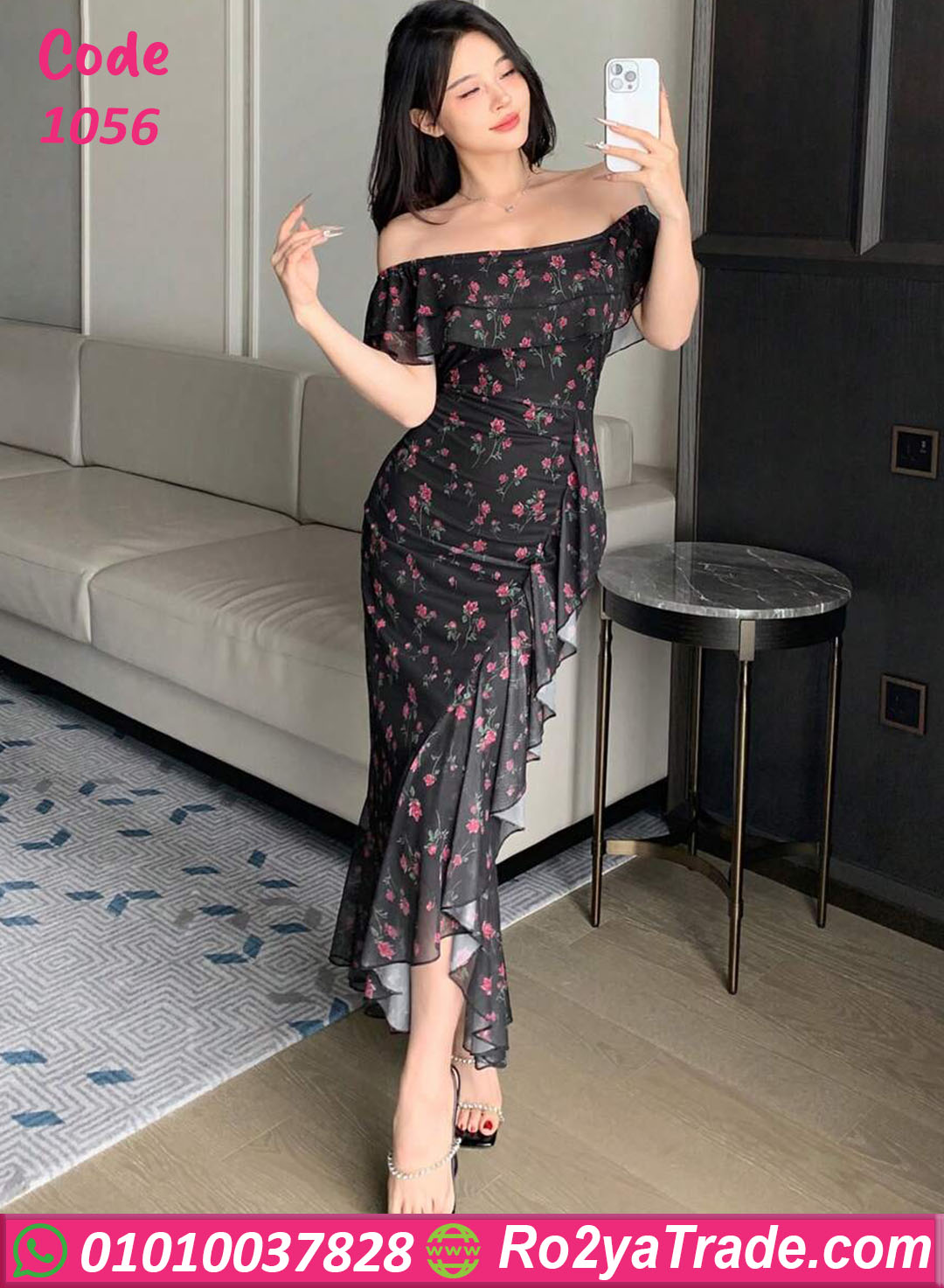فستان صيفي طويل أوف شولدر بخامة مريحة وطباعة ورد أنيقة تديكي إطلالة أنثوية رقيقة ومختلفة. قصة جسم ناعمة مع كرانيش جانبية تضيف لمسة شياكة مناسبة للبيت والخروج والسهرات البسيطة. مناسب لأغلب الأوزان بفضل خامته المرنة. كود 1056.