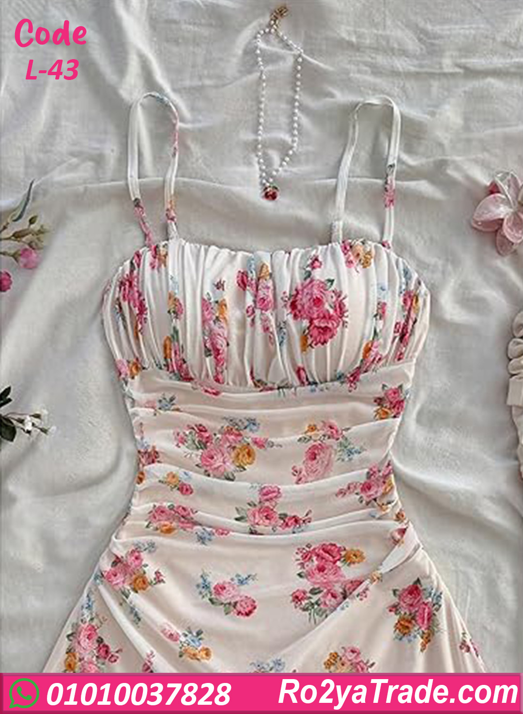 نقشة الورود الهادية مع القَصّة القصيرة بتدي شكل أنثوي راقي، مناسب للخروجات الصيفي، المصايف، أو سهرات بسيطة شيك.