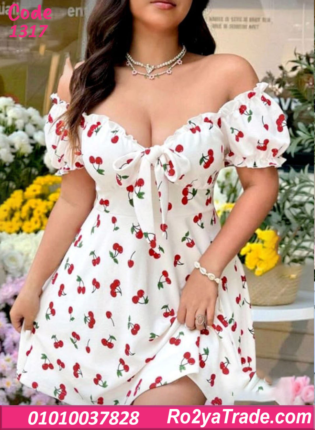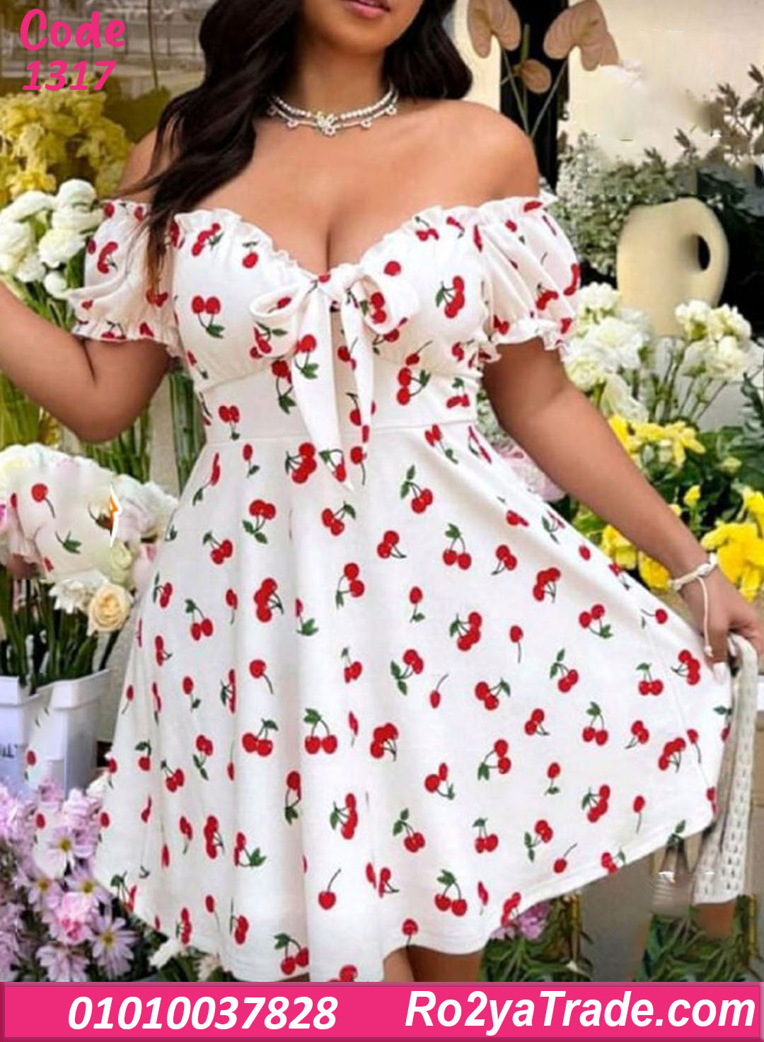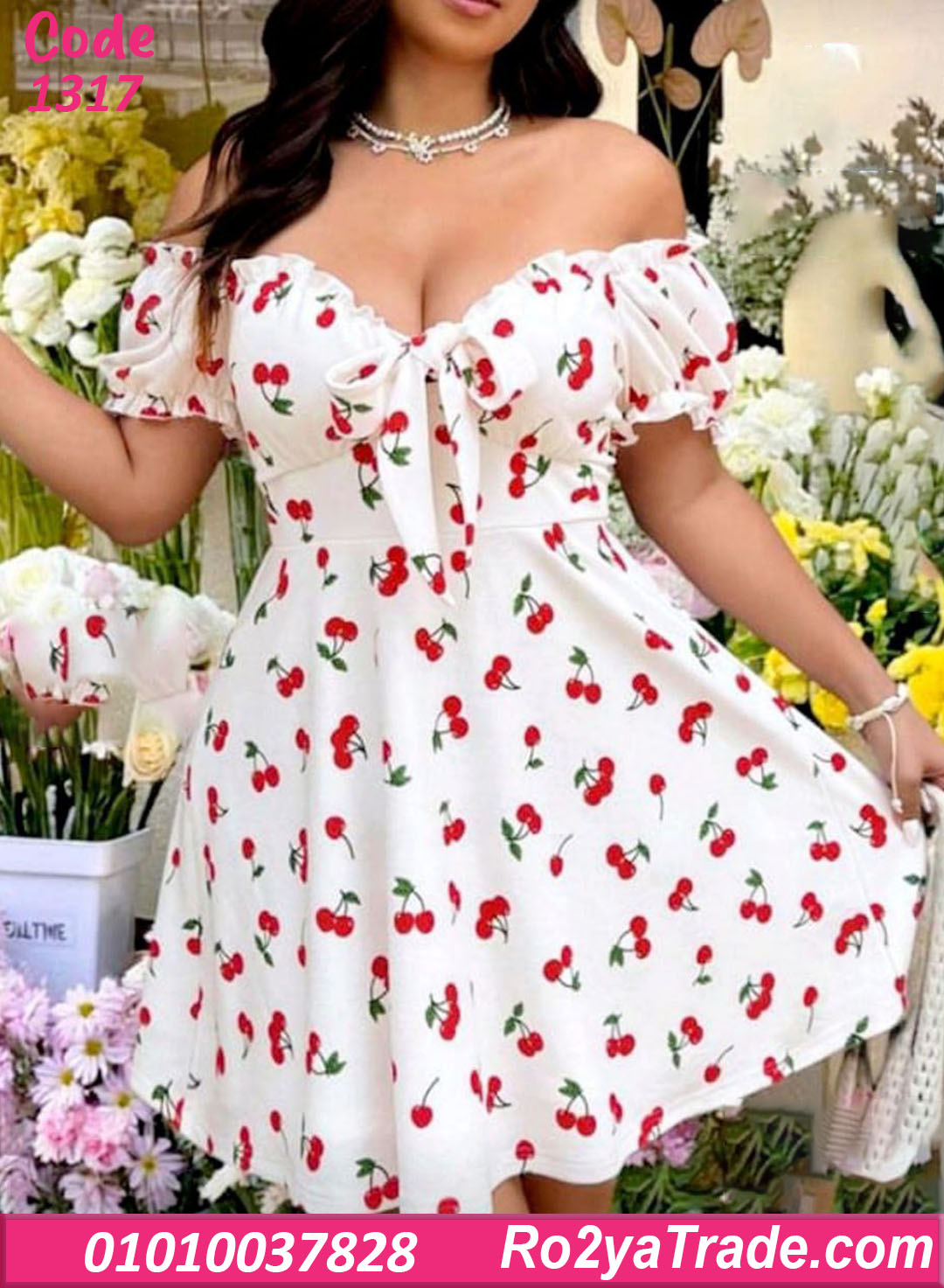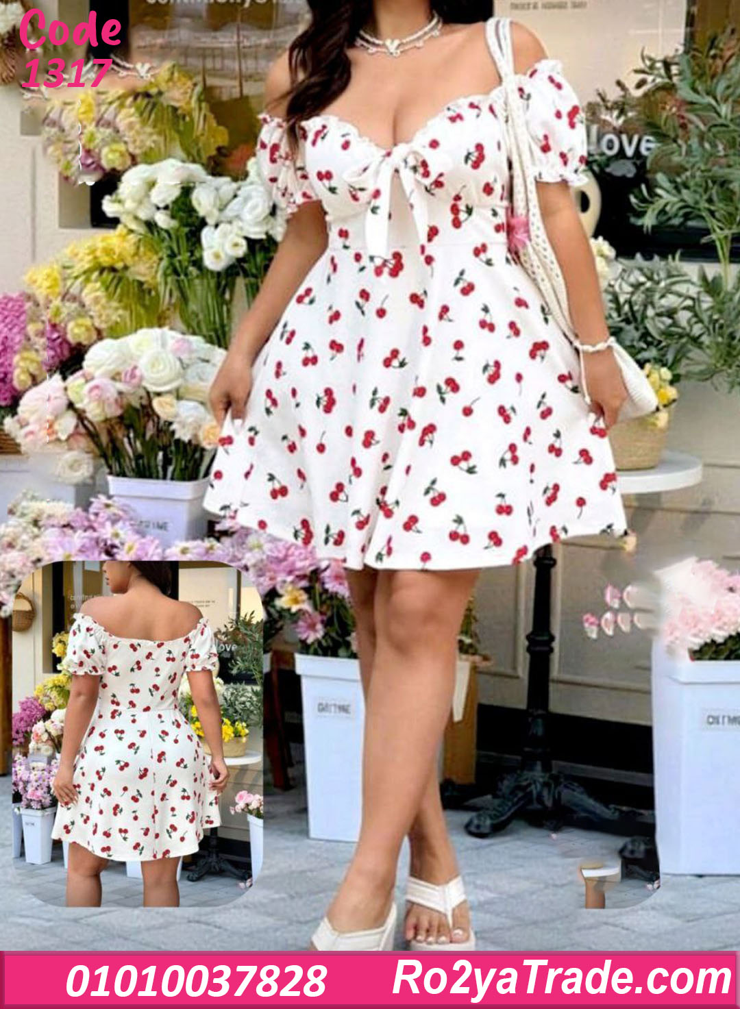دريس حريمي صيفي قصير بتصميم أنثوي جذاب يمنحك إطلالة أنيقة ومميزة في الخروجات الصيفية. يتميز بنقشة كرز جميلة تضيف لمسة حيوية وعصرية إلى الإطلالة.