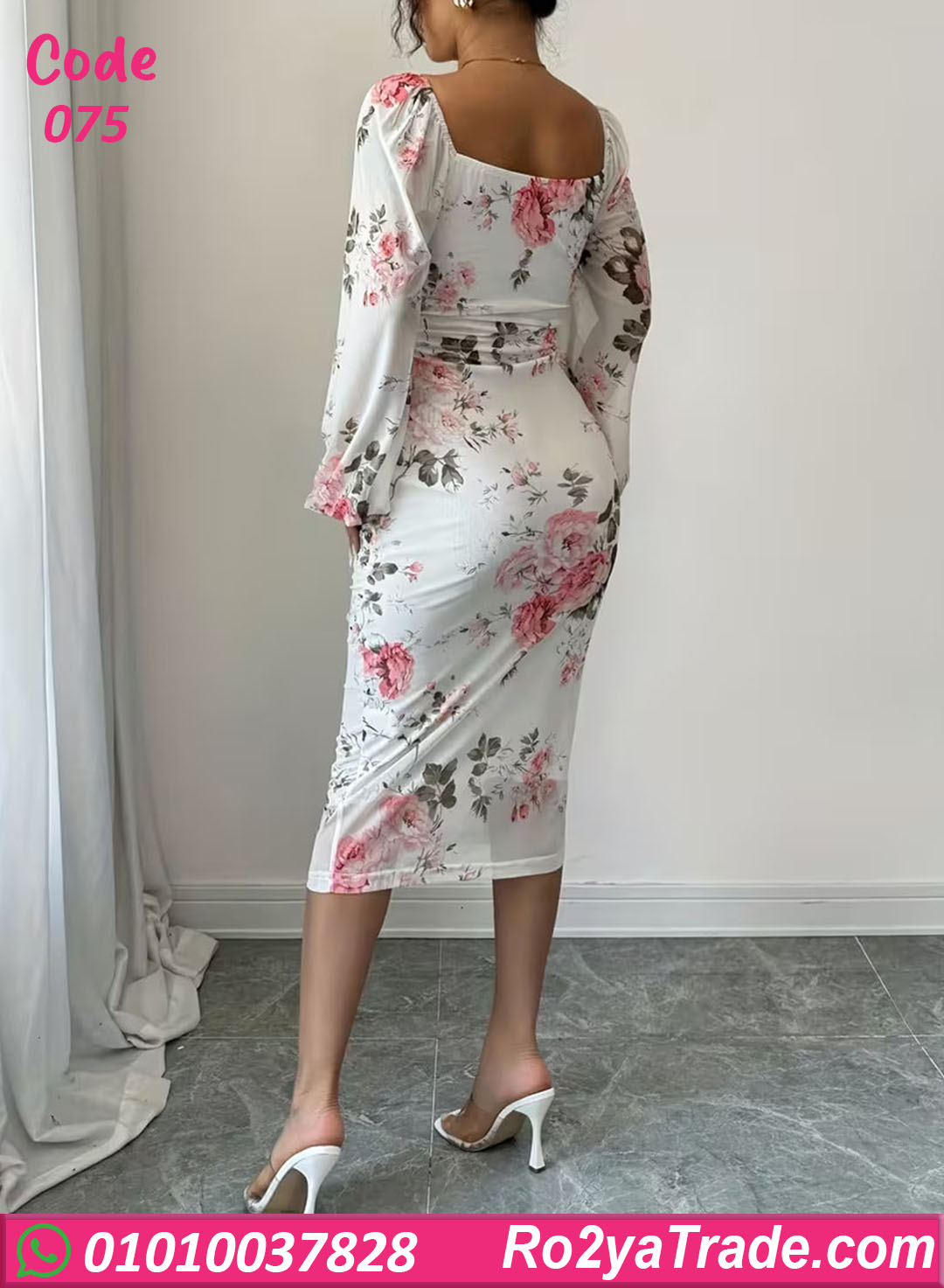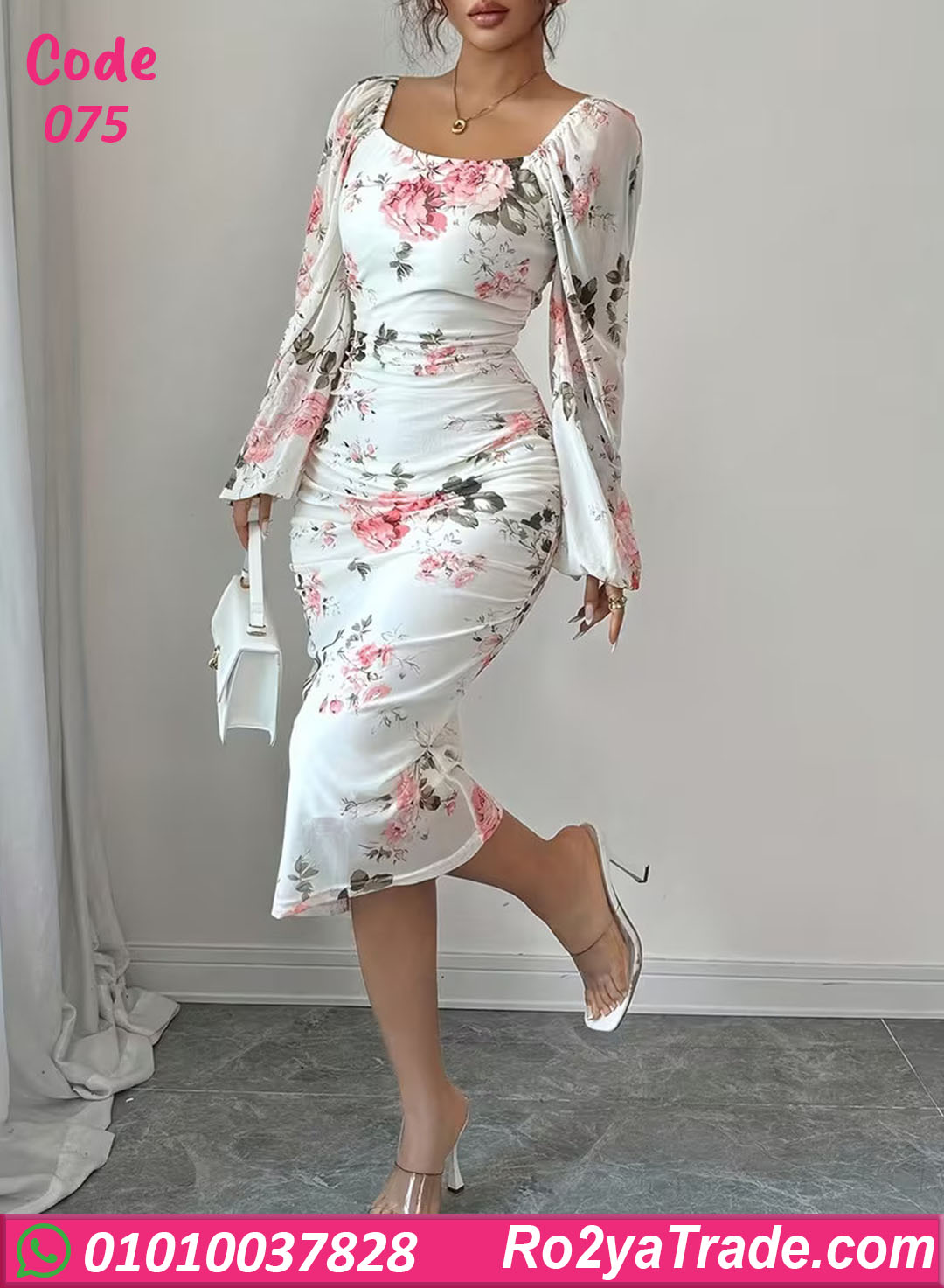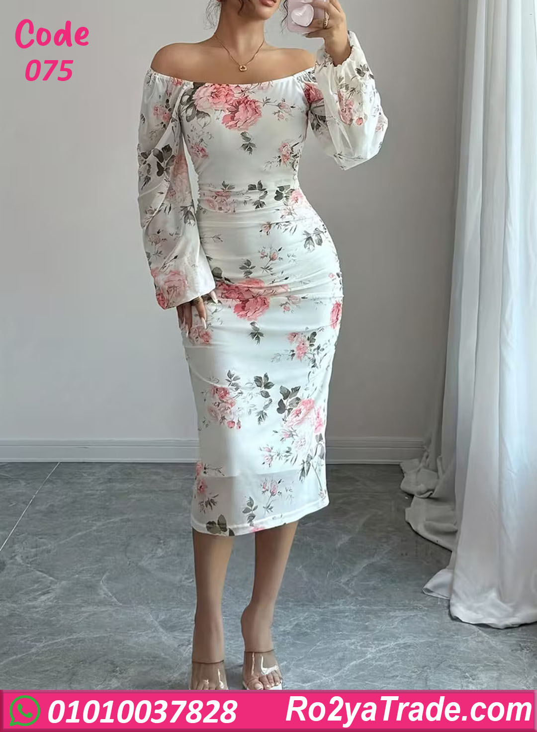 دريس صيفي قصير بتصميم أوف شولدر ونقشة ورد ناعمة، بيدي شكل أنثوي شيك ومريح، مناسب للخروجات والمناسبات الصيفي.