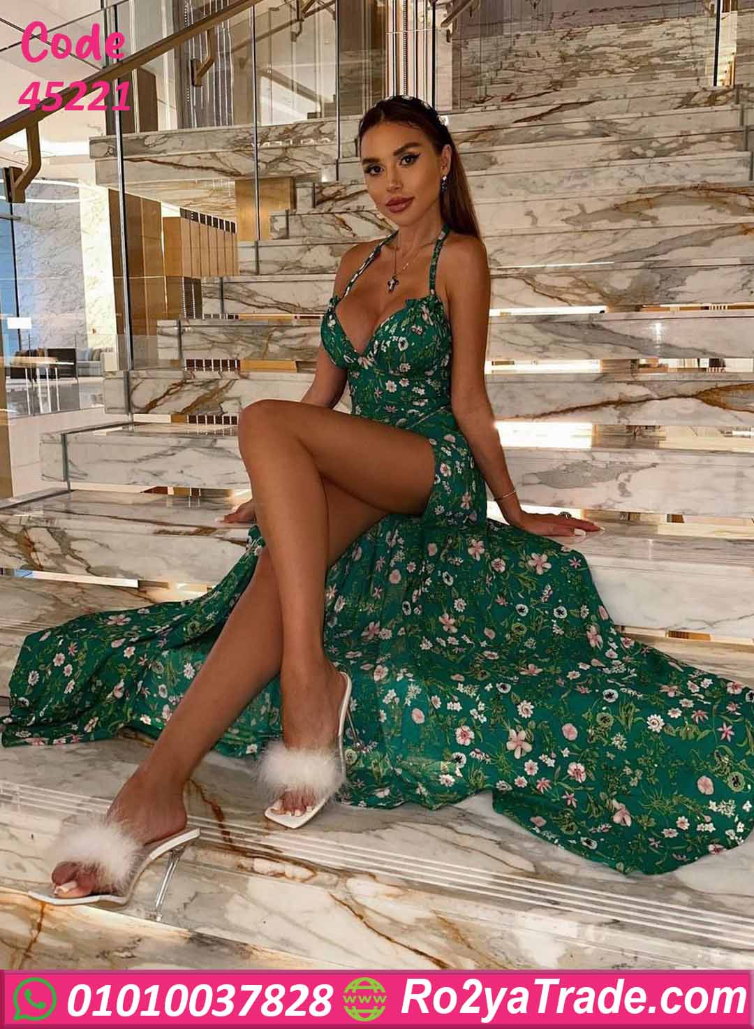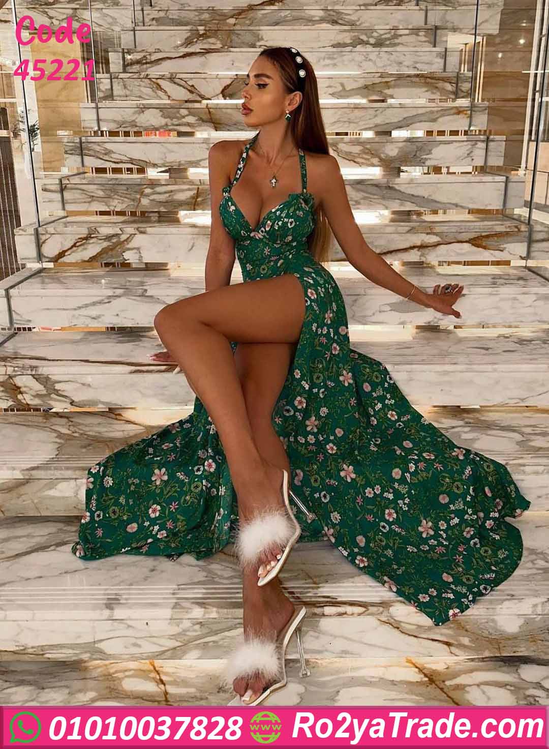 دريس صيفي طويل المزخرف بورود رقيقة بألوان هادية تدي إحساس بالانتعاش والنعومة. تصميم بفتحة جانبية أنيقة يبرز الساق بشكل راقي، مع قصة صدر جذابة وحمالات رفيعة بتدي شكل أنثوي مميز. خامة خفيفة وانسيابية مناسبة للصيف والخروجات والمناسبات النهارية أو السهرات الهادية.
