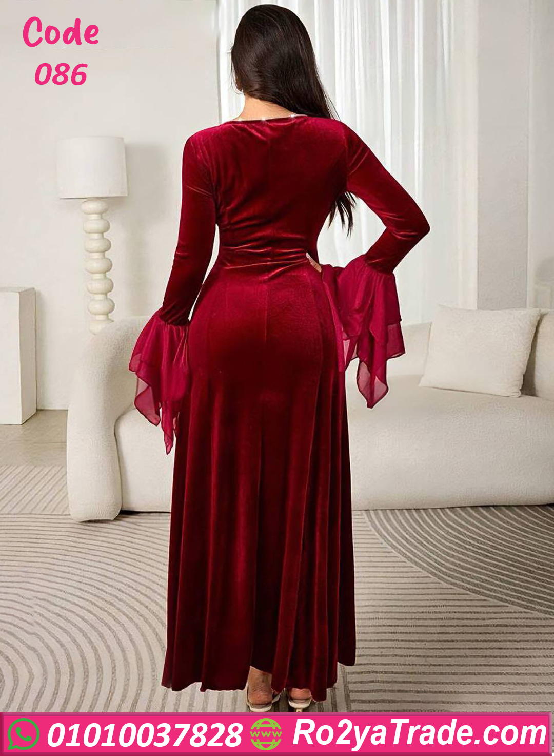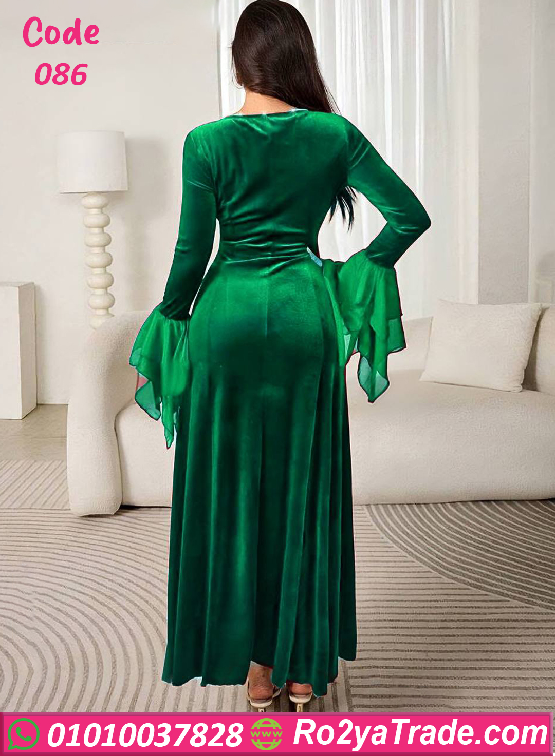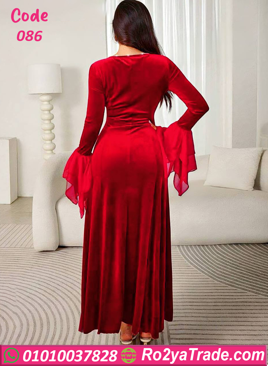 دريس قطيفة شتوي ناعم وأنيق يناسب السهرات والجلسات المسائية، تصميمه انسيابي بكم منفوش وقصة رقيقة على الوسط بتدي شكل ممشوق وجذاب