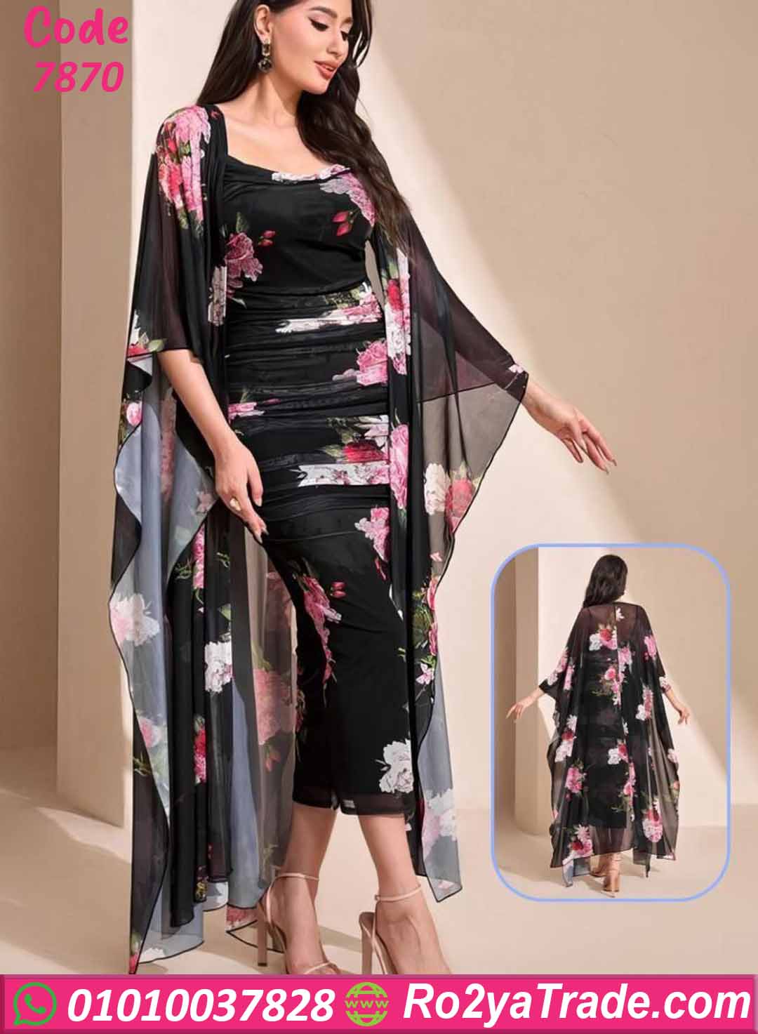 فستان صيفي طويل بطبعة ورد أنيقة مع كاب شيفون يديكي لوك راقي ومميز 🌸✨