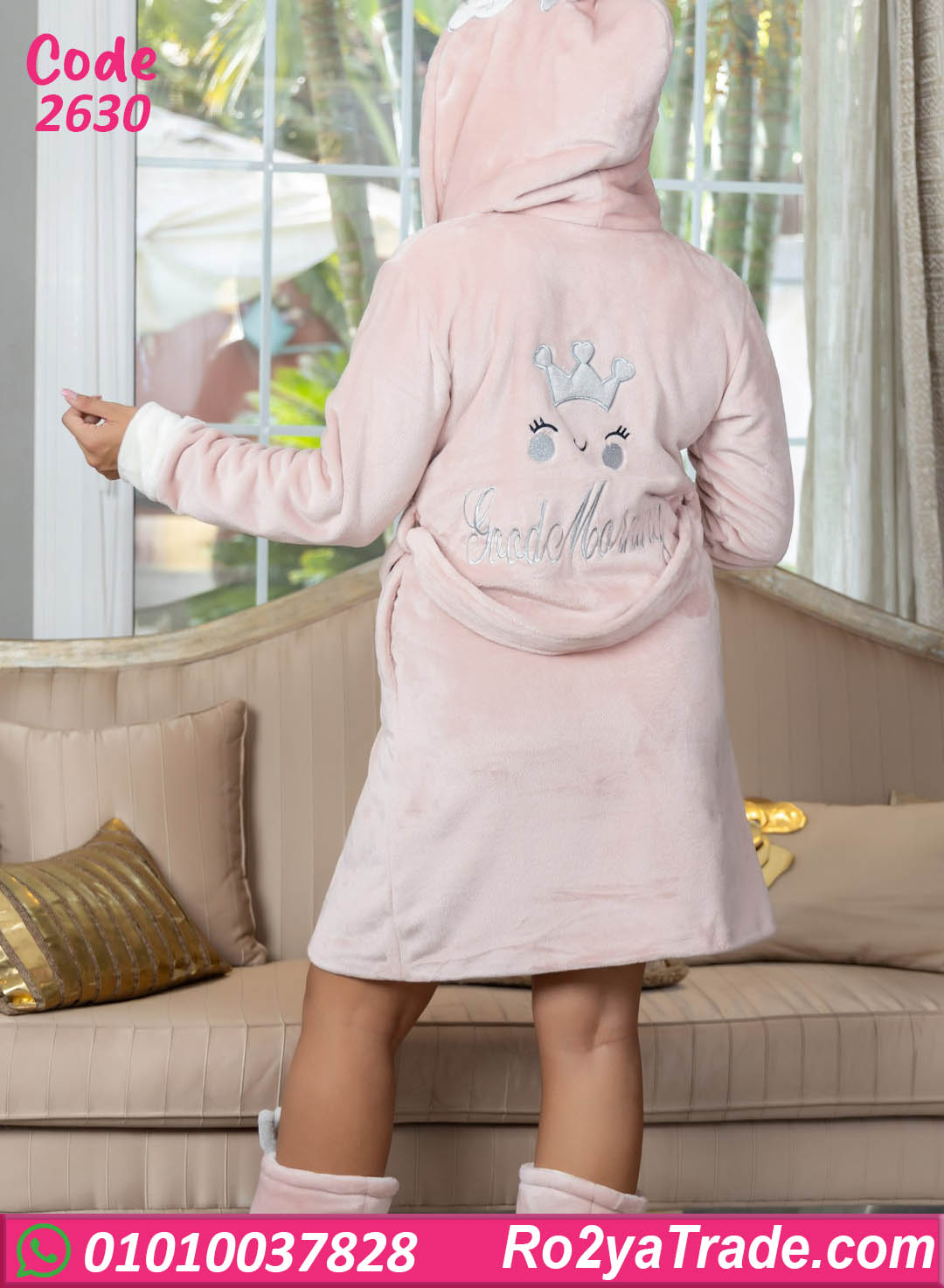 روب نسائي شتوي بخامة قطيفة ناعمة ودافية، تصميم عملي مع كابيشو وحزام لربط الوسط يبرز القوام بشكل أنيق. الروب طوله مناسب وبيوفر حرية حركة، وكمان سهل اللبس ومريح للاستخدام اليومي. التصميم عصري وينفع للبس في البيت أو بعد الشاور، وقطعة أساسية لأي ست بتحب الراحة مع الشكل الحلو في الشتاء. كود 2630