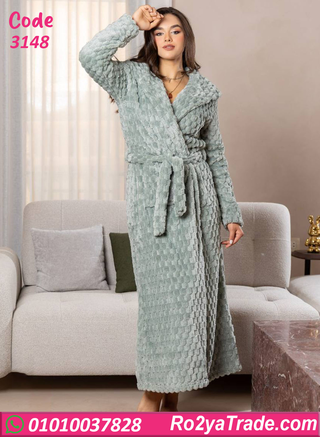 روب شتوي حريمي طويل كود 3148 اختيار مثالي لكل ست بتحب الدفا مع لوك أنيق ومرتب.