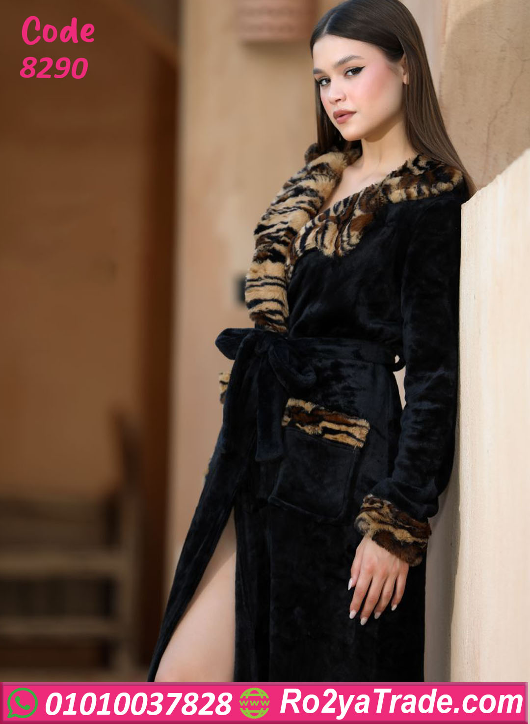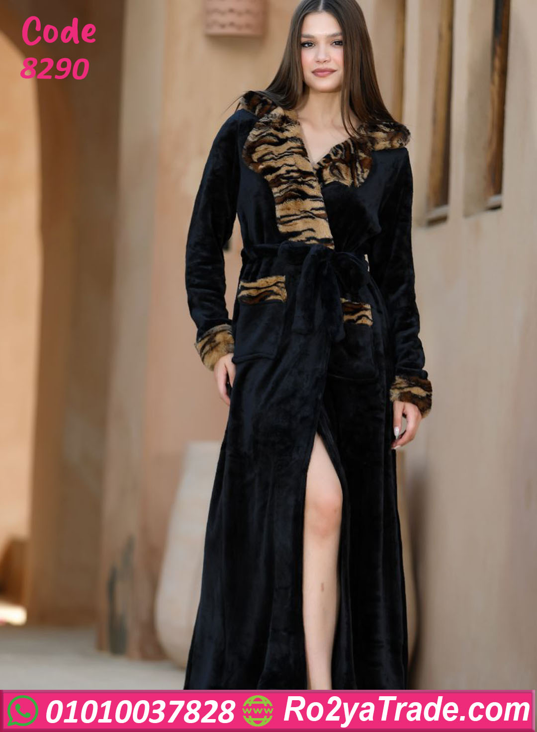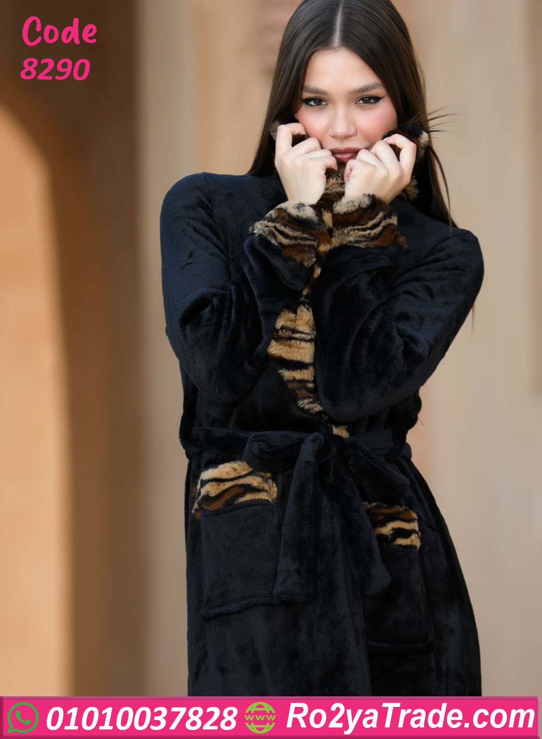 الخامة تقيلة وطرية جدًا على الجلد، بتدي إحساس فخم ودافي في نفس الوقت. التصميم طويل بكمر من عند الوسط لتظبيط المقاس حسب الراحة، وكمان بياقة وأطراف تايجر شيك بتدي لمسة فخامة وأنوثة. الموديل مناسب للبيت أو ما بعد الحمام أو حتى السهرات الشتوية الأنيقة، بيجمع بين الفخامة والراحة بخامة ممتازة مش بتكهرب ومش بتكش بعد الغسيل.