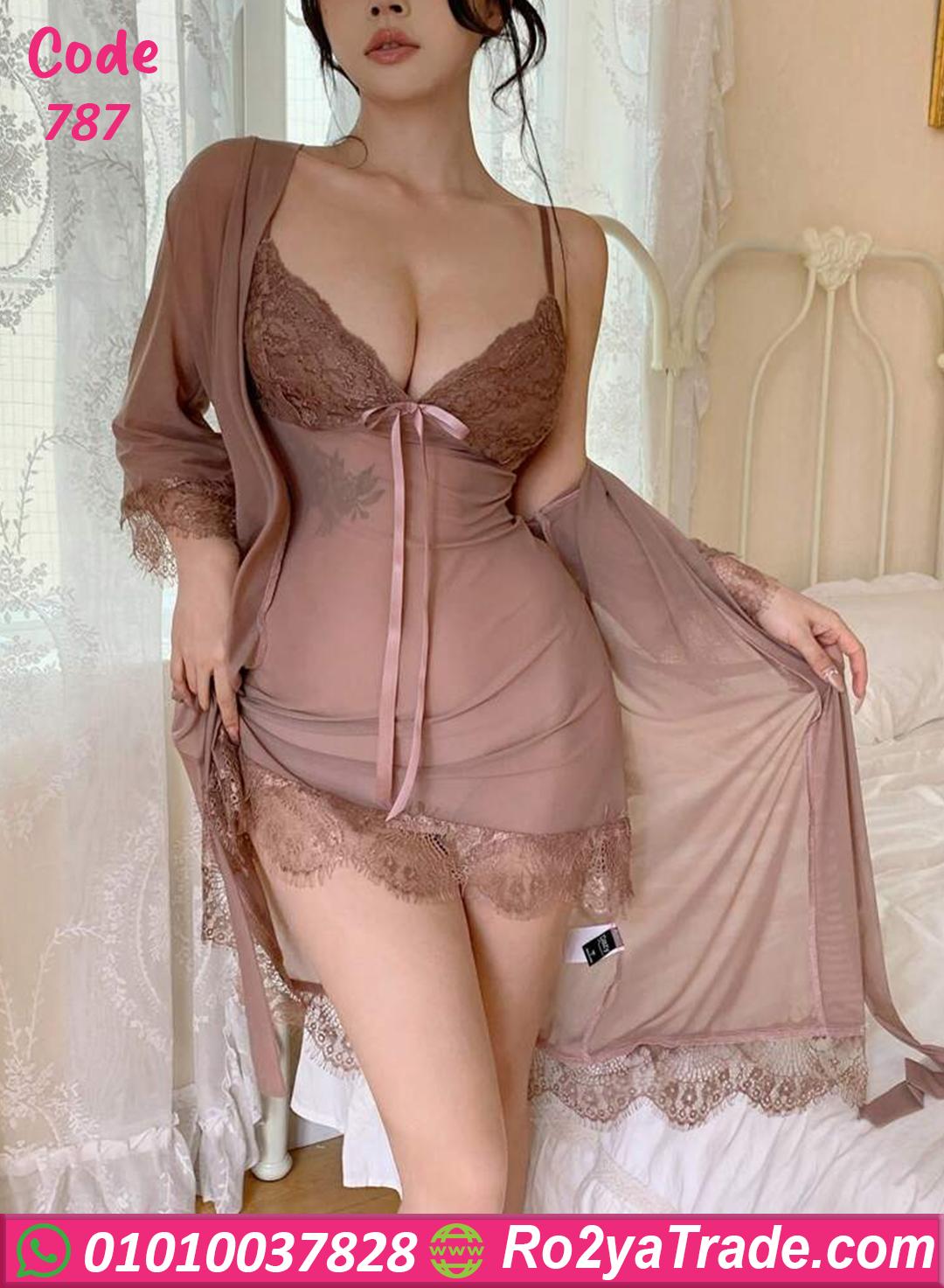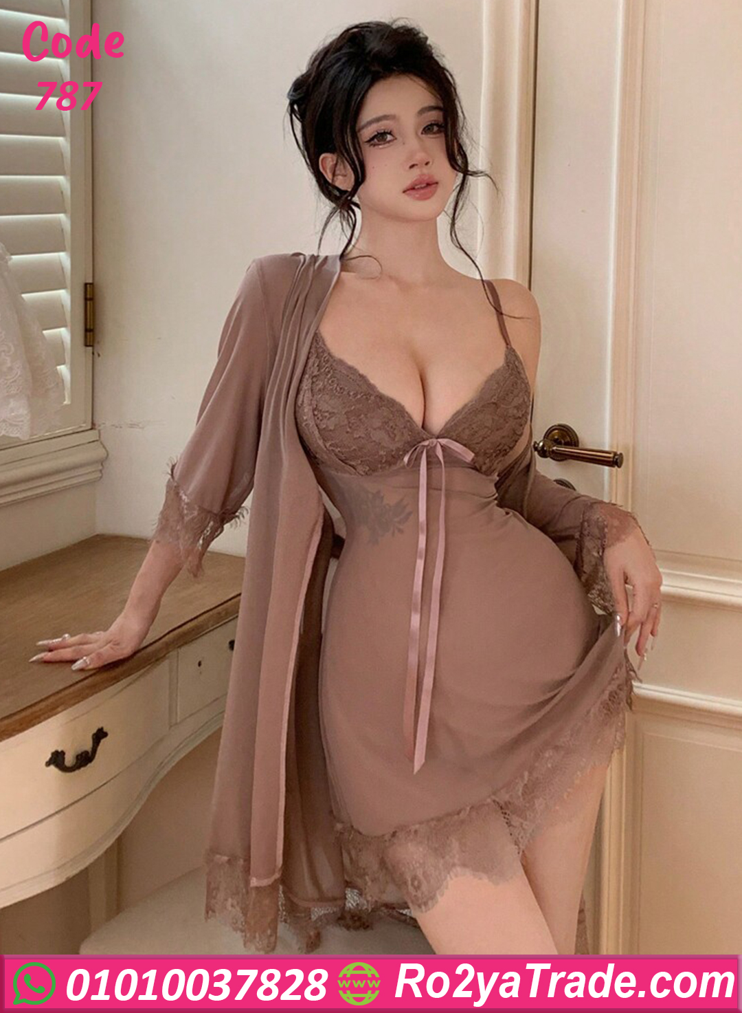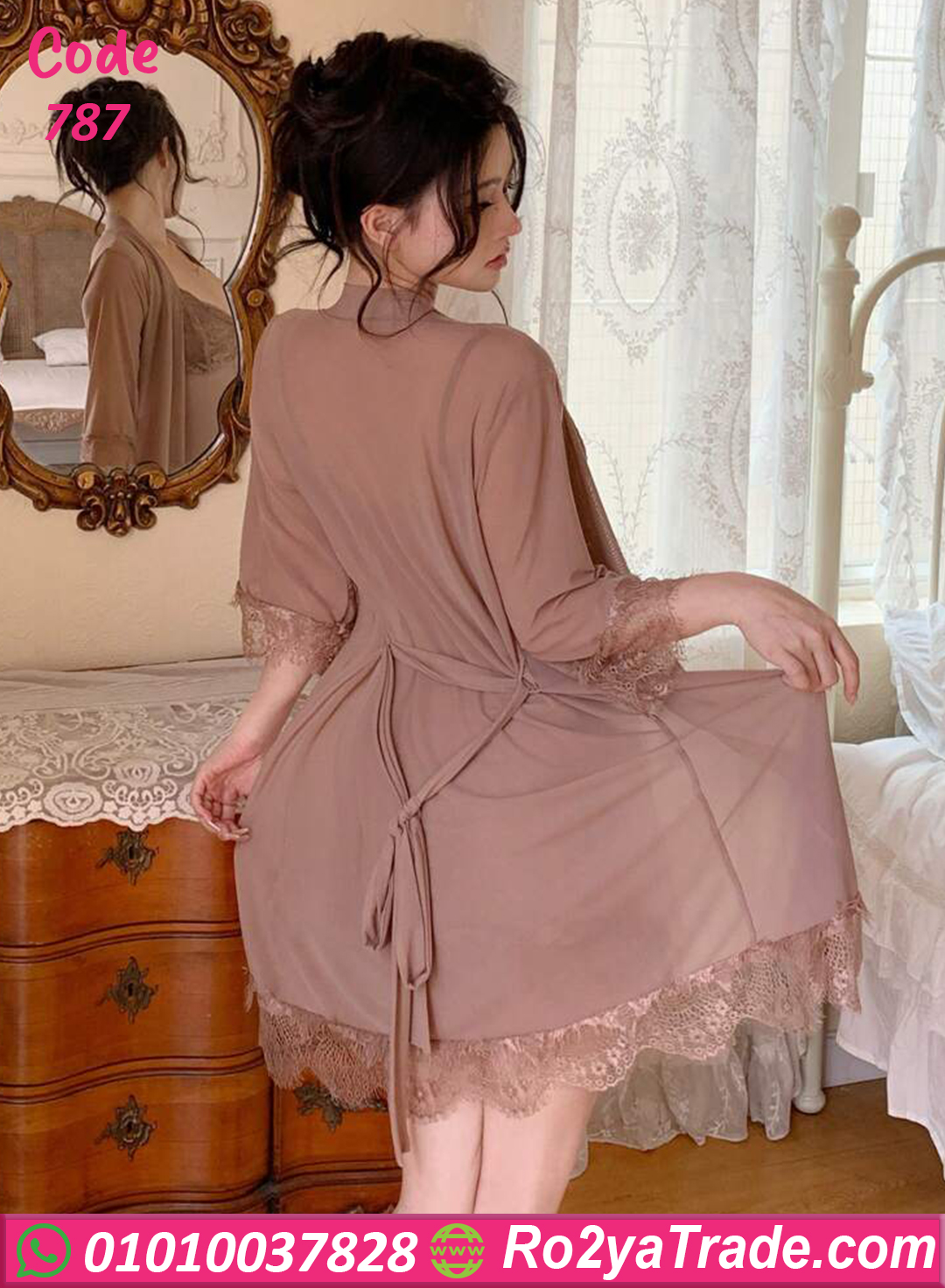 الروب بنفس اللون وبيكمل الطقم بشكل ناعم ورقيق، مثالي للسهرات الخاصة أو كهدية رقيقة 💝