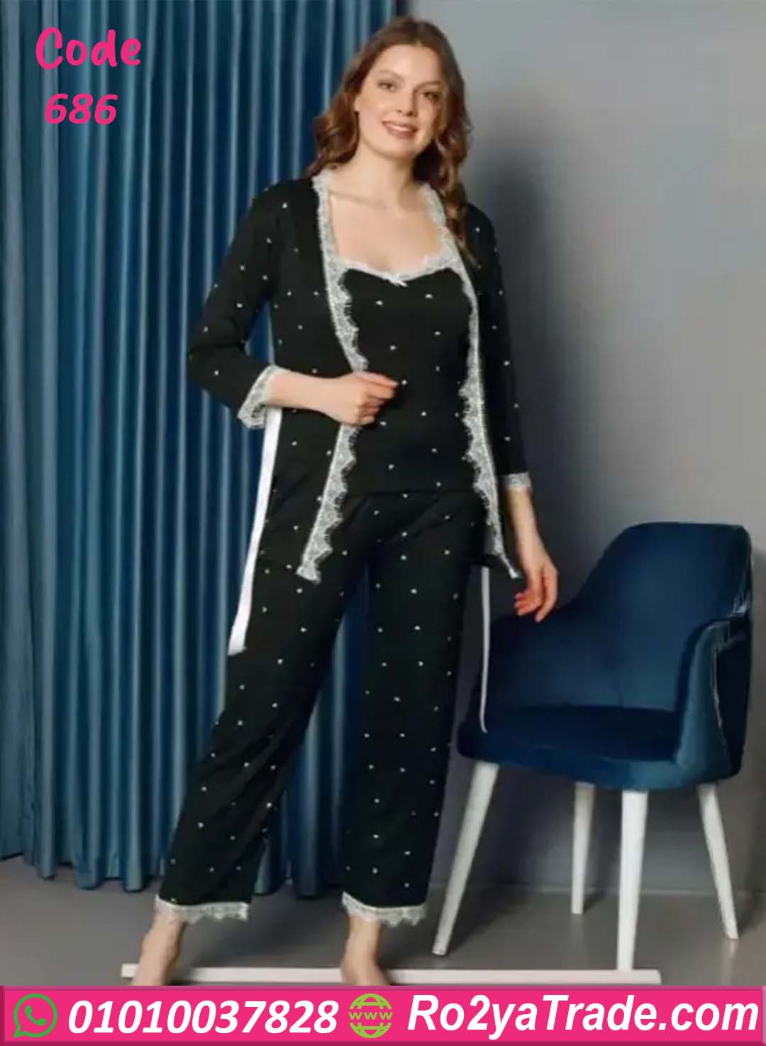 طقم بيجامة نسائي بنقوش رقيقه -كود 686