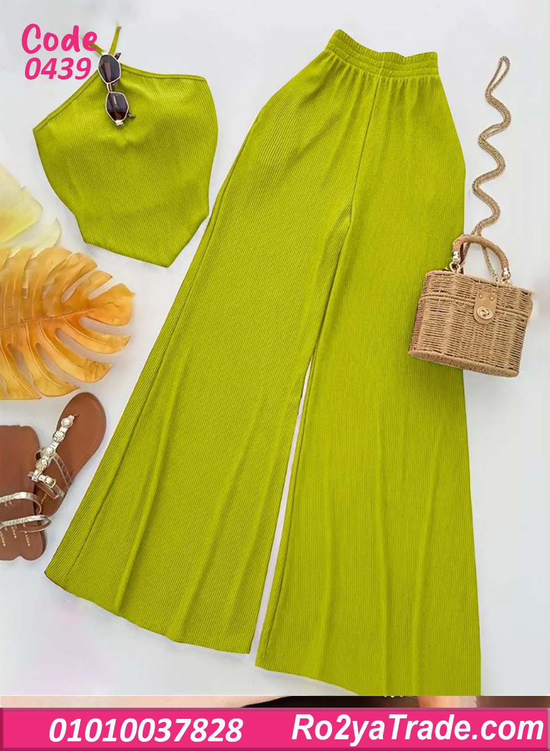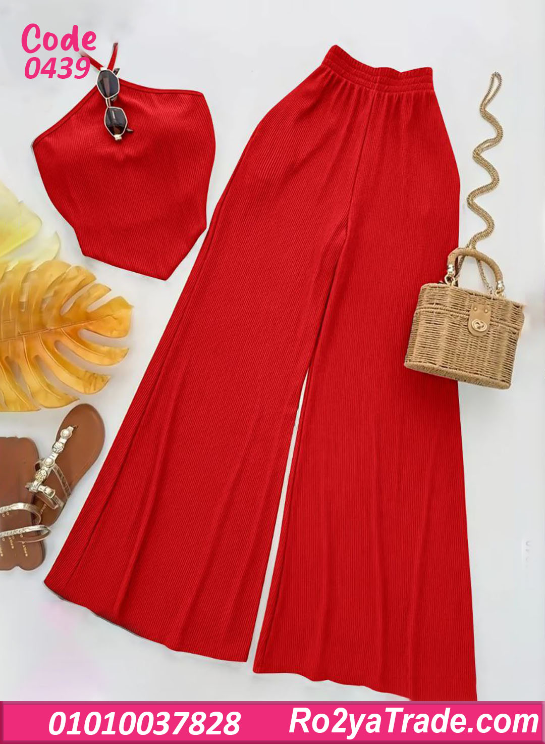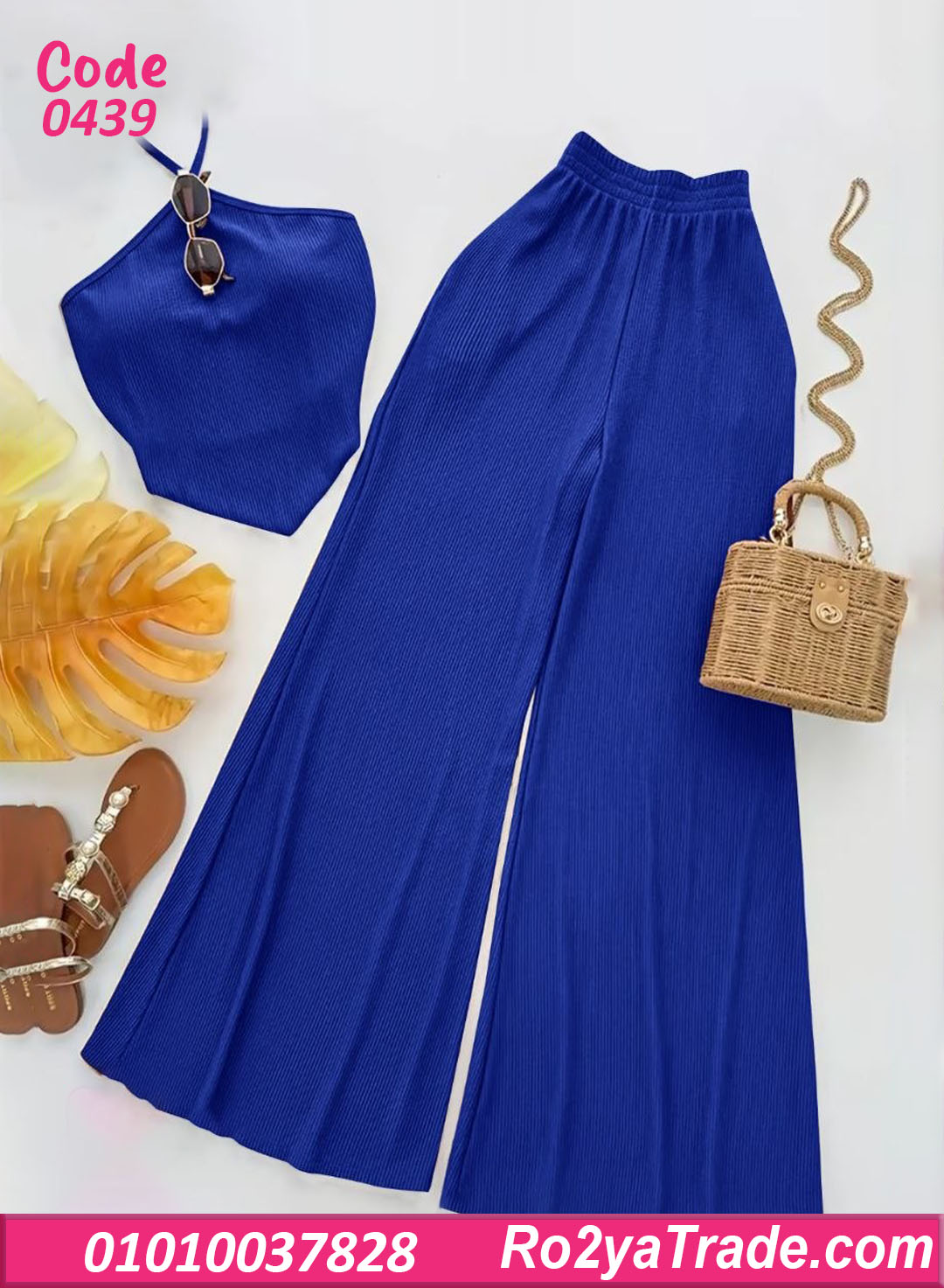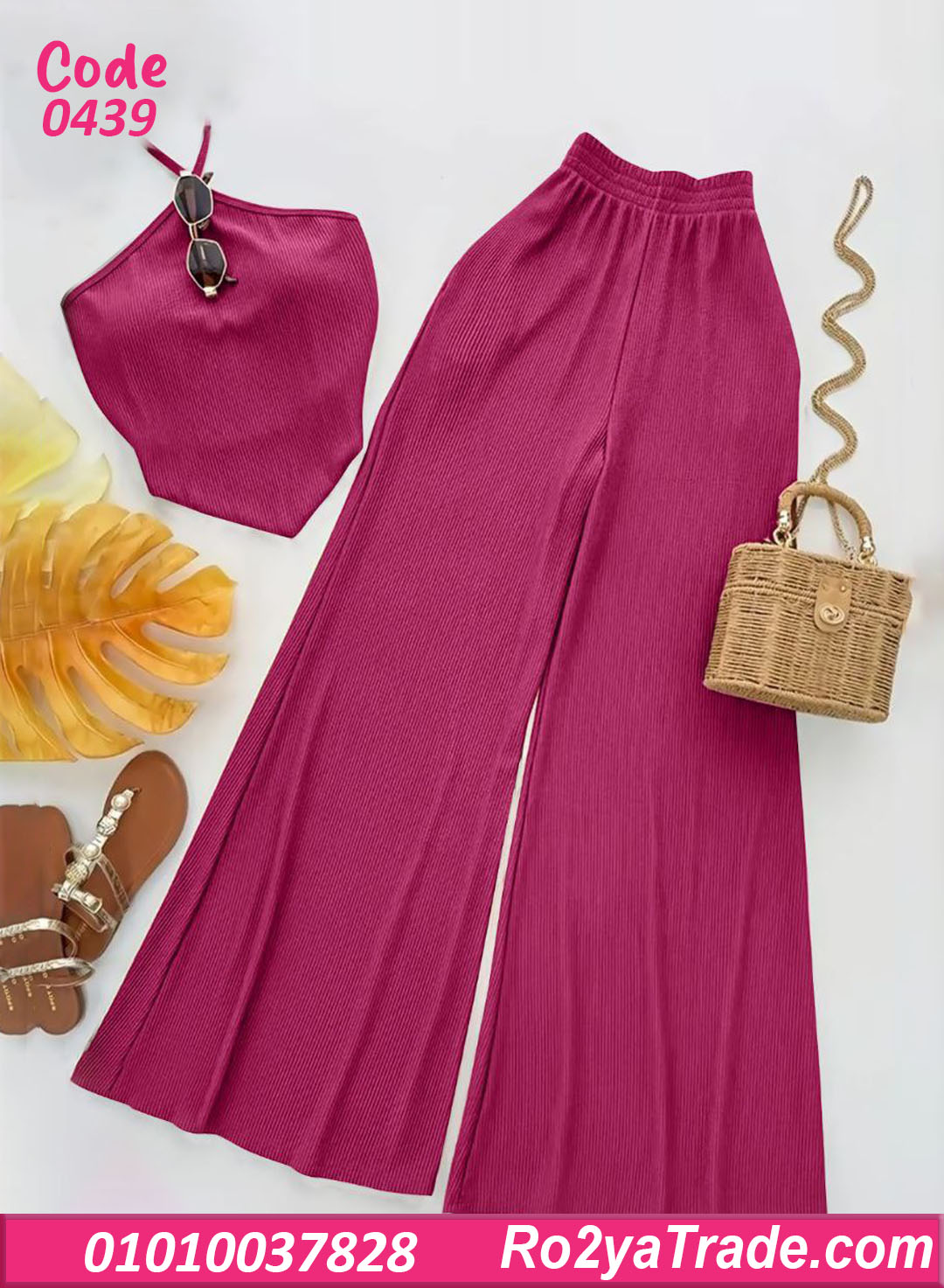 البنطلون الواسع بيدي راحة في الحركة ولمسة مودرن، والتوب سهل يتلبس لوحده أو يتنسق مع قطع تانية.