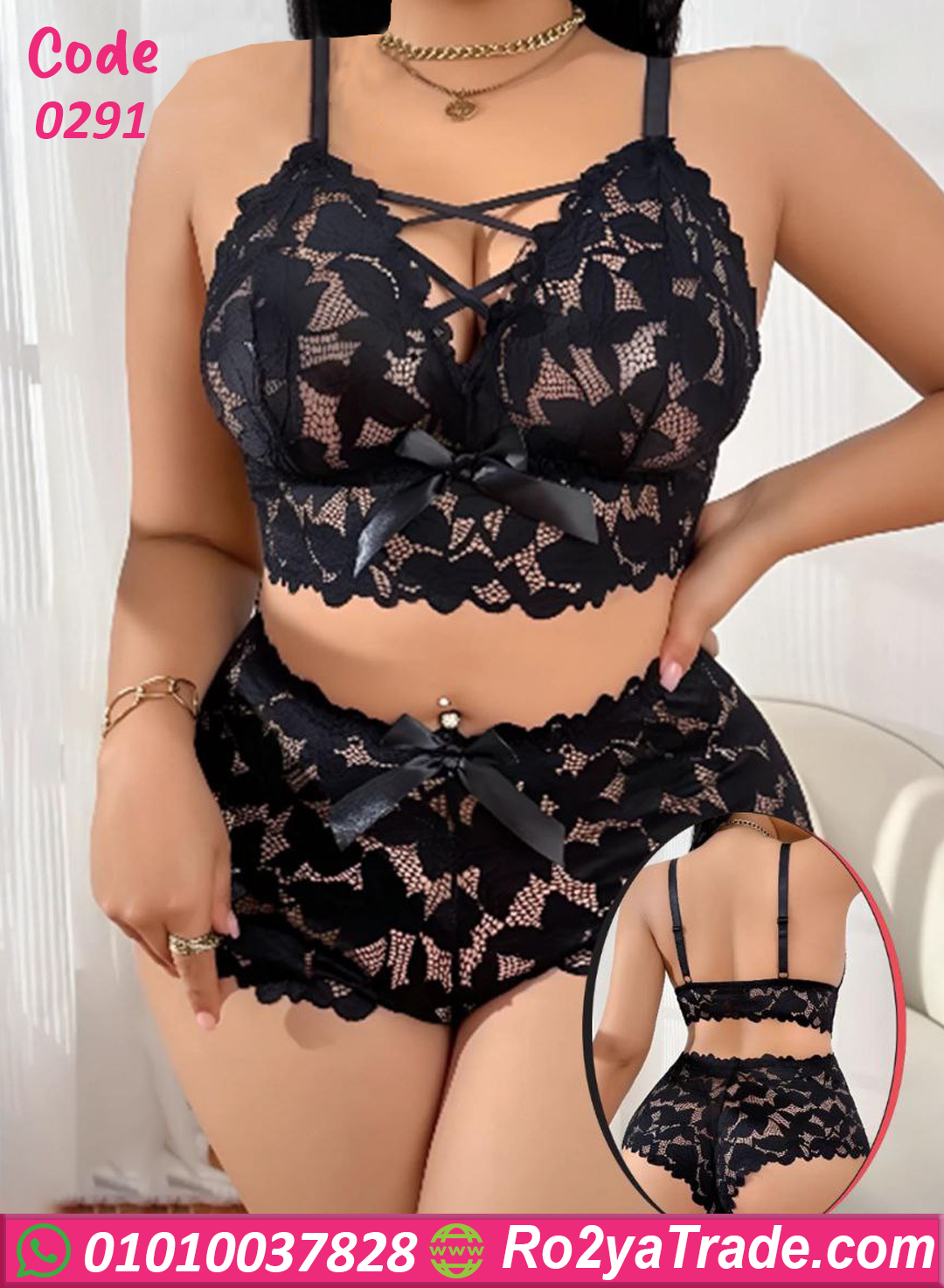 الطقم معمول من خامة دانتيل فاخرة وناعمة على الجسم، بيجمع بين الجاذبية والرقي في نفس الوقت.