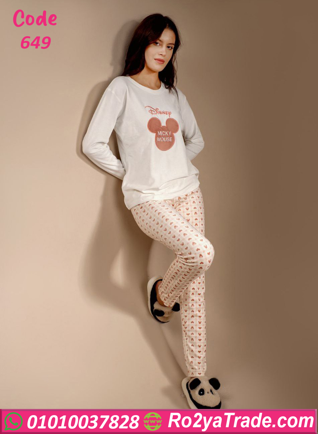 جاكيت فرو ناعم بخامة تقيلة جدا + بيجامة داخلية بنقشة قلوب كيوت