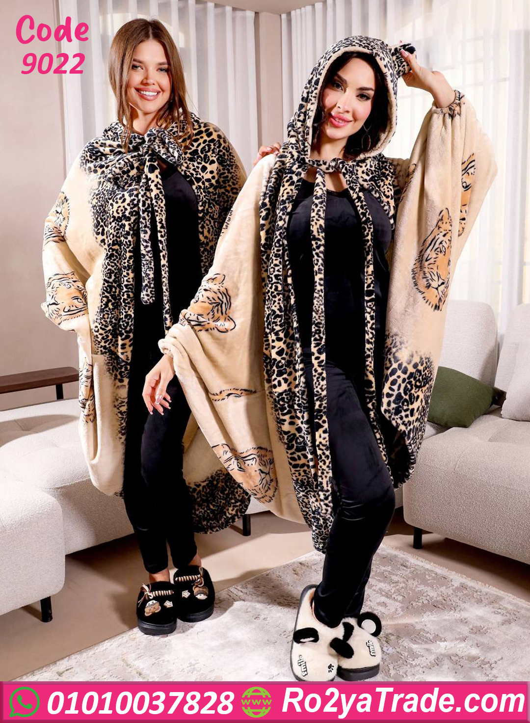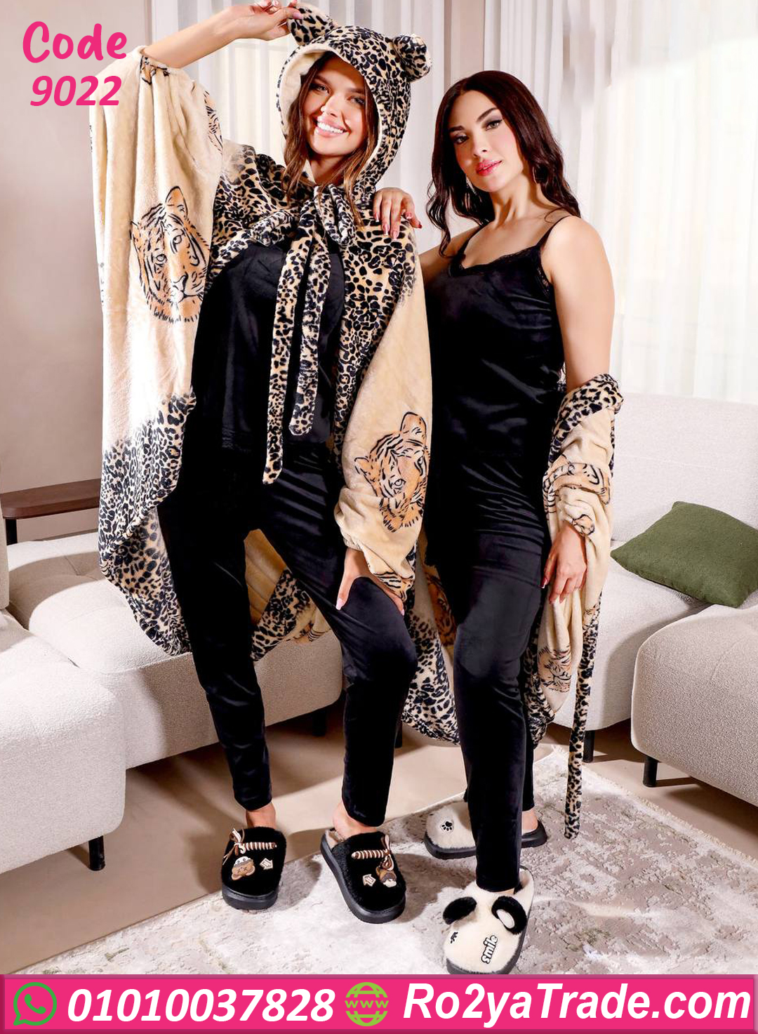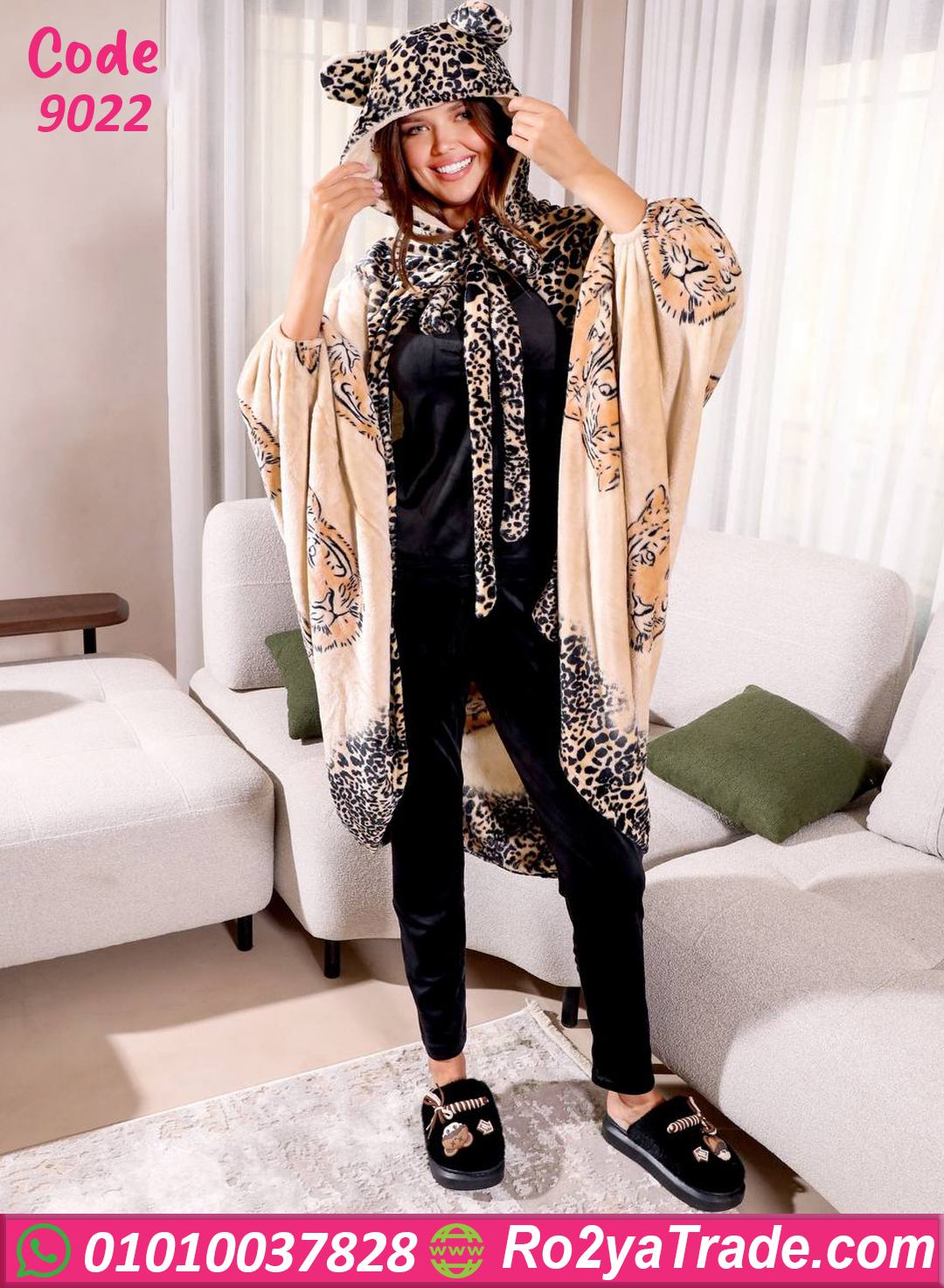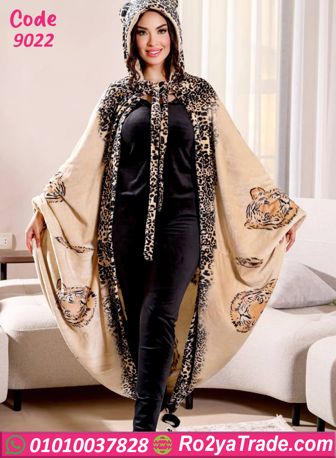 لو بتدوري على طقم شتوي دافئ ومميز في نفس الوقت، موديل MASS كود 9022 هو الاختيار المثالي ليكي ❤️. الطقم بيتكوّن من بيجامة قطيفة ناعمة باللون الأسود الفخم، ومعاها كاب شتوي طويل بنقشة نمر ملوكي بخطوط أوف وايت وبيج بيدي إحساس أنوثة وثقة. تصميم الكاب واسع ومريح جدًا وبيغطي الجسم بالكامل، بخامة تقيلة بتضمنلك دفا وراحة طول الشتاء. الإستايل أنثوي جدًا وفيه لمسة فخامة بتخليه مناسب للبيت أو الاستقبال، ويميزه إنه عملي وسهل اللبس والغسيل بدون ما يتأثر لونه أو ملمسه.