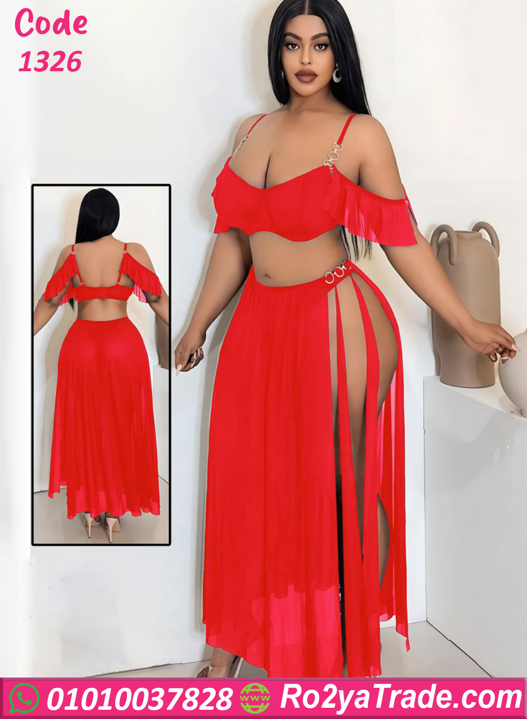 طقم ميني جيب شيفون – كود 1326 من ماركة Lavera بتصميم أنثوي جذاب يجمع بين الأناقة والجرأة. يتكون الطقم من قطعتين مميزتين تمنحك إطلالة أنيقة ومختلفة.