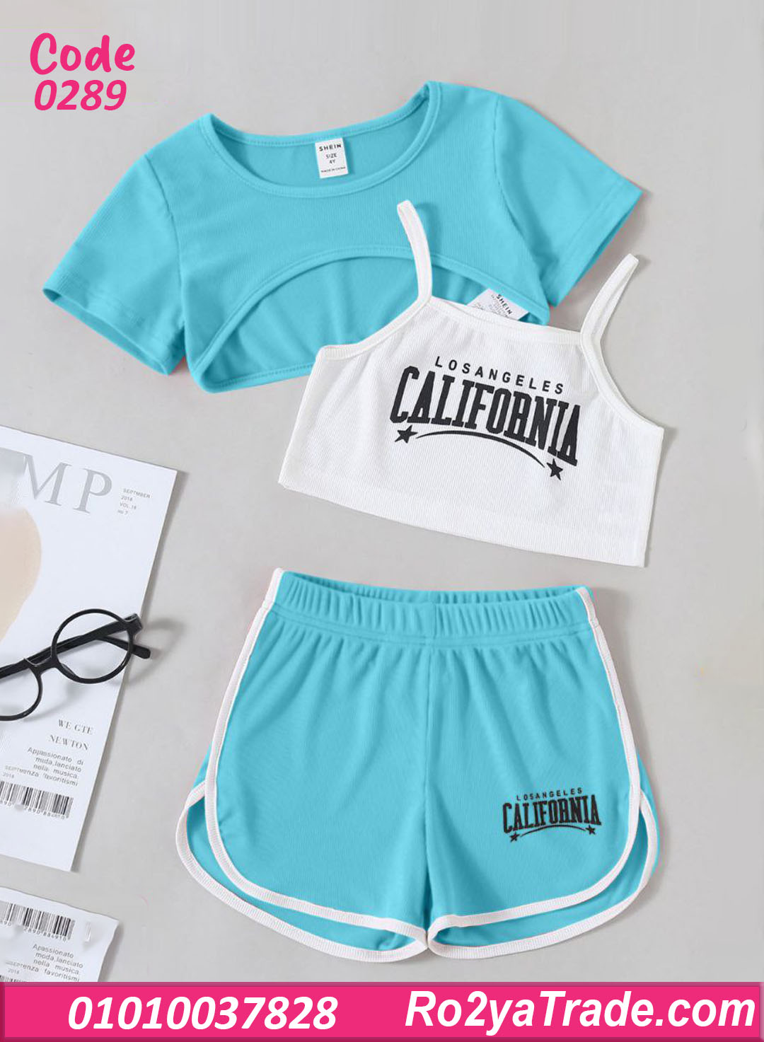 طقم هوت شورت صيفي 3 قطع California – كود 0289