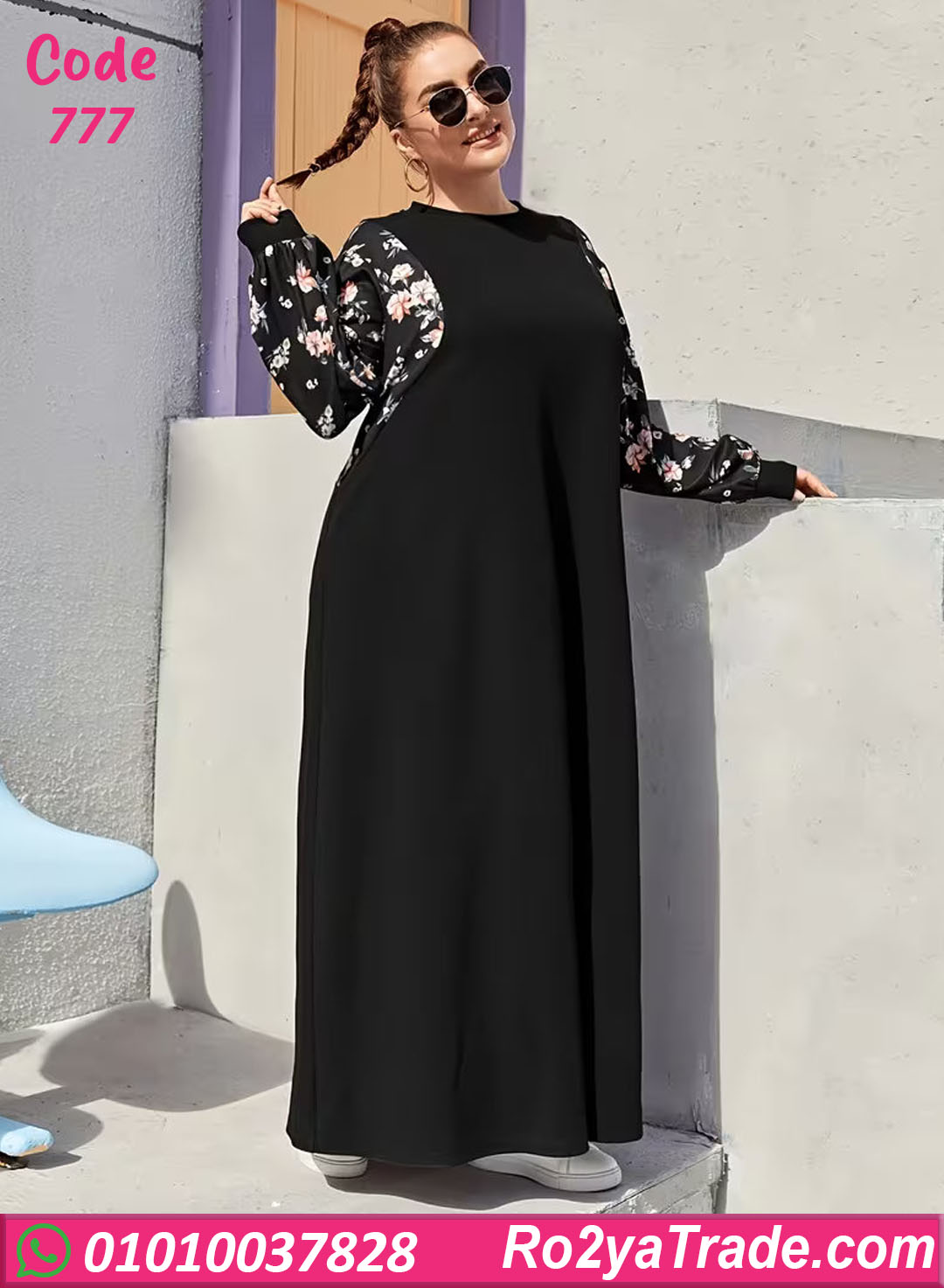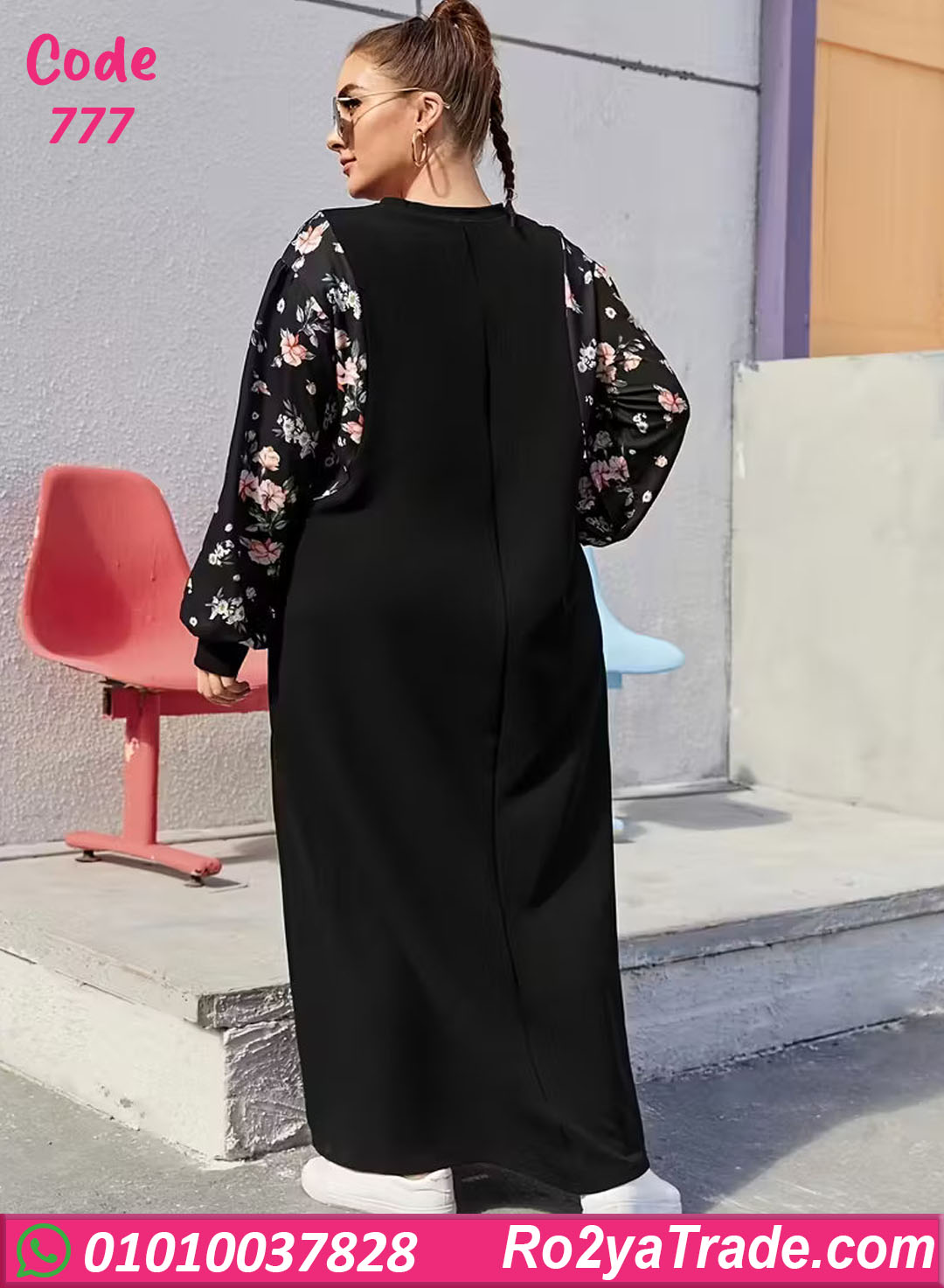 بتجمع بين البساطة والأناقة. العباية باللون الأسود السادة مع أكمام بنقشة ورد ناعمة بتدي شكل مميز وعصري، وقصة واسعة تناسب كل الأجسام وتدي حرية حركة كاملة.