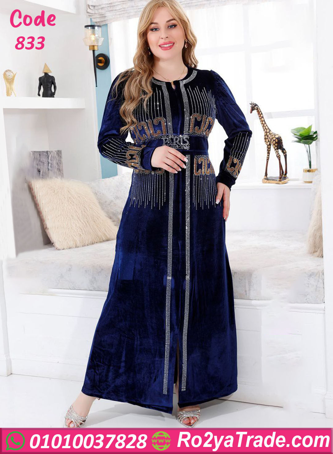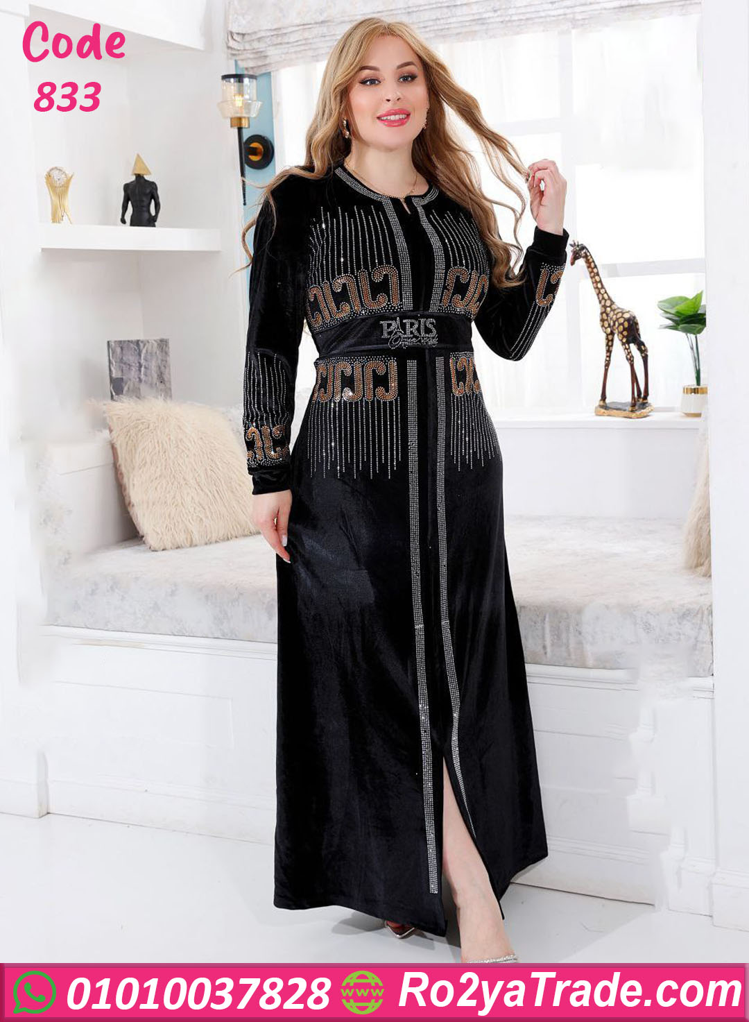 الخامة قطيفة فاخرة بملمس ناعم بيضيف لمسة دفء وأناقة، والتطريز اللامع بخطوط الترتر بيعكس فخامة التصميم سواء في اللون الأسود أو النبيتي أو الأخضر أو الكحلي ✨