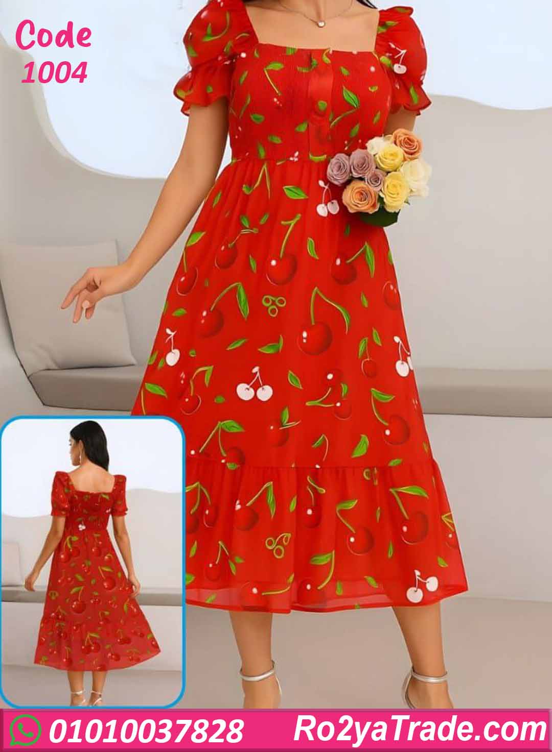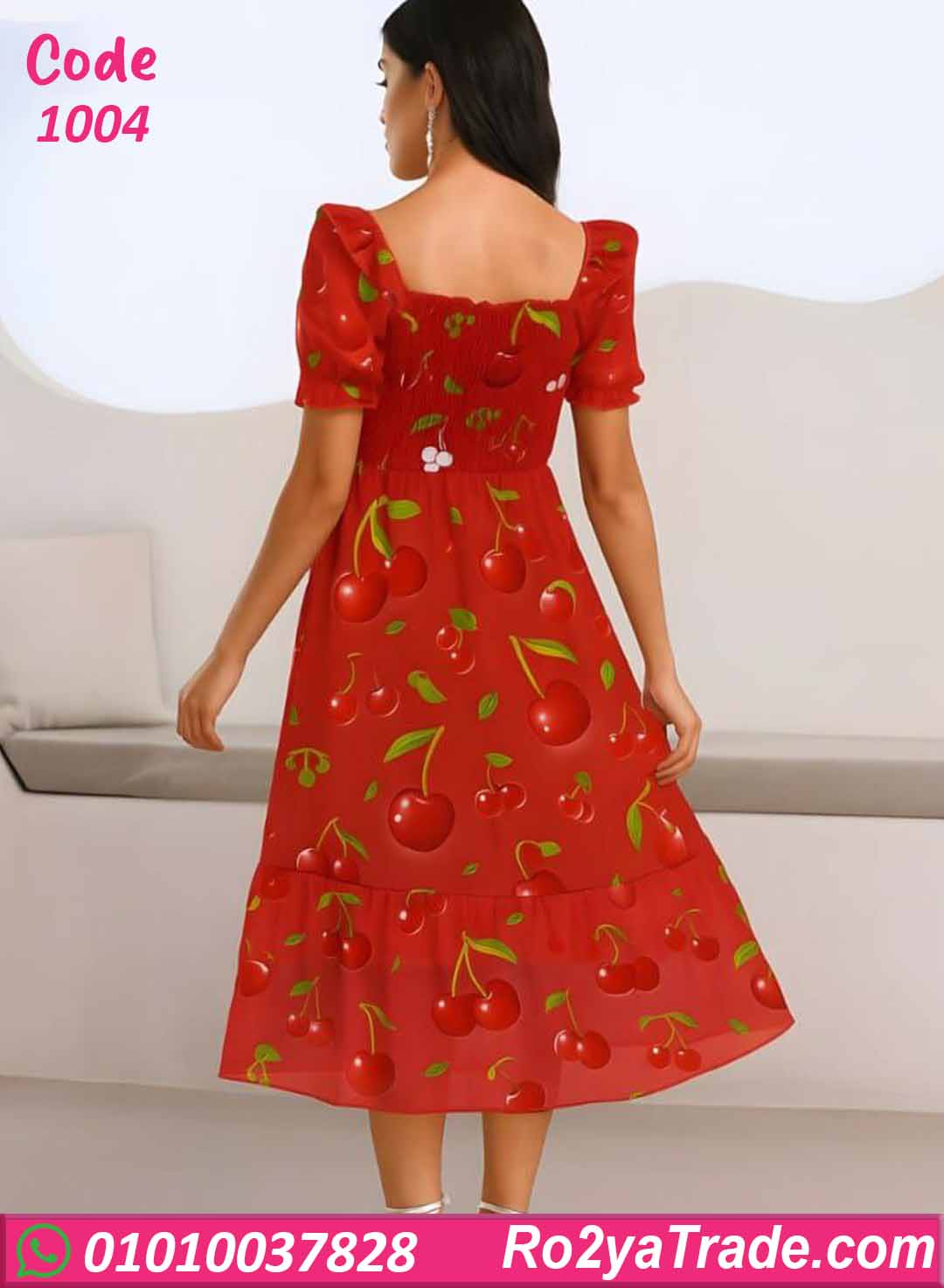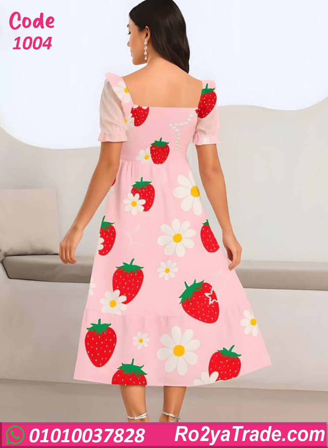 فستان بيتي صيفي برسمة مصنوع من خامة خفيفة