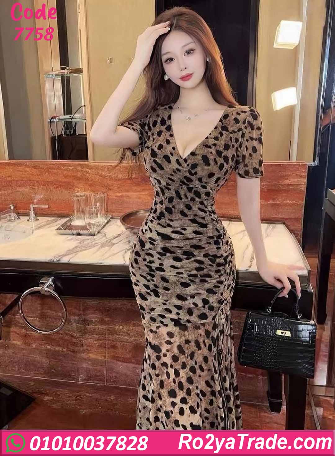 فستان صيفي طويل بنقشة تايجر مميزة بتديكي إطلالة قوية وجذابة، تصميم برقبة V وأكمام قصيرة مع قصة ضيقة على الجسم تنتهي بقصة ميرميد من الأسفل تضيف لمسة فخامة وأناقة. خامة مرنة وناعمة مناسبة للخروجات والسهرات الصيفية بإطلالة ملفتة ومميزة.