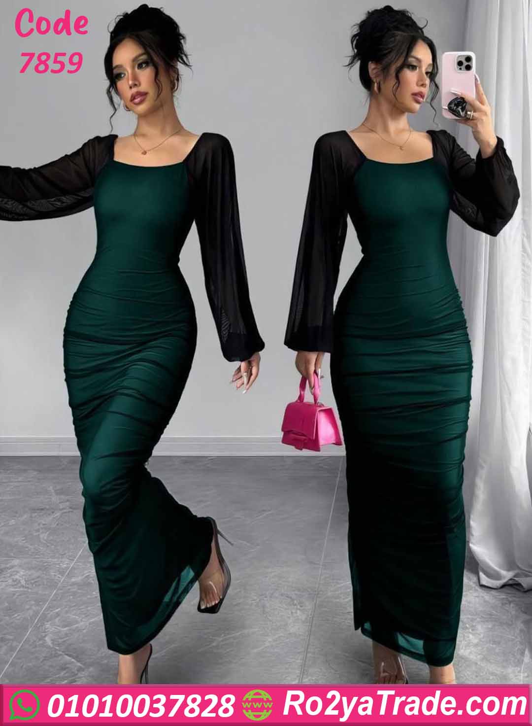 فستان صيفي طويل أخضر 7859 من Lavida اختيار مثالي لكل بنت بتحب الإطلالة الراقية الملفتة. التصميم مجسم على الجسم بشكل أنثوي ناعم يبرز القوام بثقة، مع أكمام شيفون شفافة واسعة تضيف لمسة فخامة ورقي في نفس الوقت.