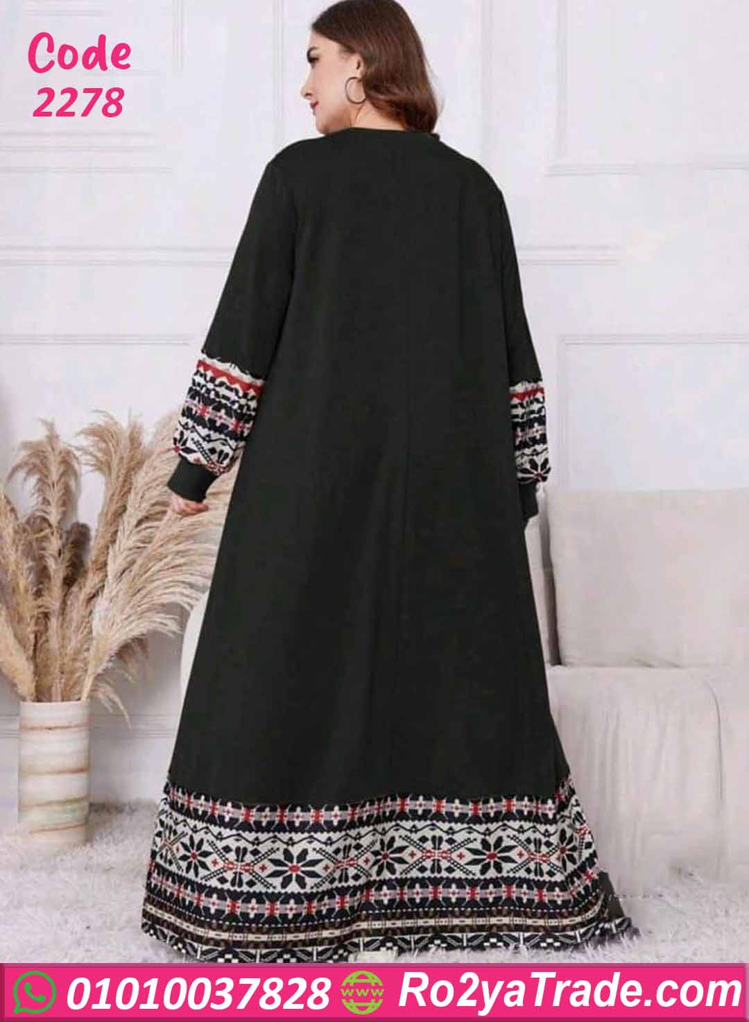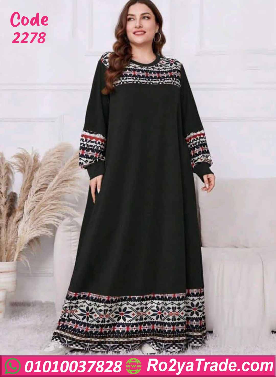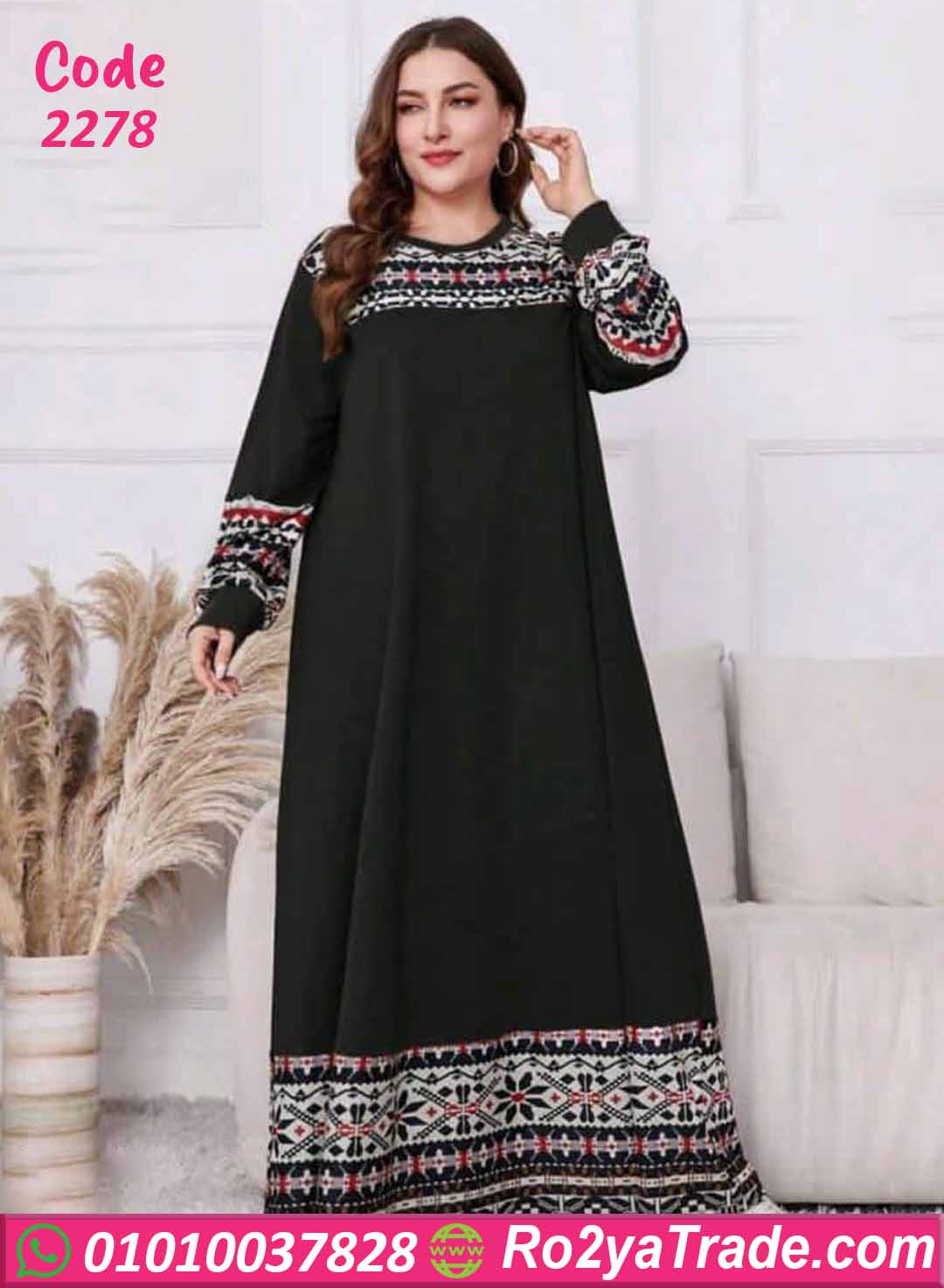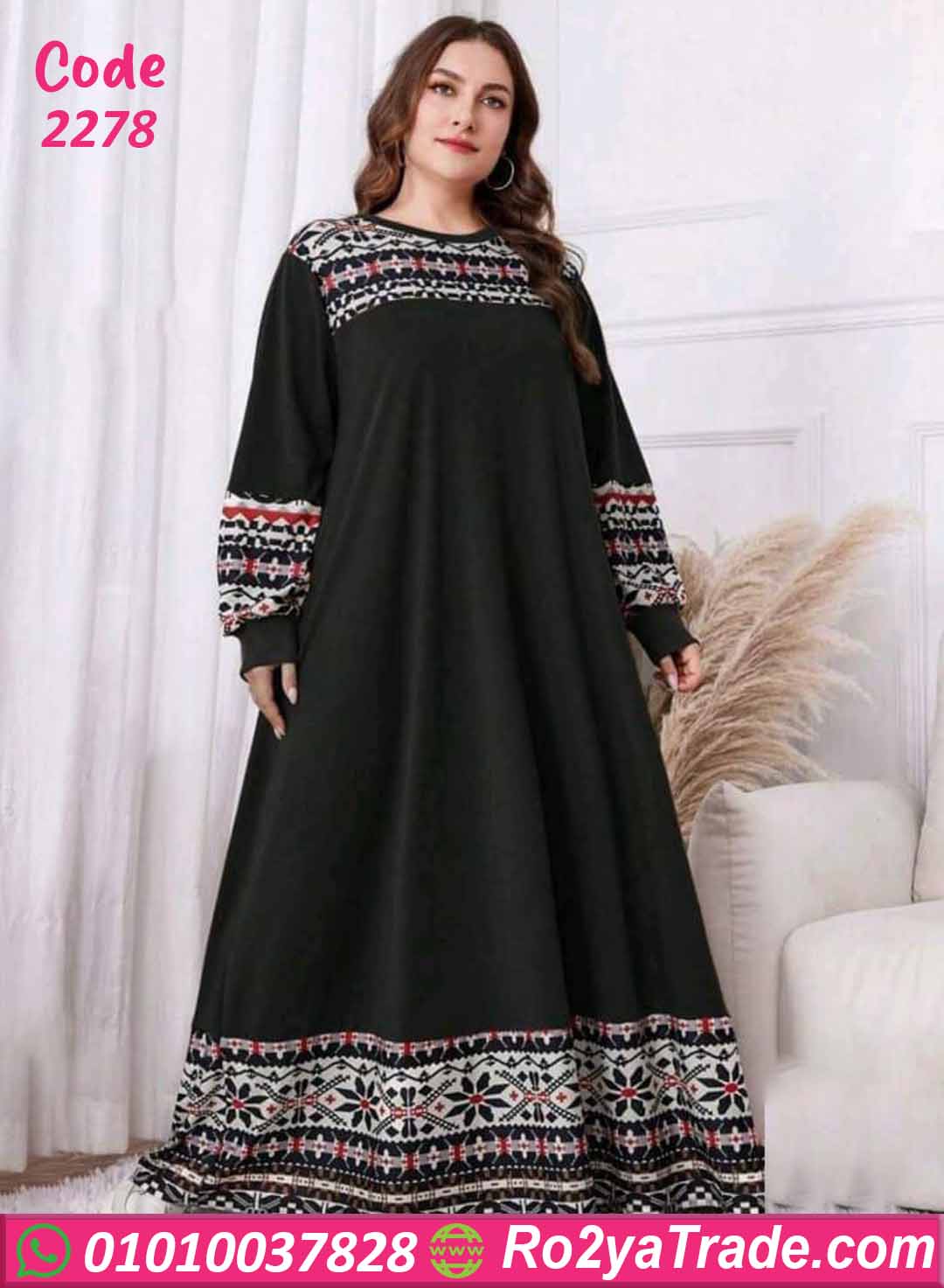 فستان شتوي طويل بيج سايز نقشة شتوية – كود 2278