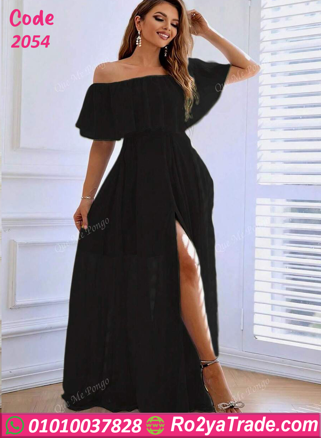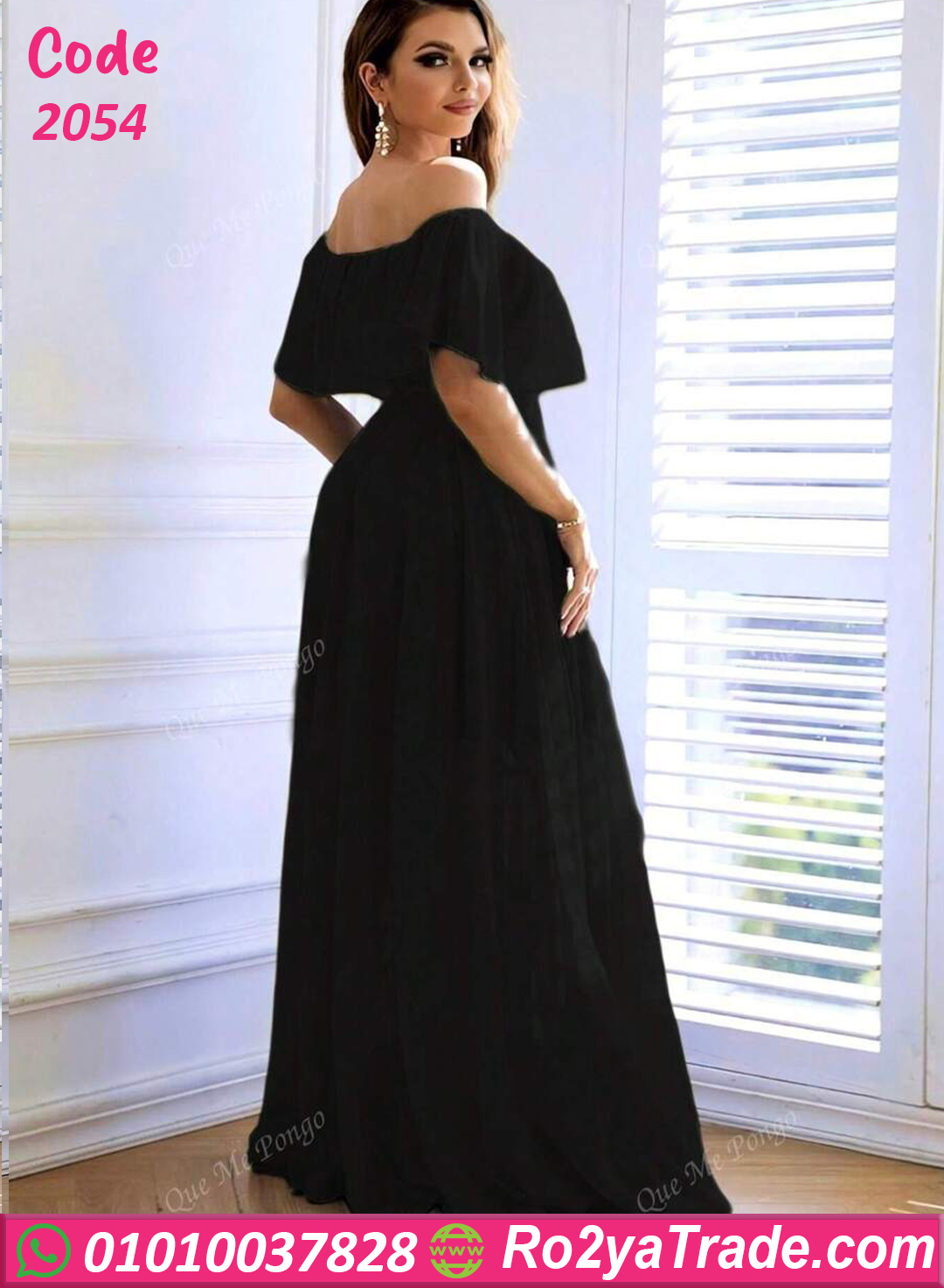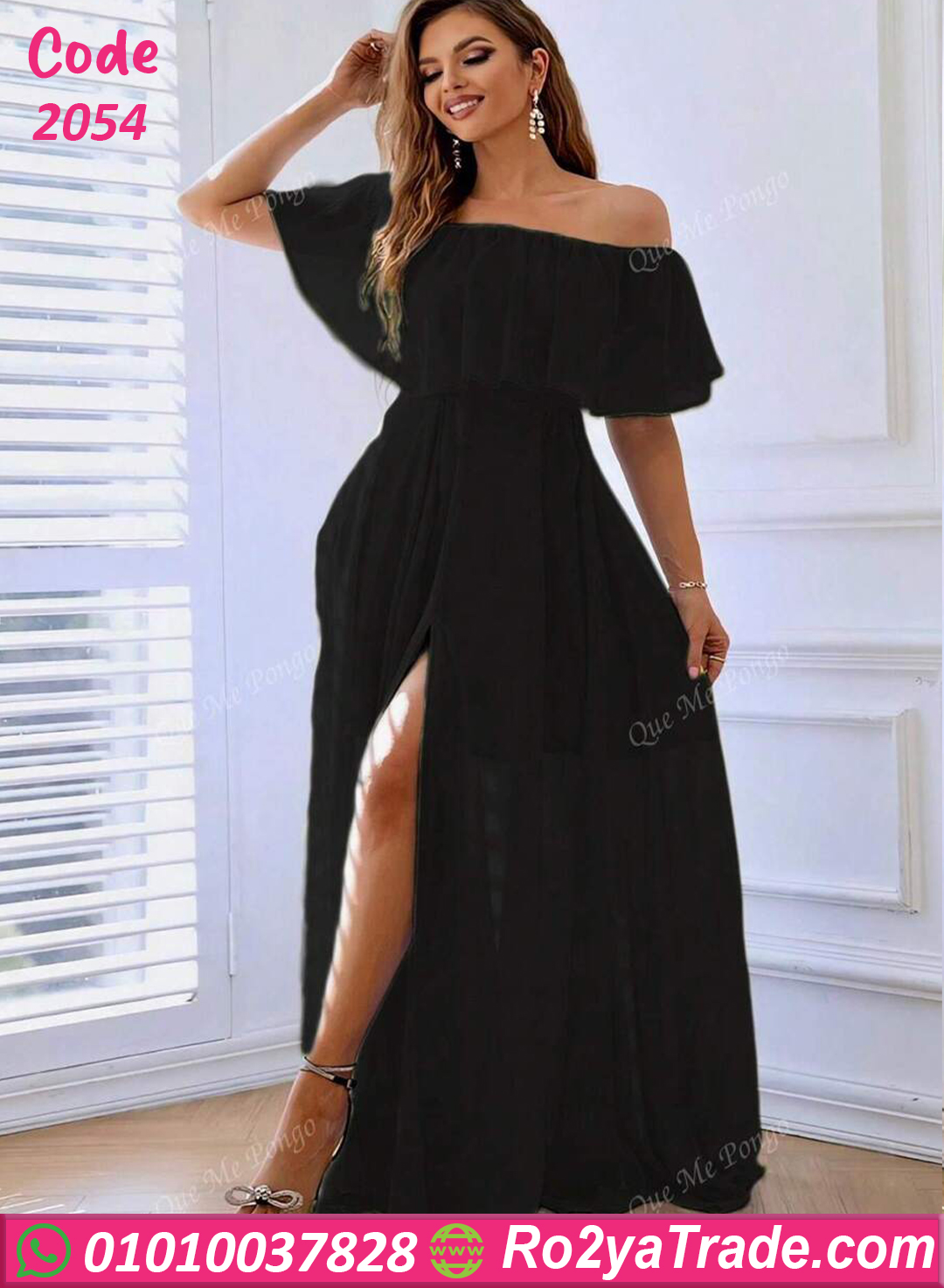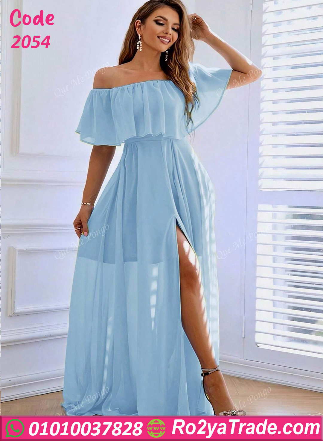 فستان أنثوي أنيق بخامة شيفون ناعمة وانسيابية بتصميم أوف شولدر جذاب وشق جانبي طويل بيبرز الجمال والرُقي 💃✨