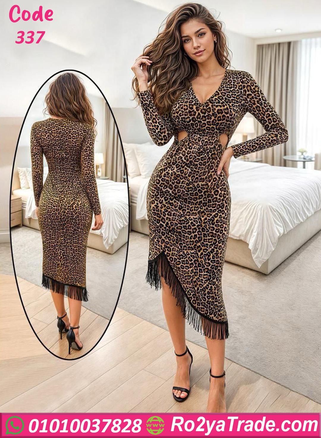 فستان كود 337 من ماركة Fionka بتصميم عصري يجمع بين الأناقة والجاذبية. يتميز الفستان بنقشة تايجر جذابة تضيف لمسة جريئة ومواكبة للموضة.
