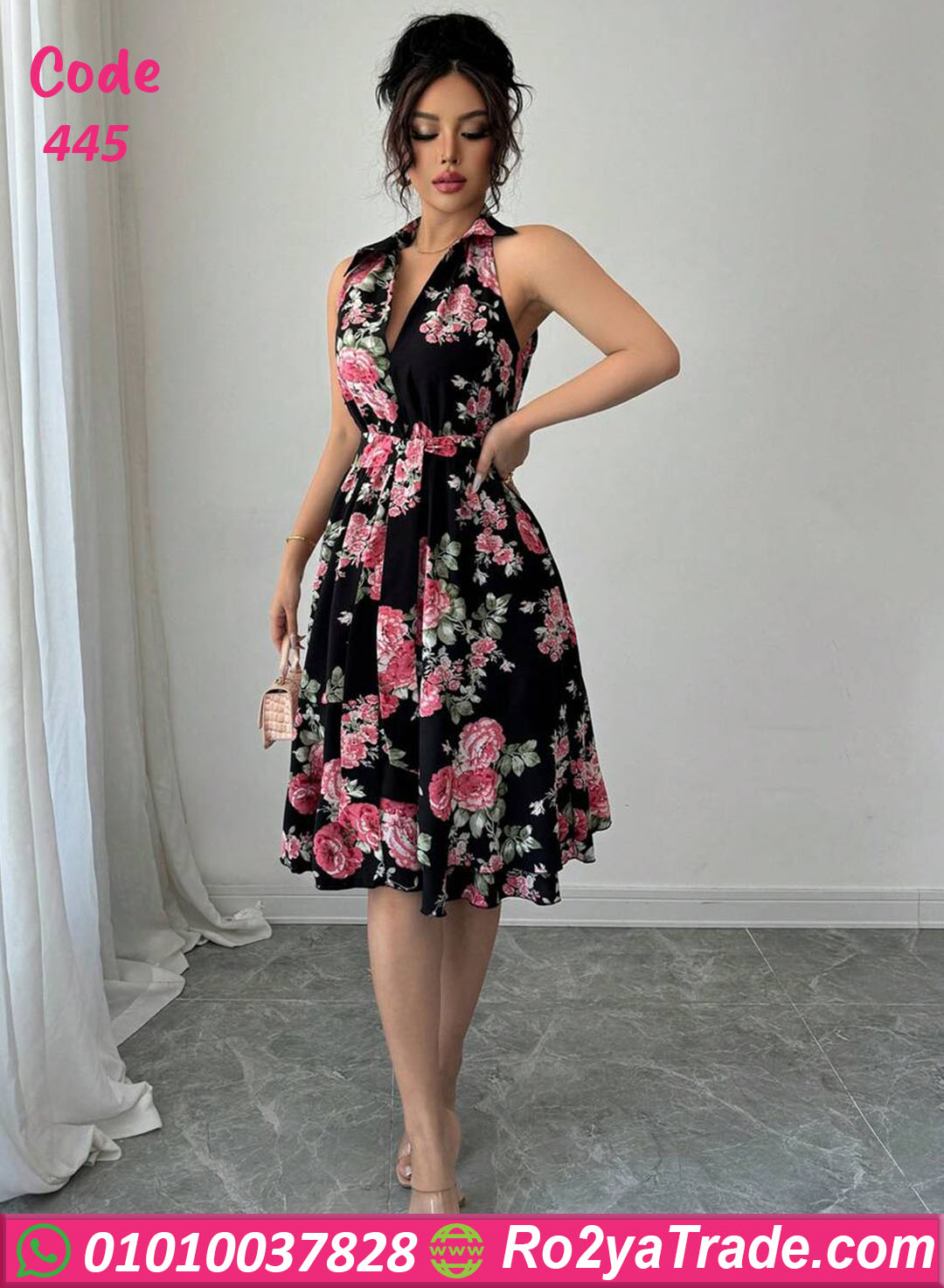 فستان صيفي مورد قصير – كود 445