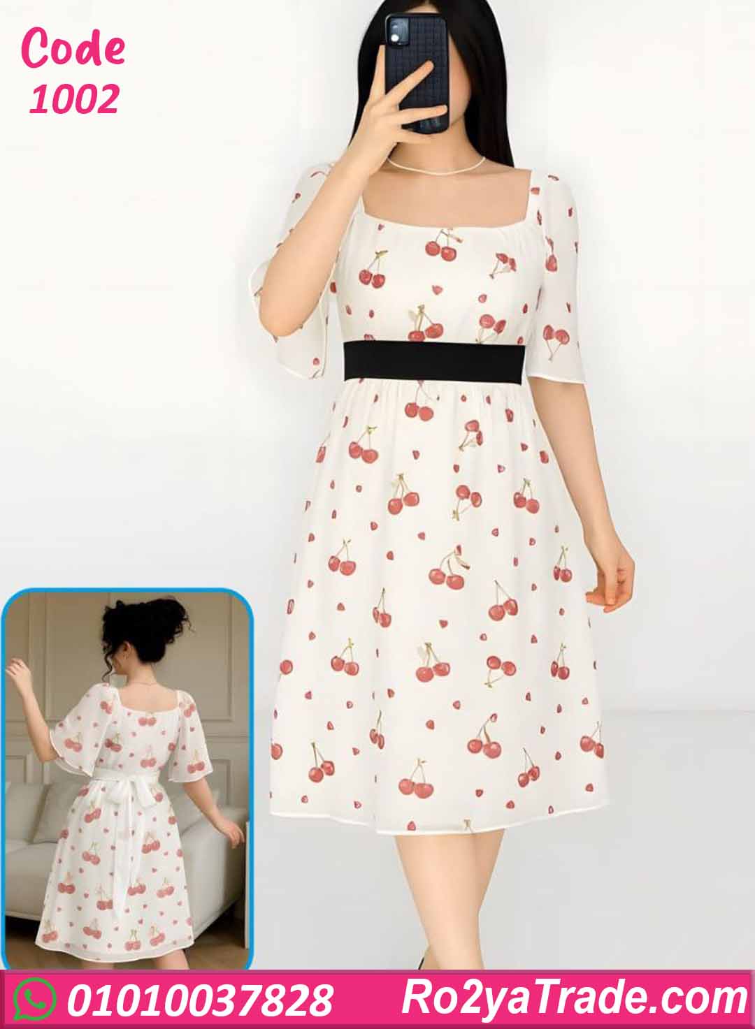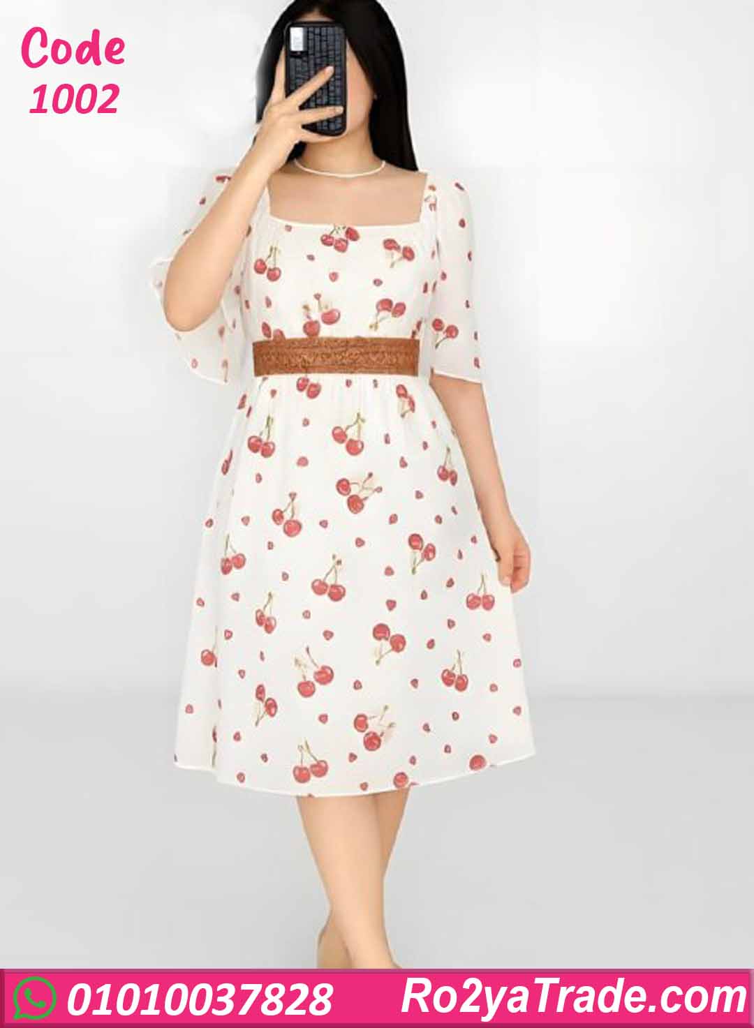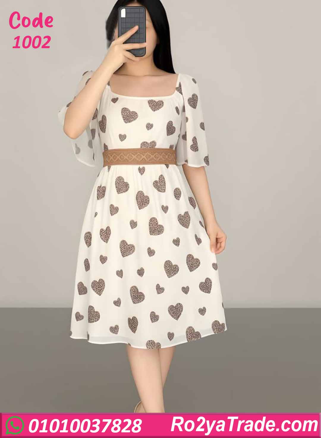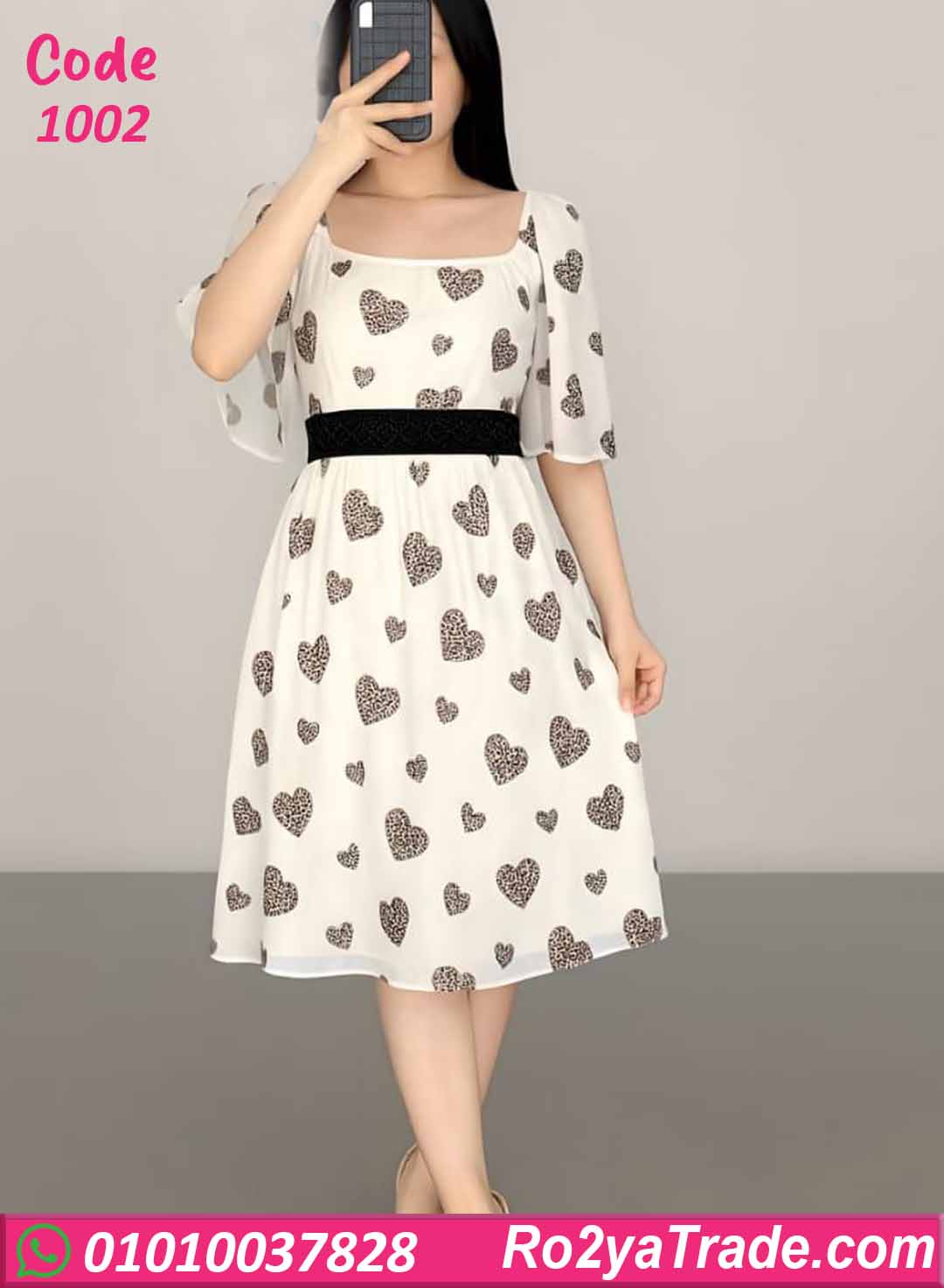 فستان بيتي صيفي قلوب مصنوع من خامة شيفون خفيفة وناعمة