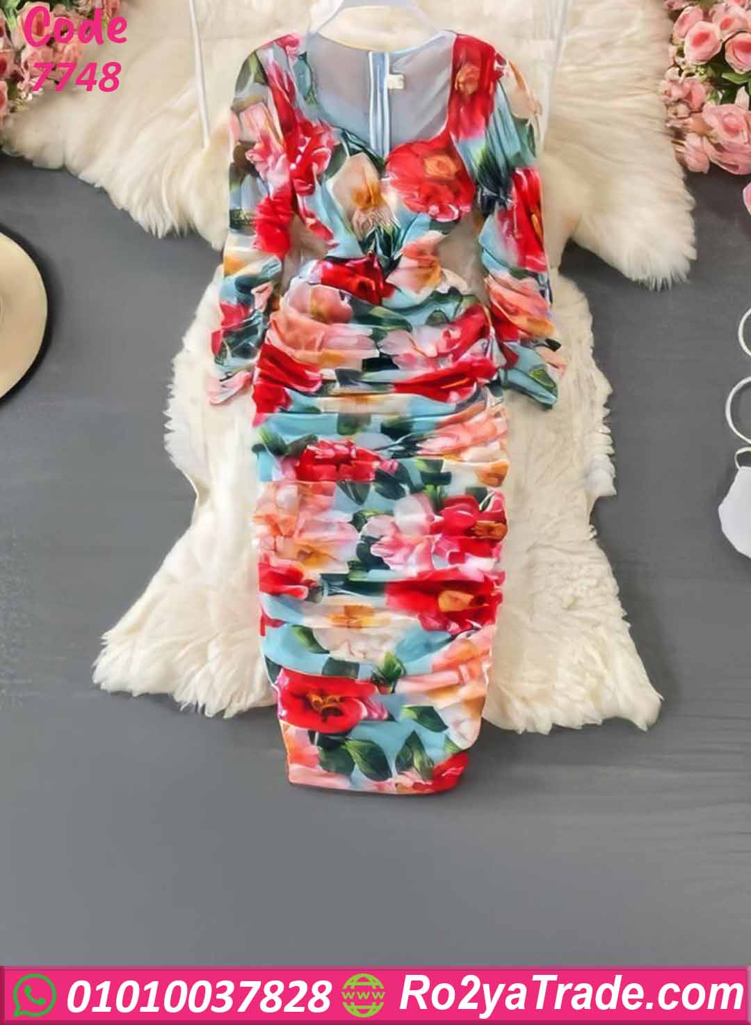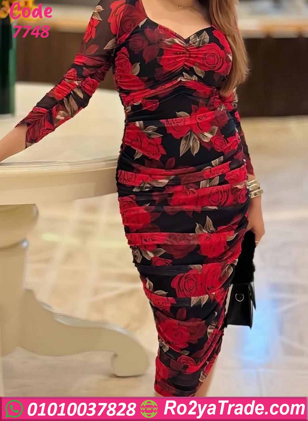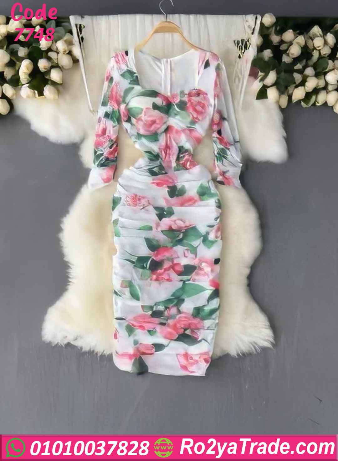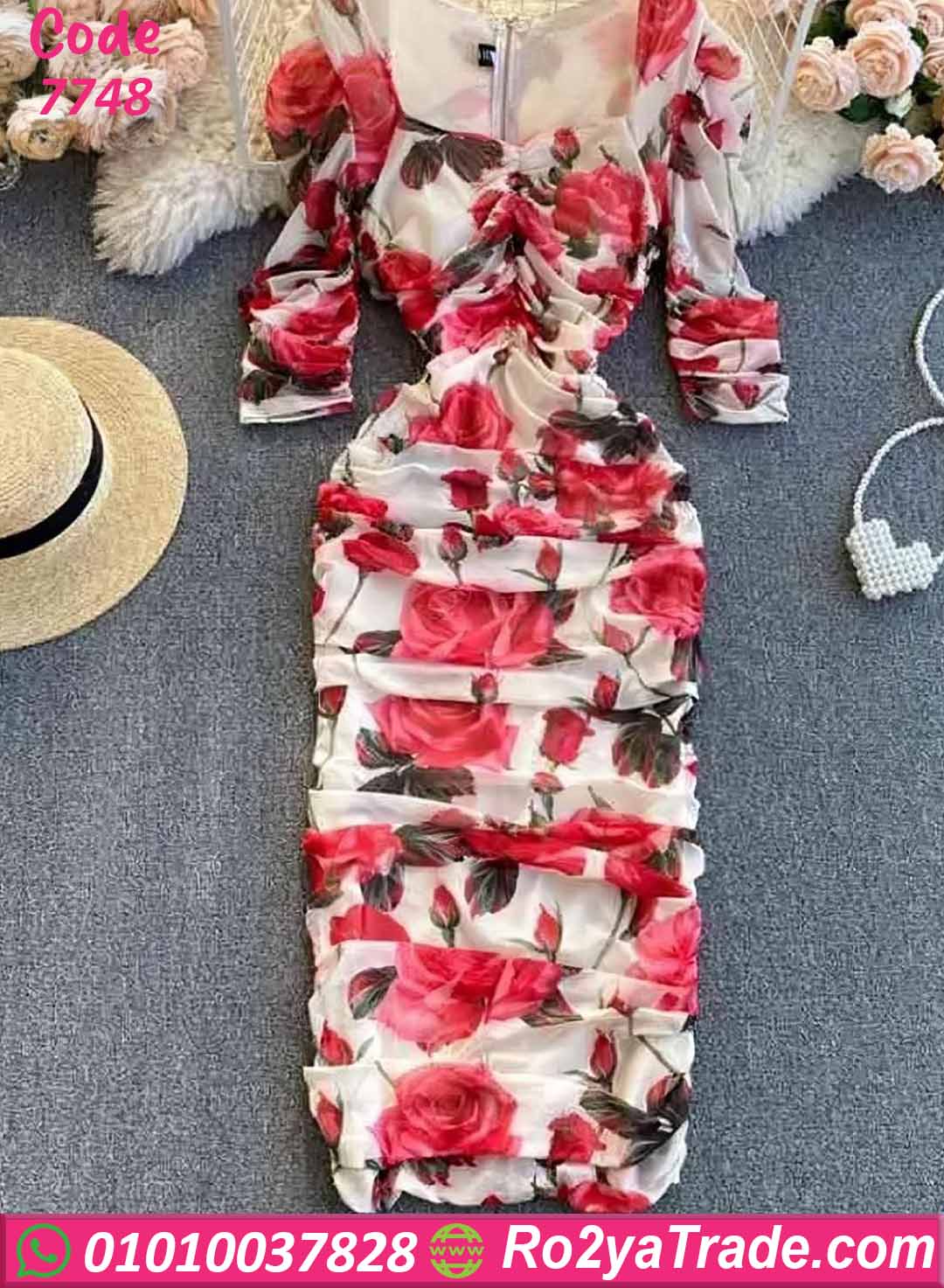 دريس صيفي طويل 7748 من Lavida بتصميم مميز بطبعة ورد جذابة متوفر بأكتر من لون