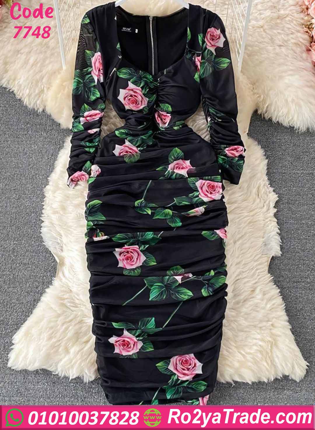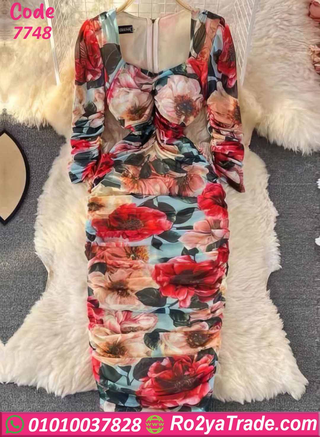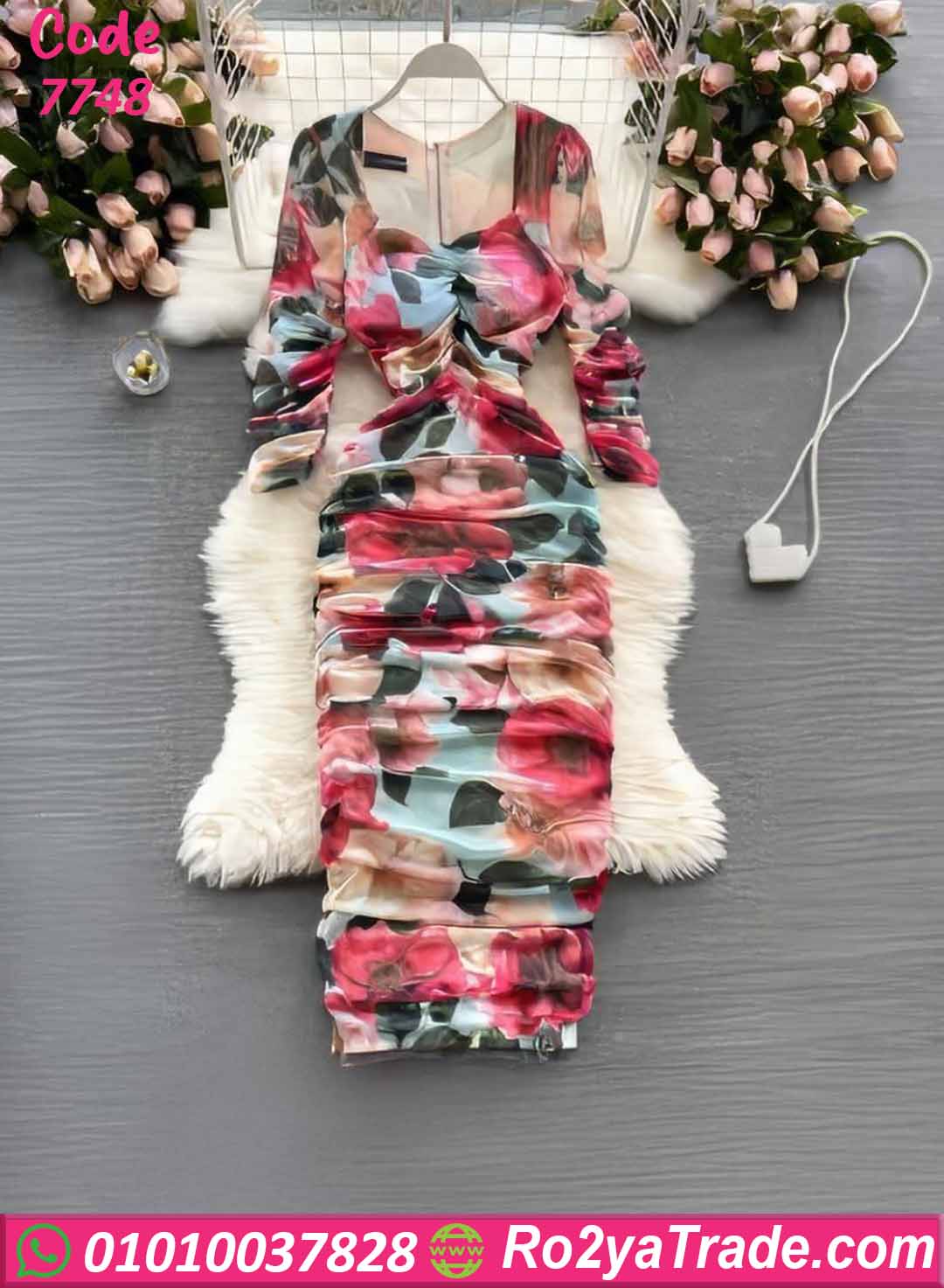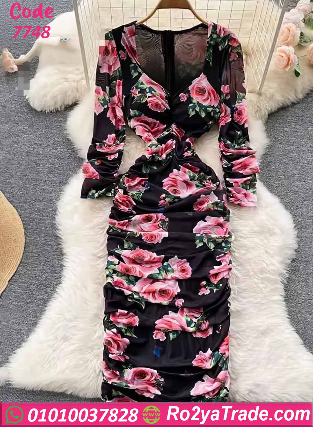 دريس صيفي طويل 7748 من Lavida بتصميم مميز بطبعة ورد جذابة متوفر بأكتر من لون